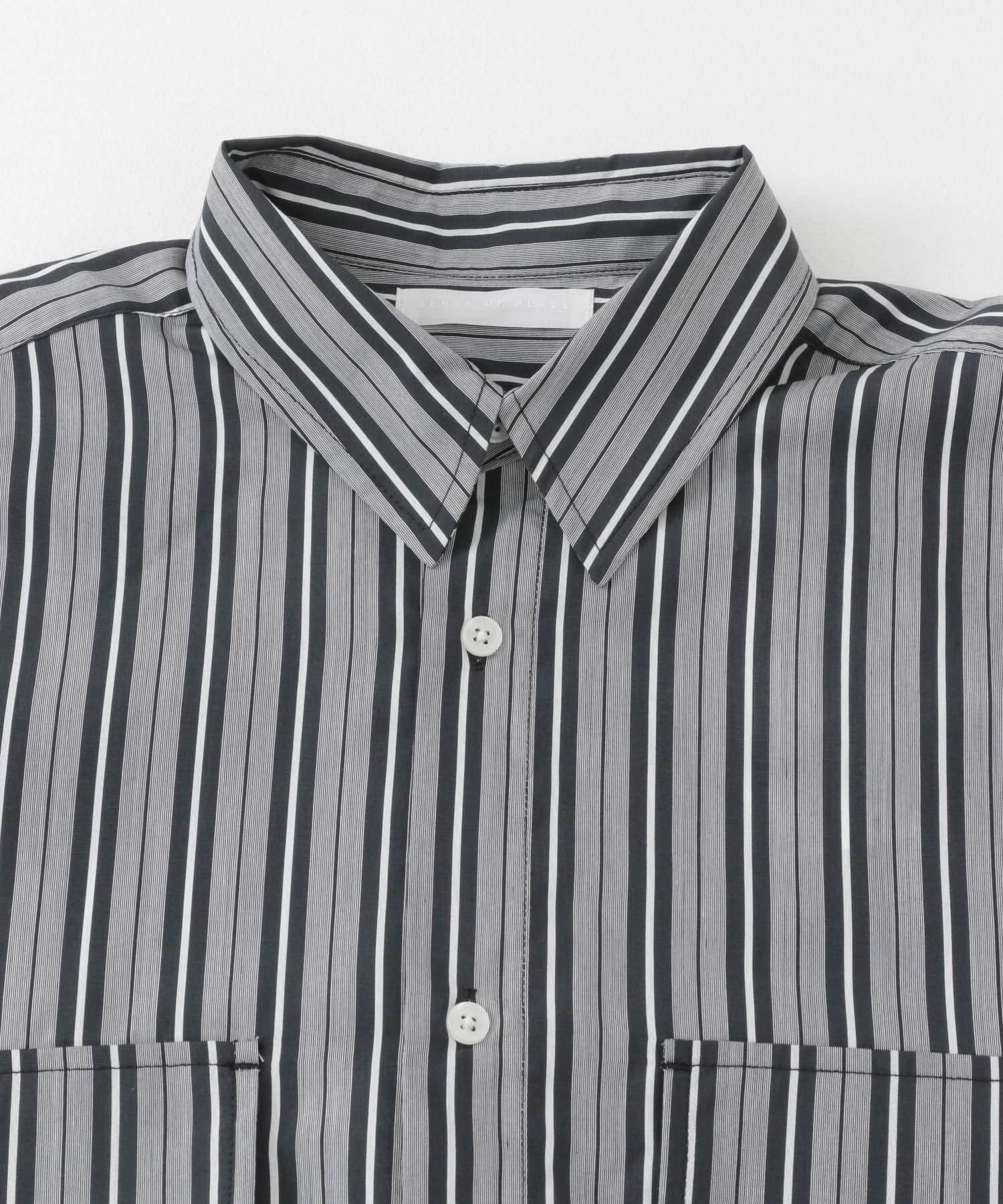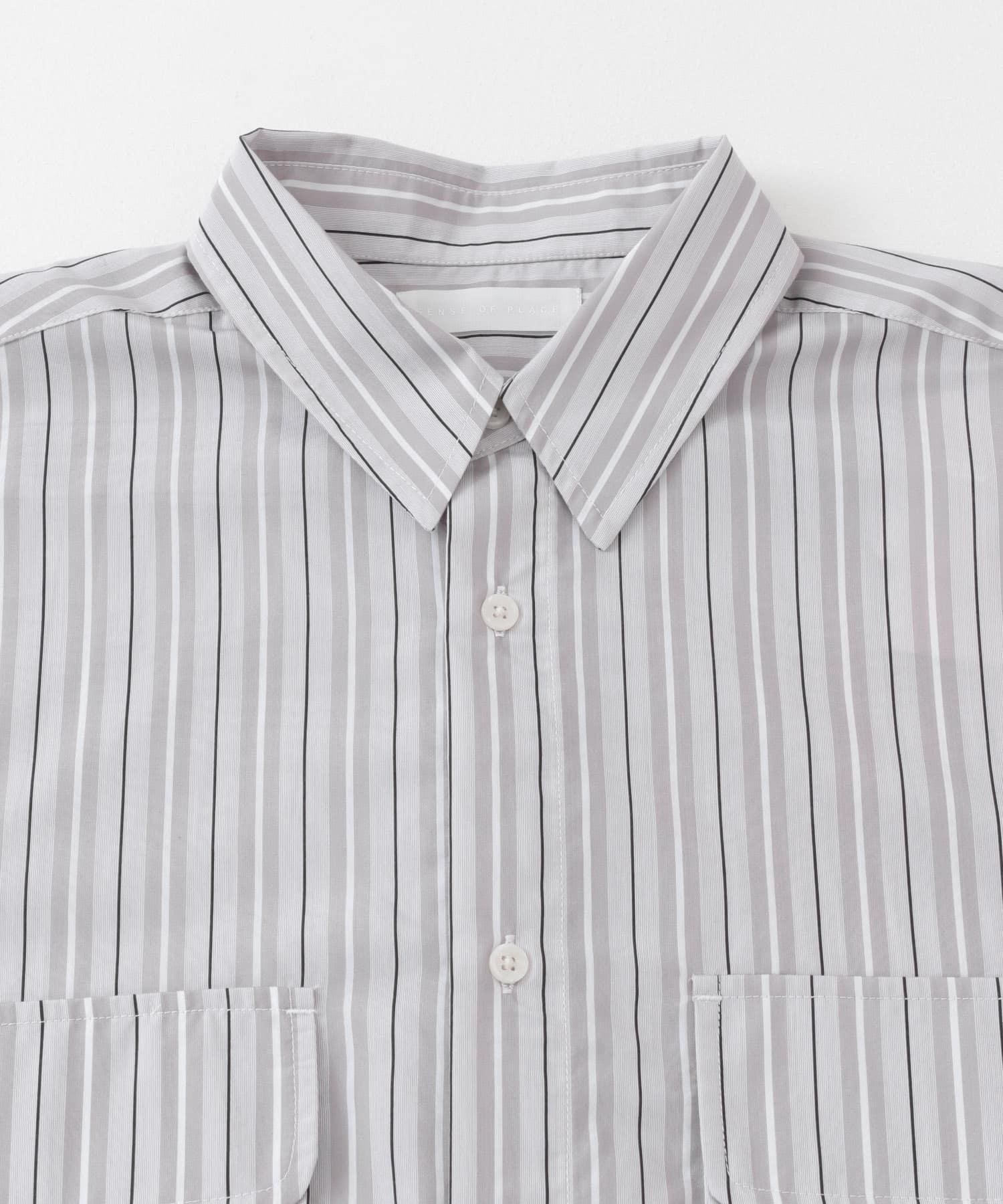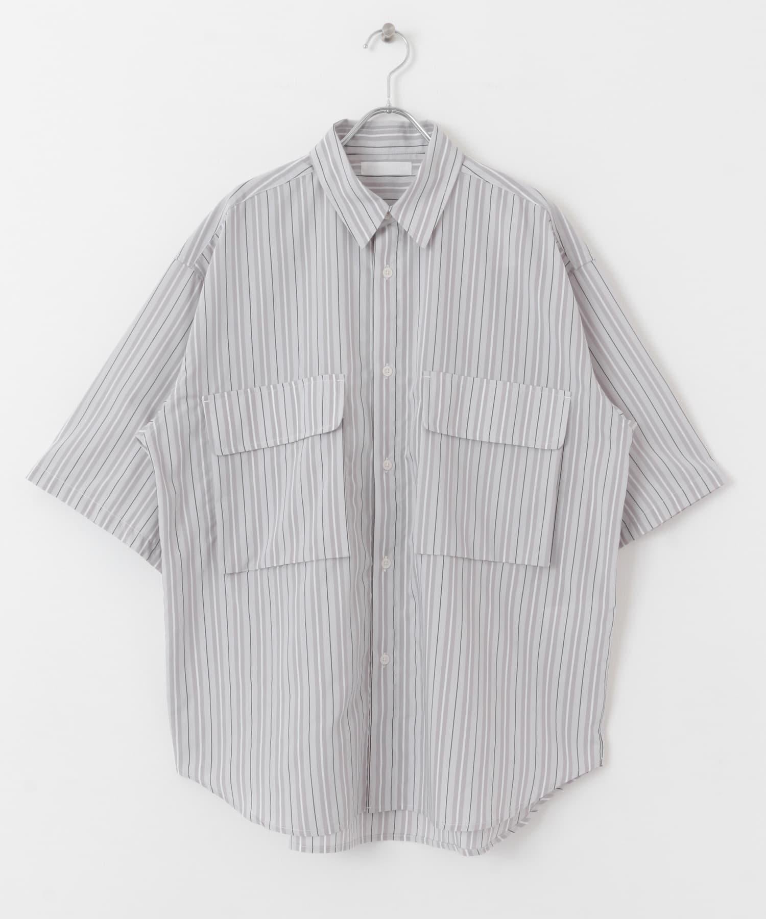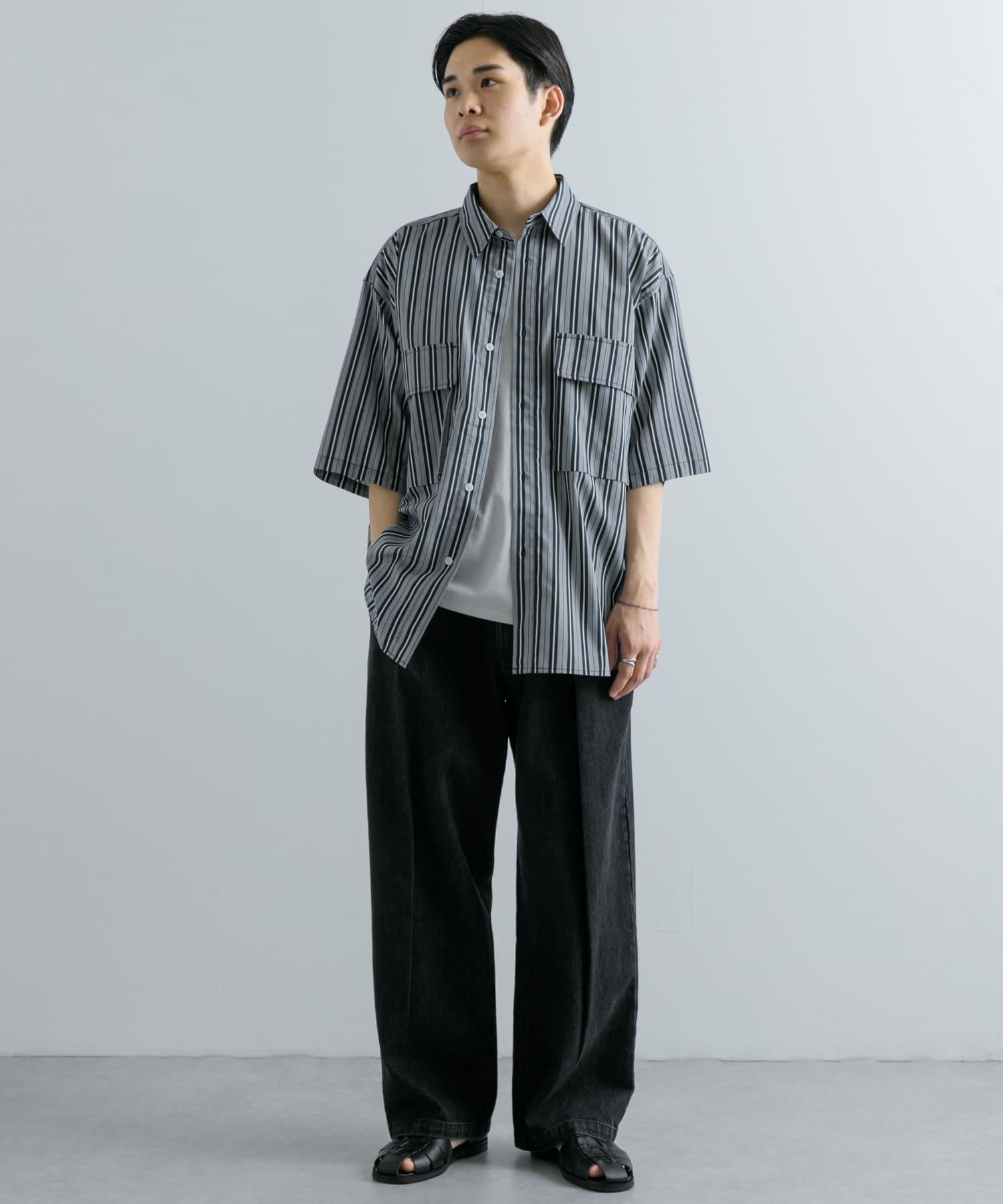 條紋CPO寬鬆襯衫(五分袖)