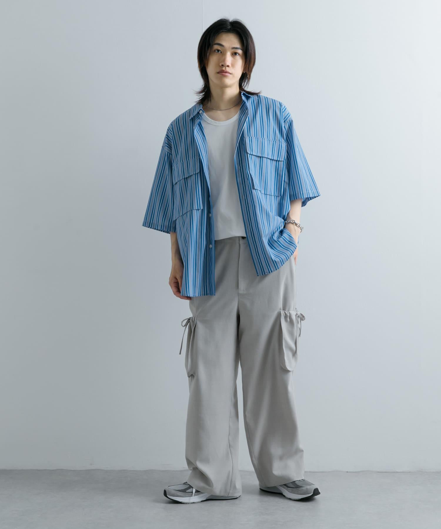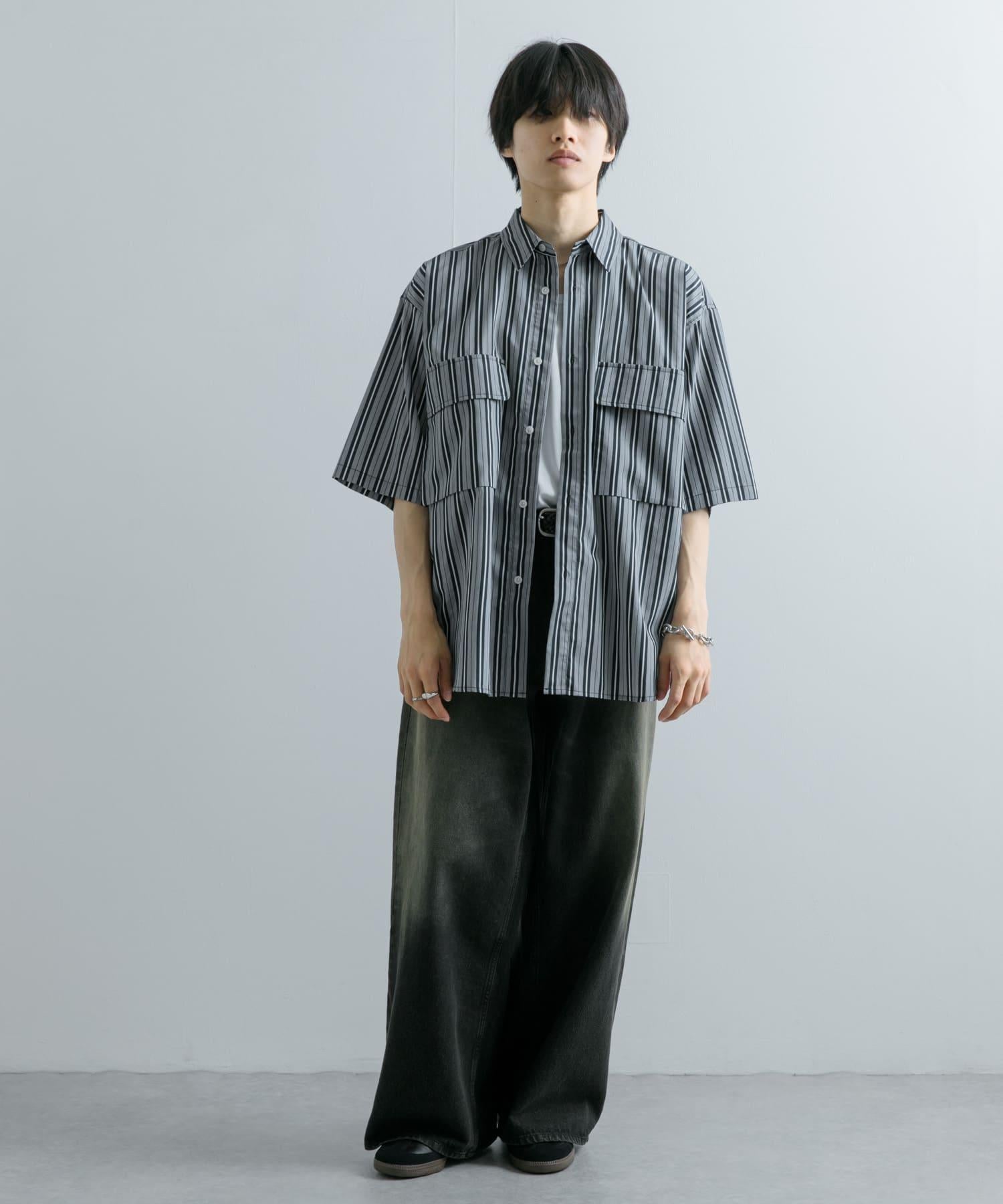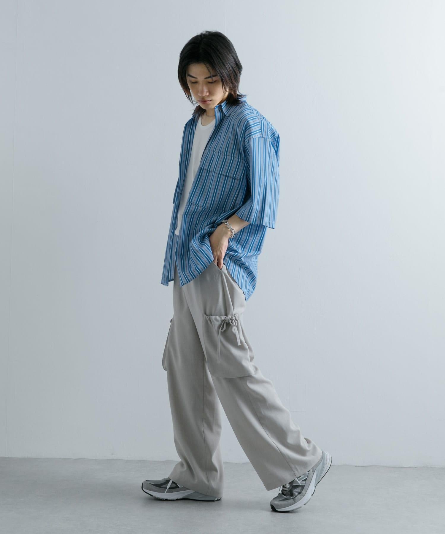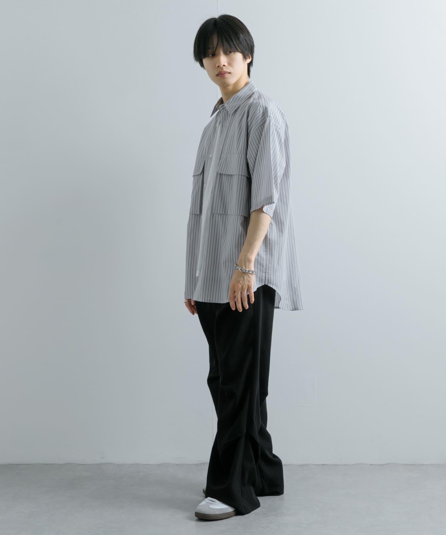 條紋CPO寬鬆襯衫(五分袖)