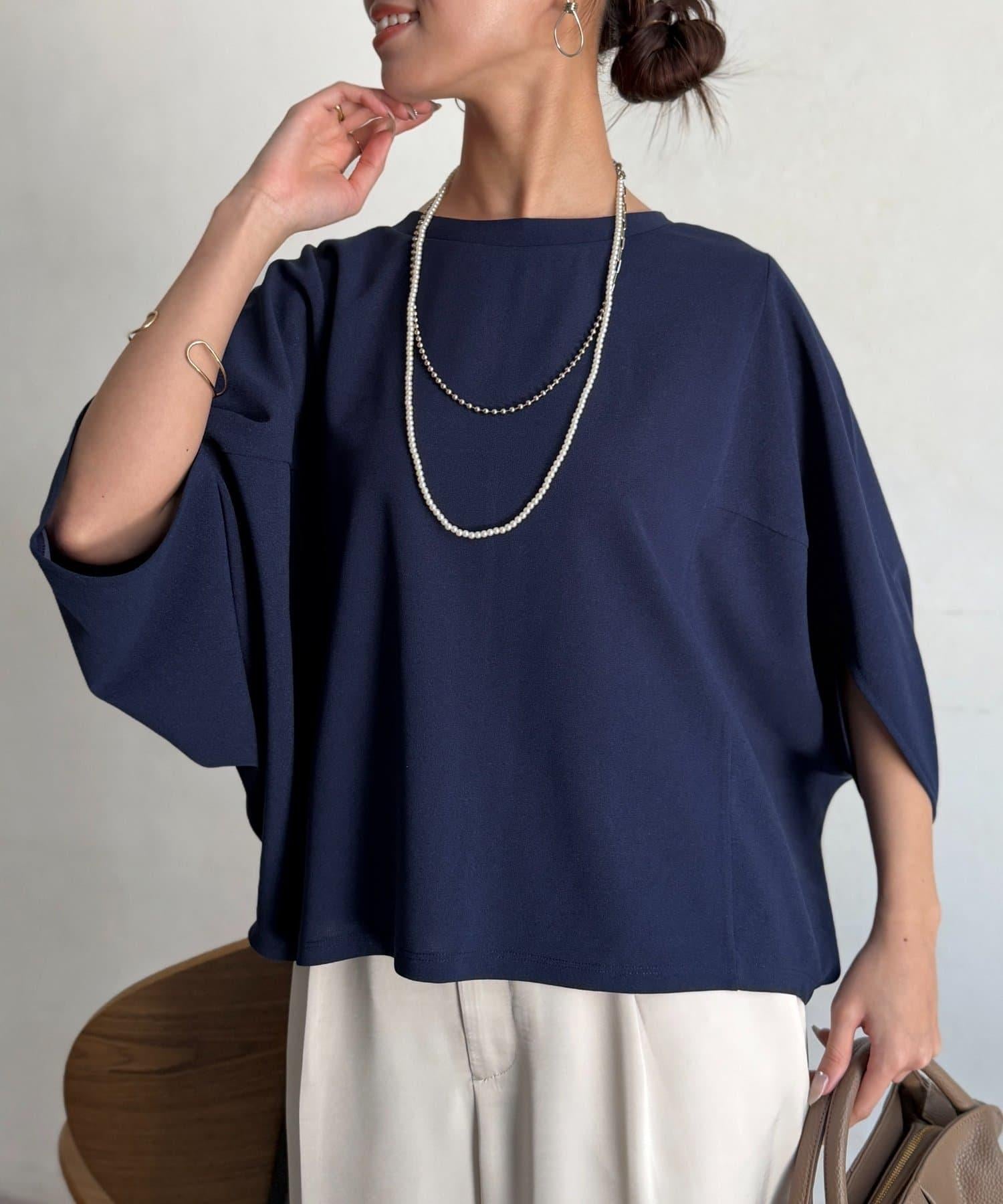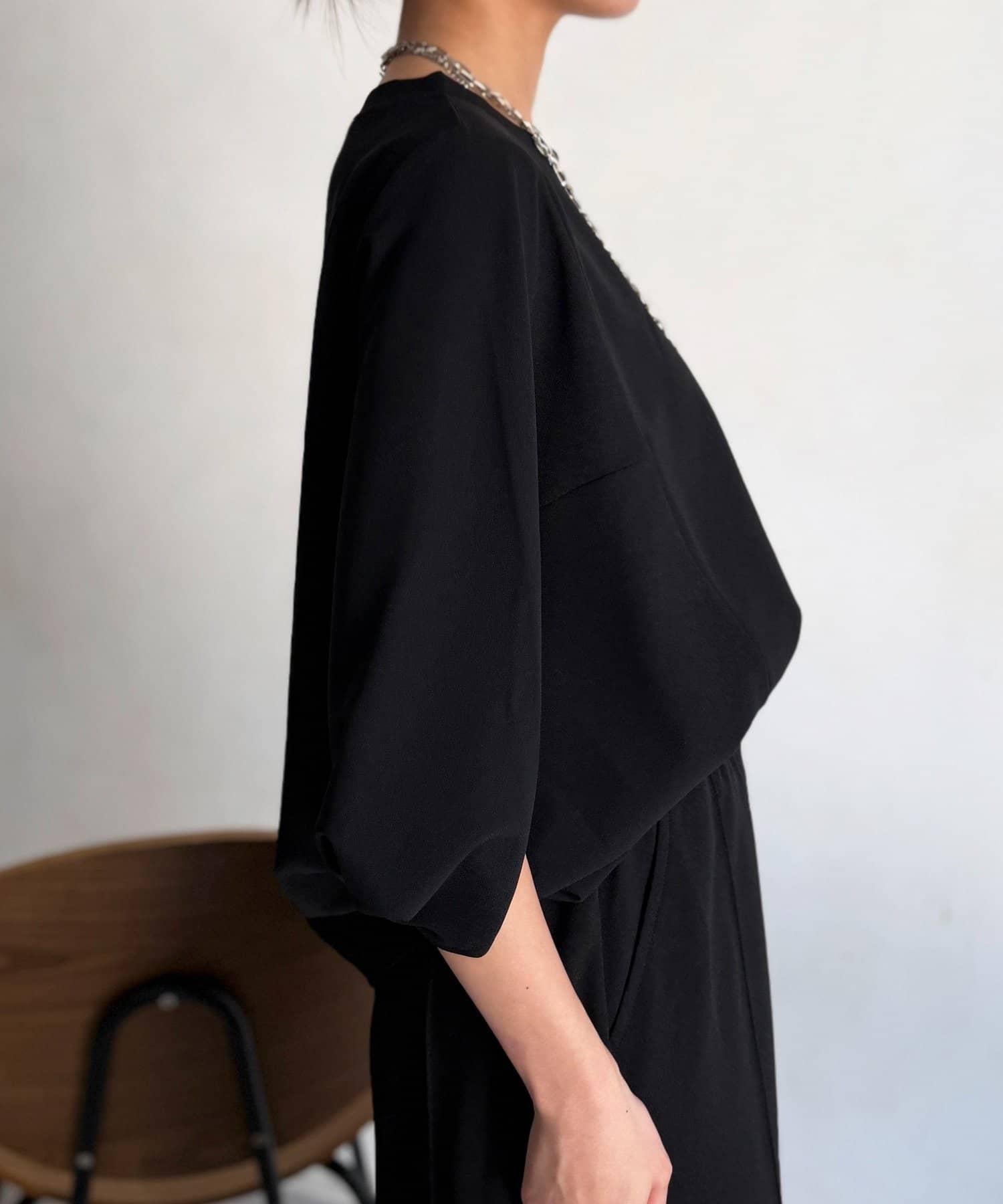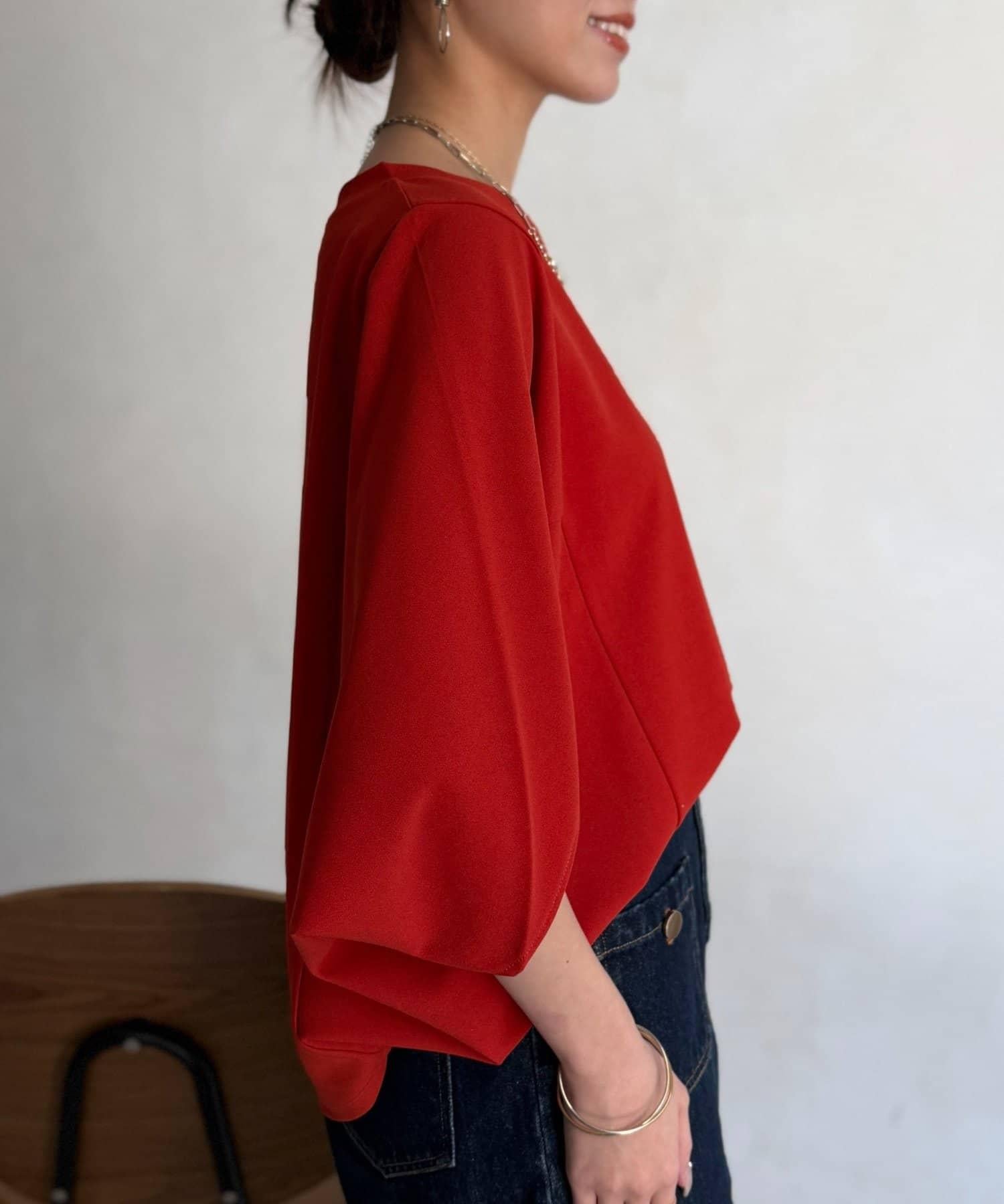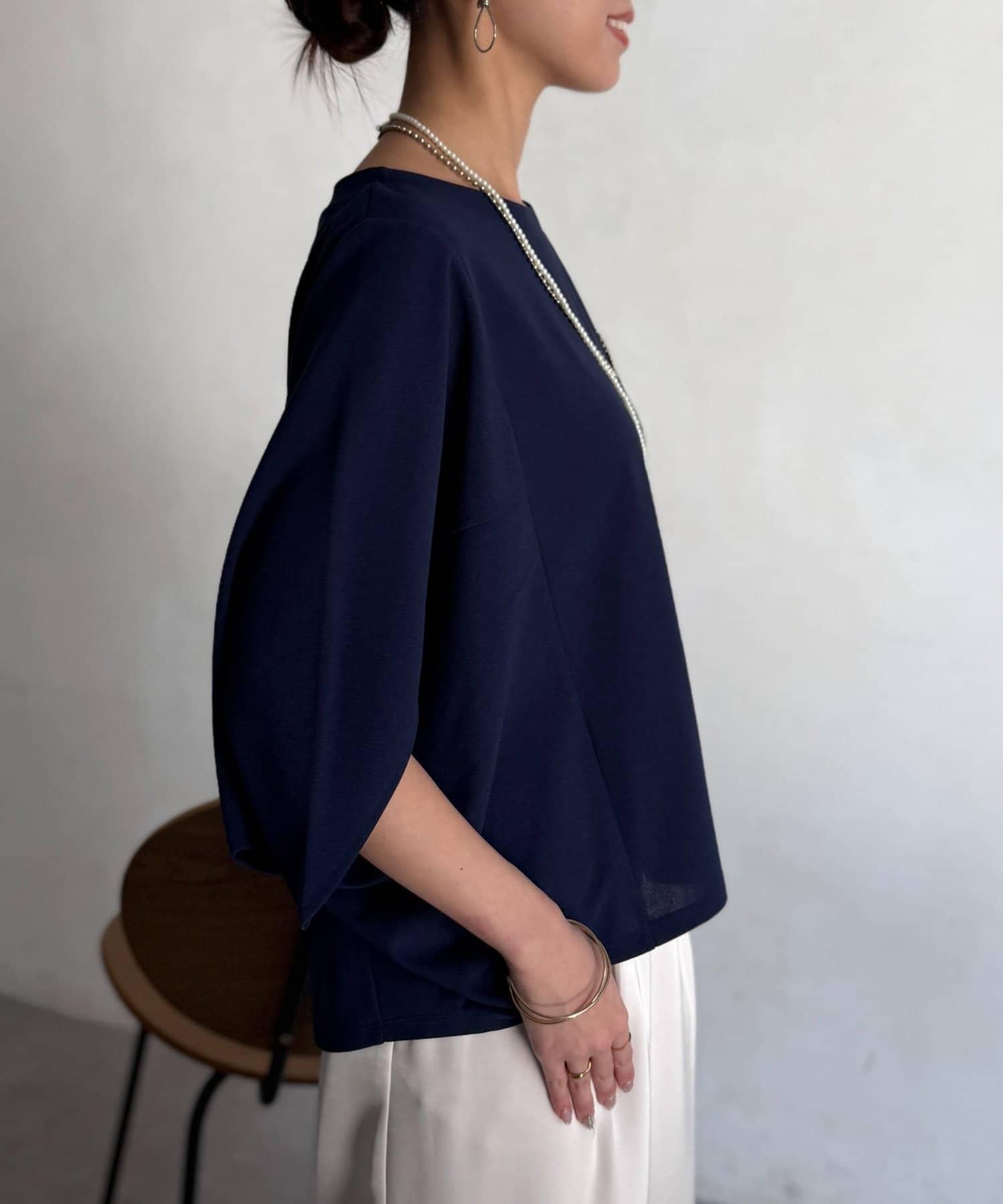 梨地面料闊袖套頭上衣