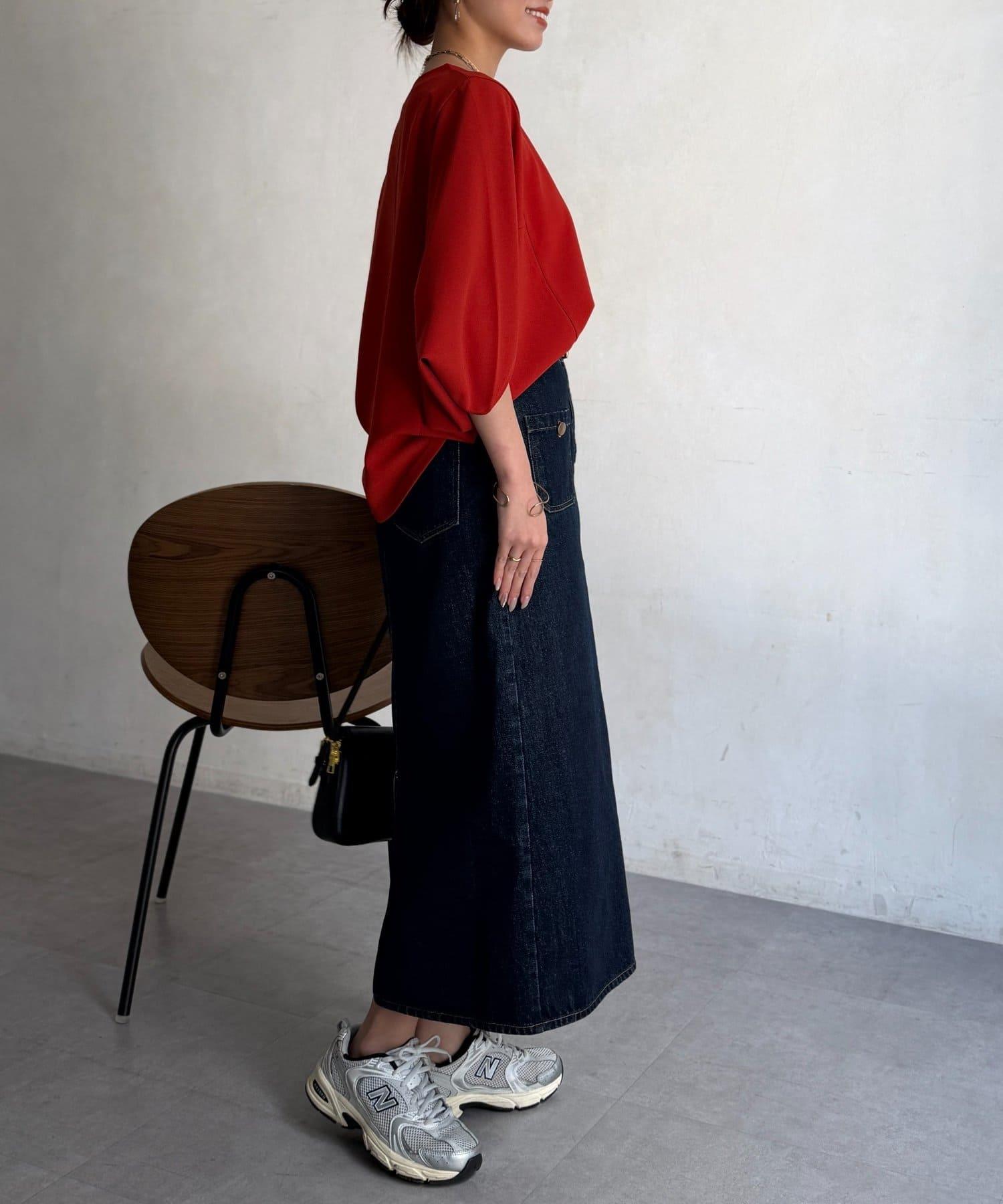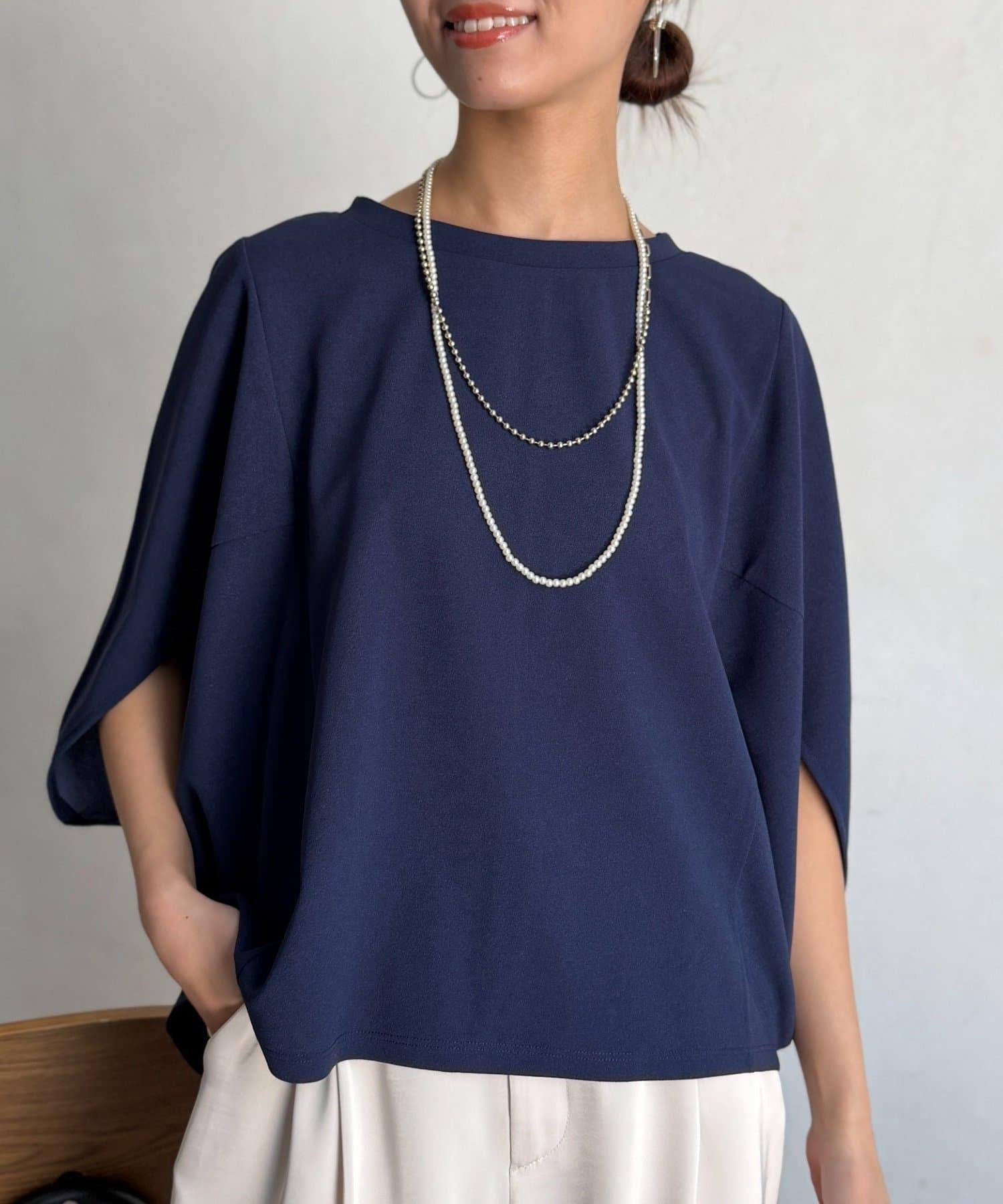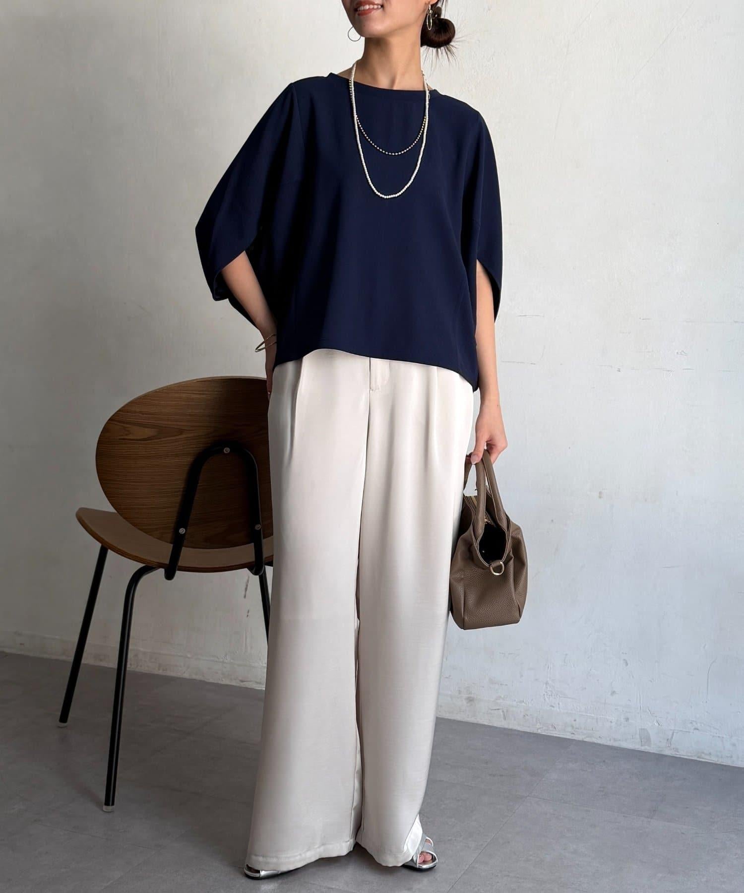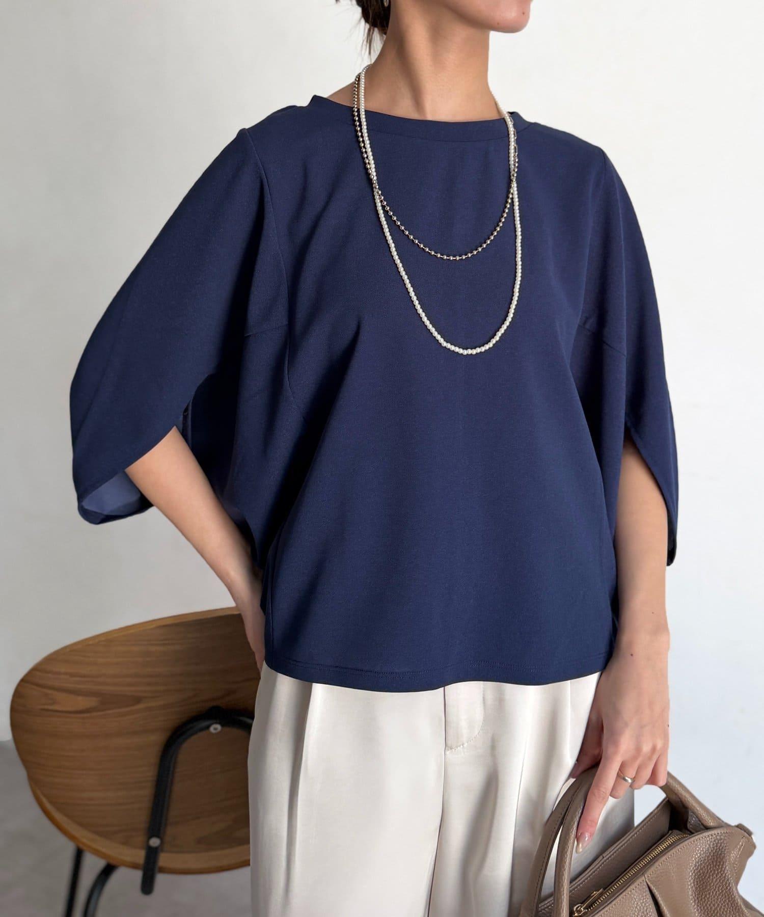 梨地面料闊袖套頭上衣