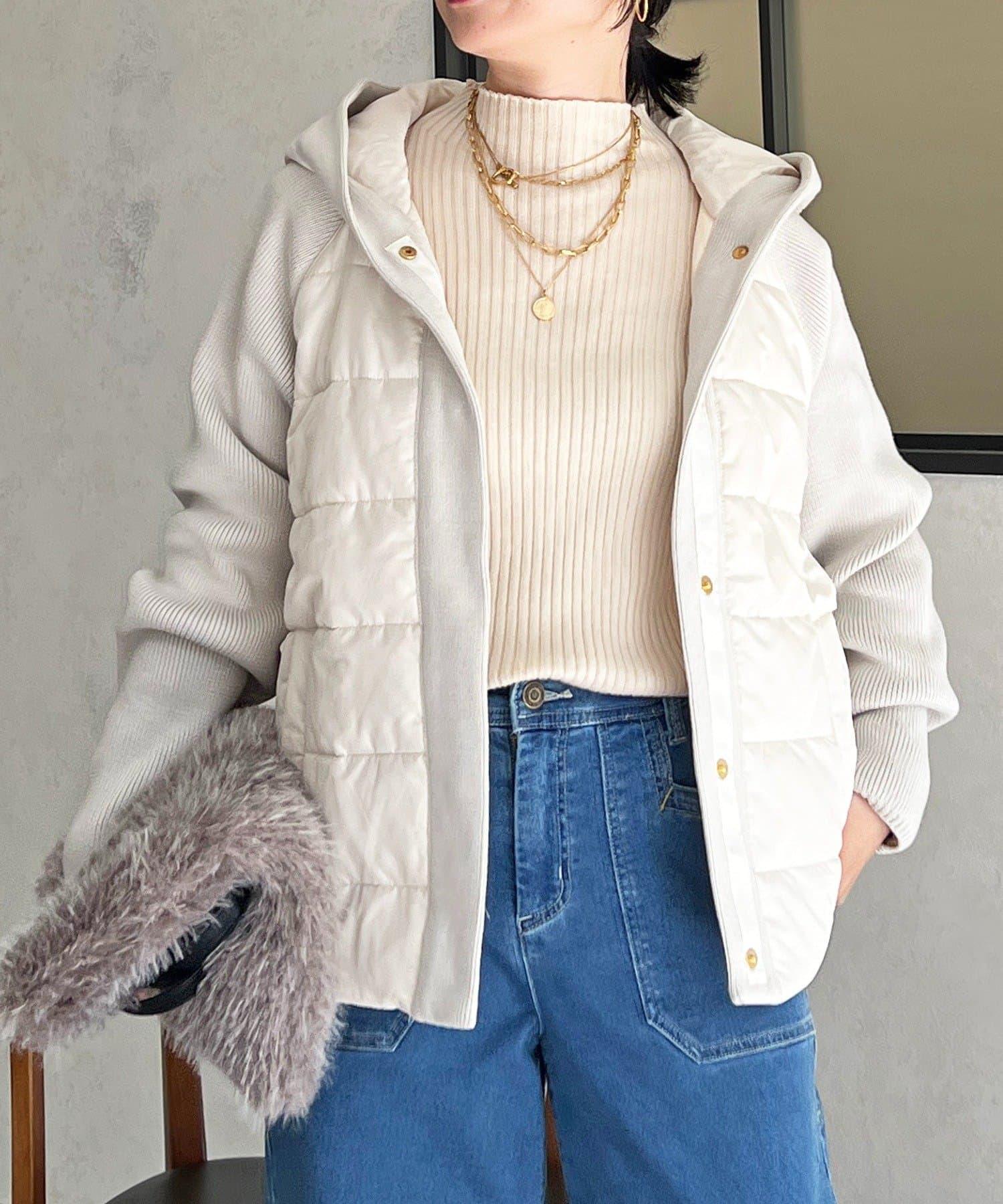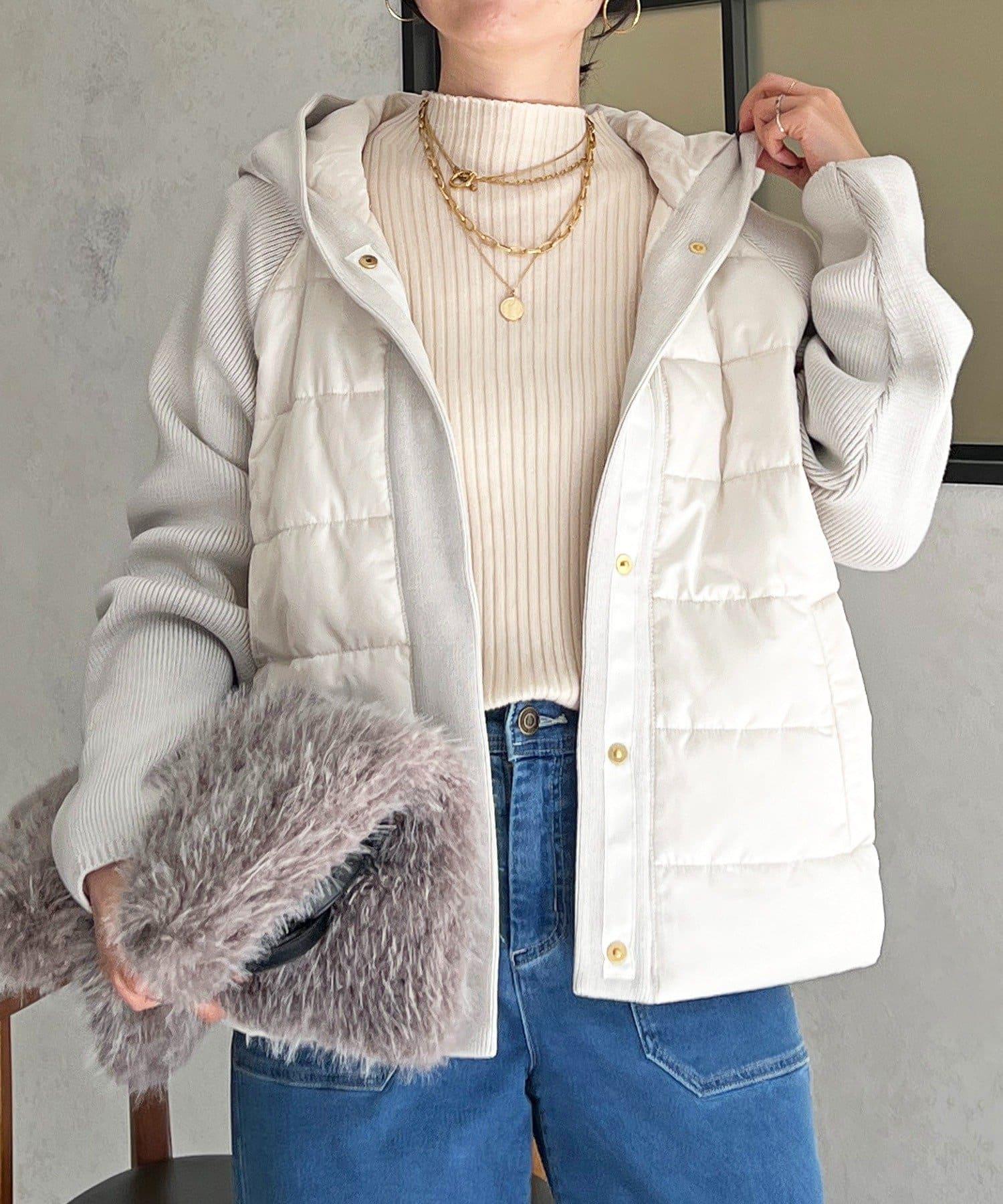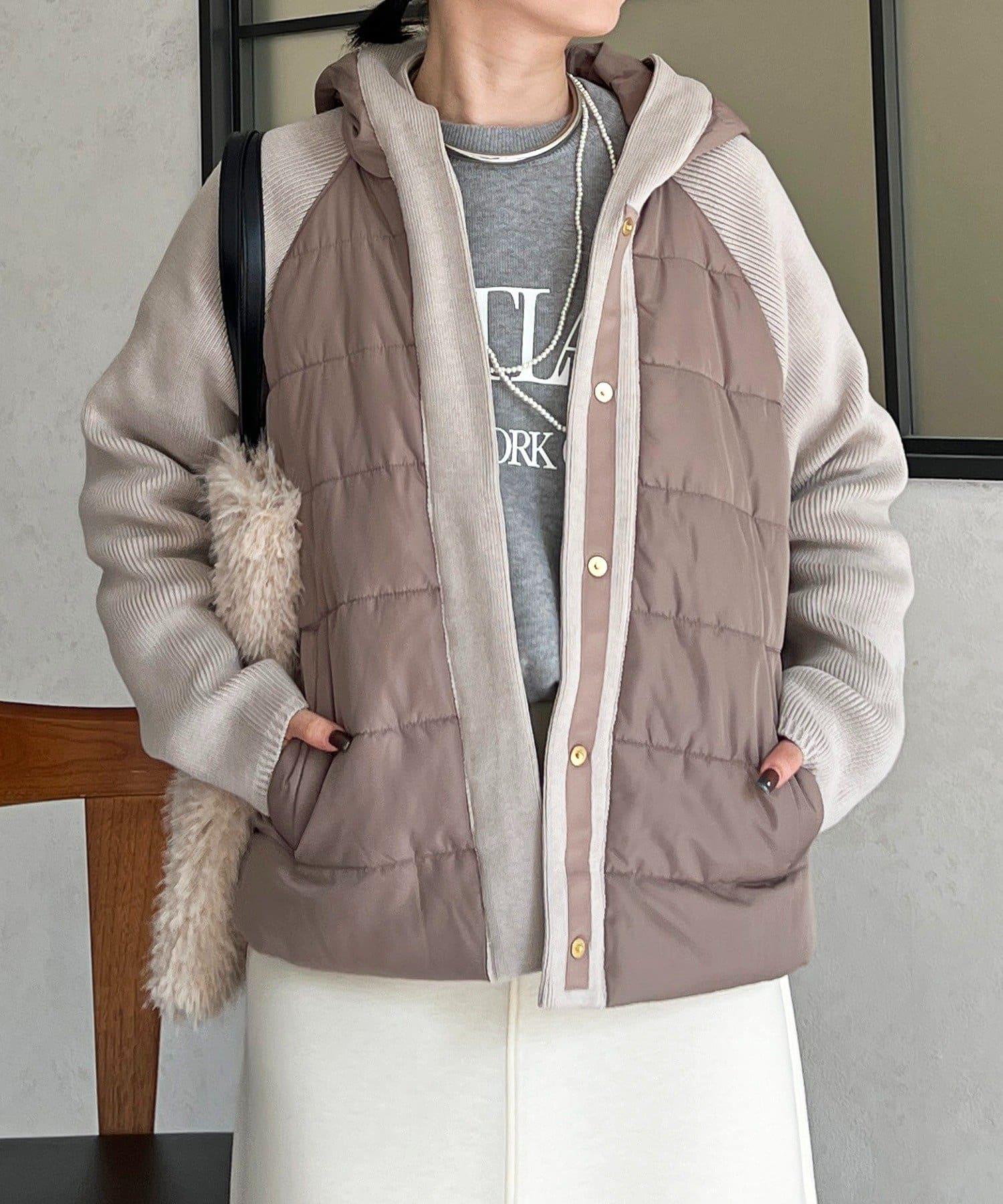 棉質衣身、針織袖子的針織外衣,可像開衫一樣編織。