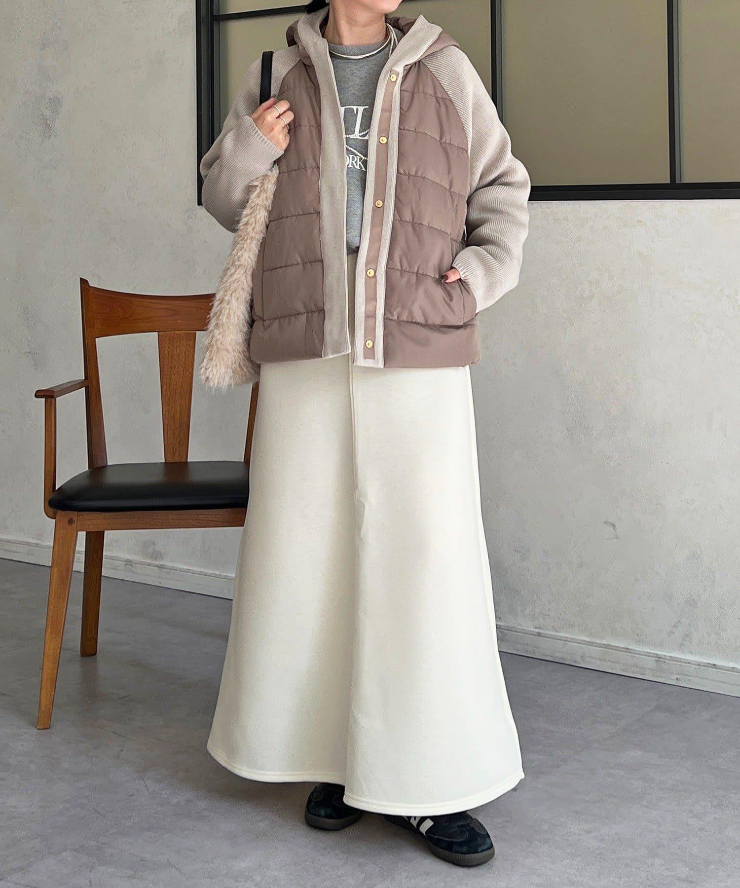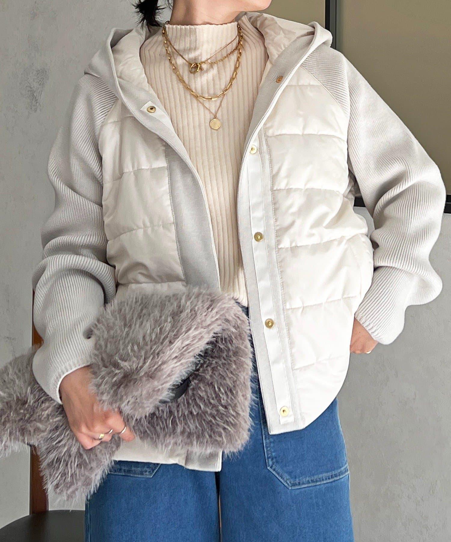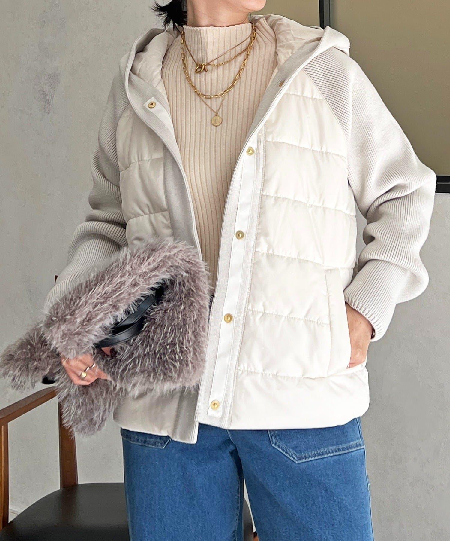 棉質衣身、針織袖子的針織外衣,可像開衫一樣編織。