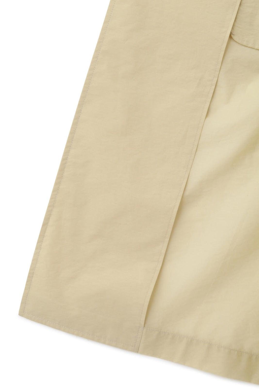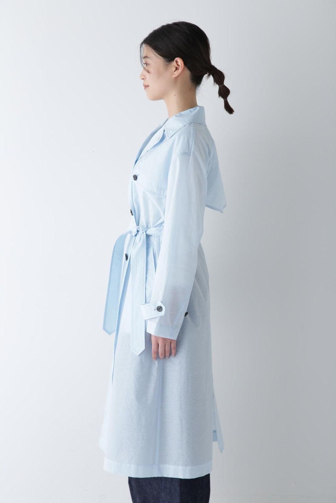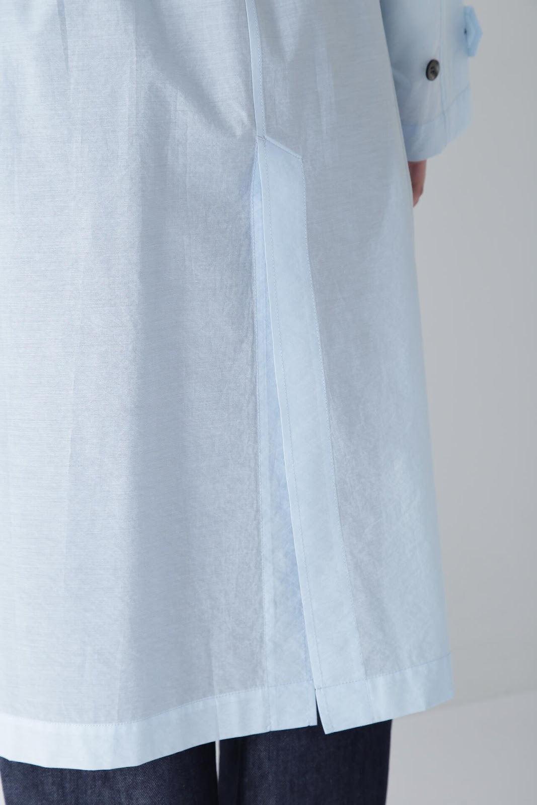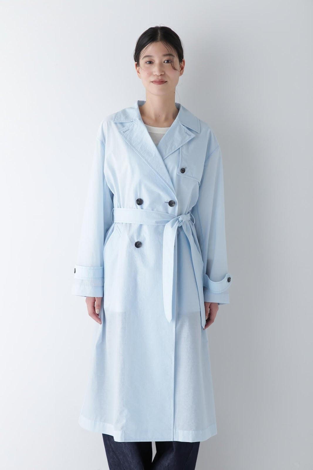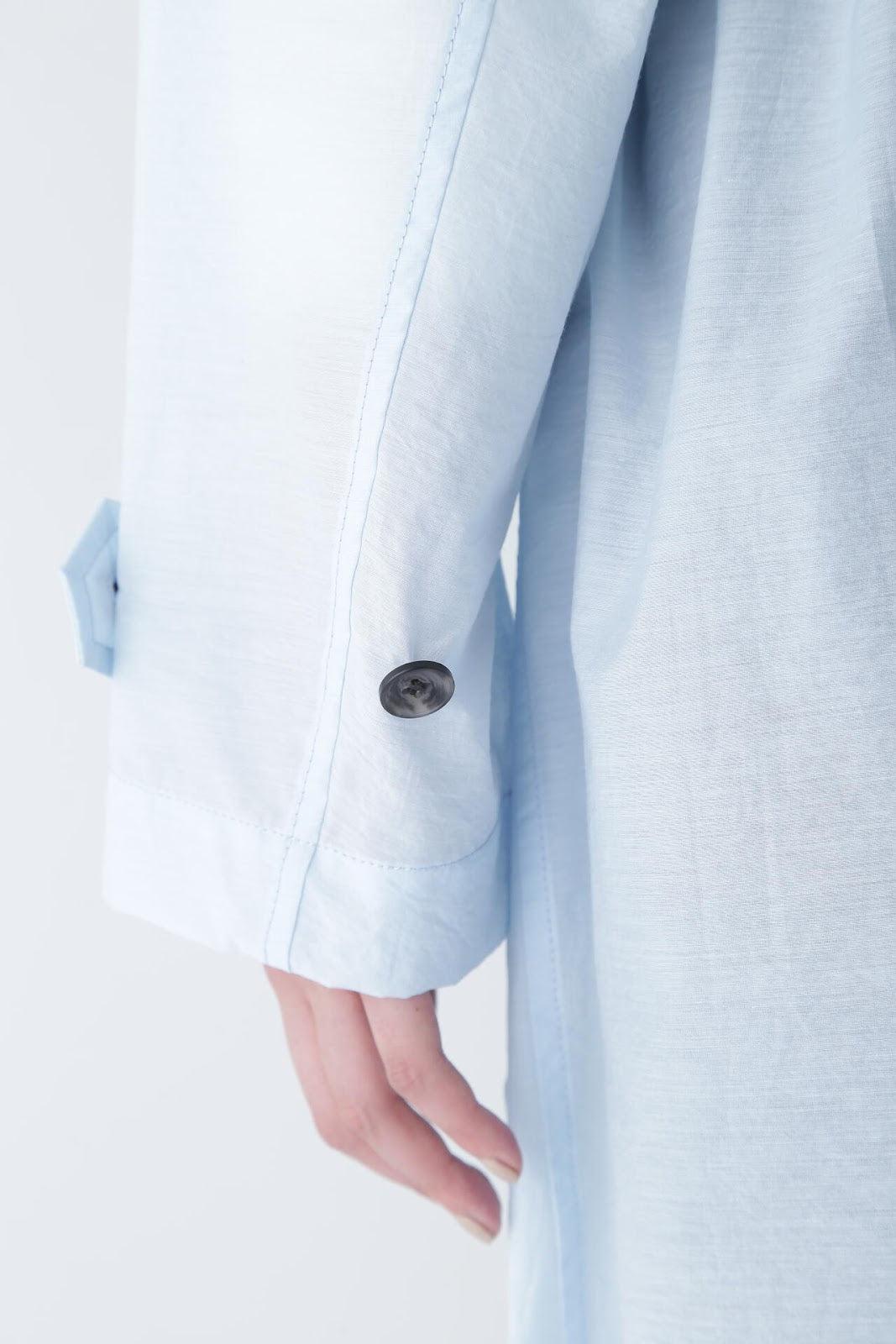 讓疊穿充滿樂趣的透明風衣 [設計要點] 這是一款輕盈的風衣,具有適度的透明感和時尚感。以簡潔的細節修飾,將透明感發揮得淋漓盡致。小風擋也是今年的典型款式。N/C 洗水塔夫綢具有良好的透視感,紋理自然,表面質感清晰。推薦搭配:只需將其加入基本的法式休閒裝,如 chinos 和條紋 T,就能給人耳目一新的感覺。外搭圖案單品,也能享受面料的輕薄感。