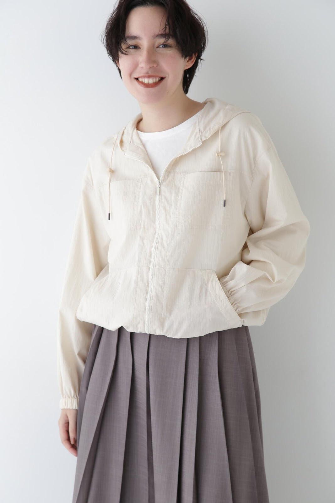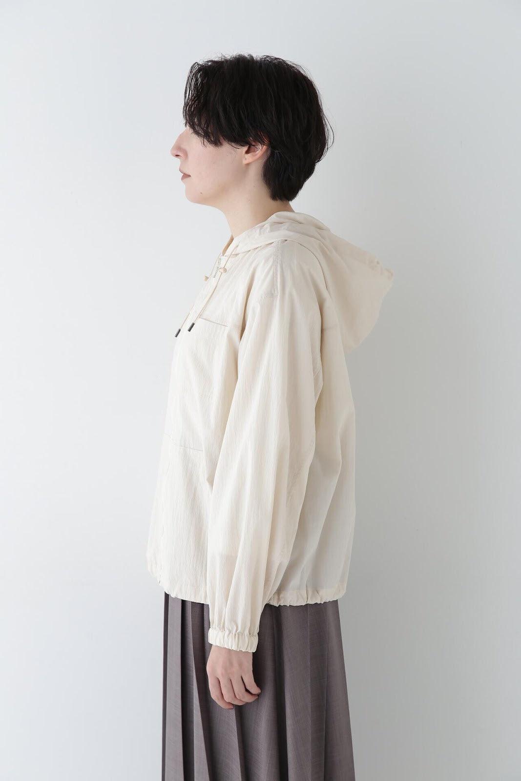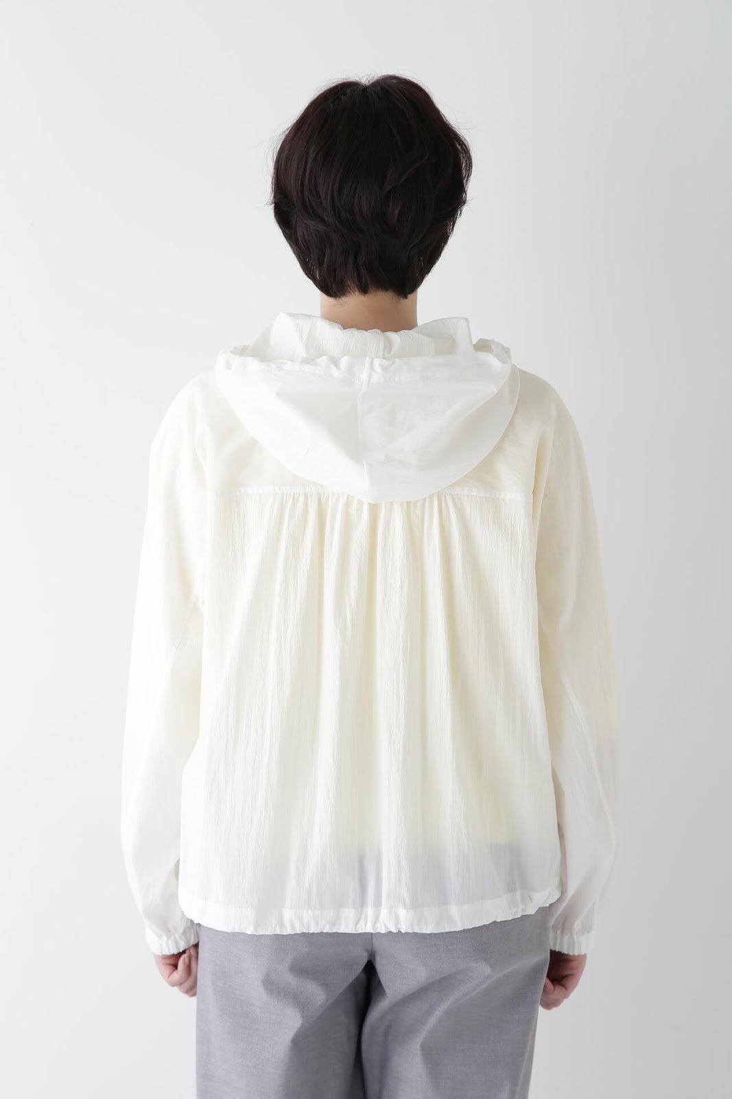休閒又不失女人味的連帽衫 [設計特色] 薄款連帽衫,帶有揹帶褲細節。通過下襬抽繩,還可以瀏覽穿著。在這種情況下,塞子可以藏在裡面。面料是由棉和尼龍交織而成的透視面料,質感好、涼爽。這款罩衫是一款運動型罩衫,帶有優雅的光澤,成人也能輕鬆穿著。它還可以用作輕便的外衣,防曬效果很好。