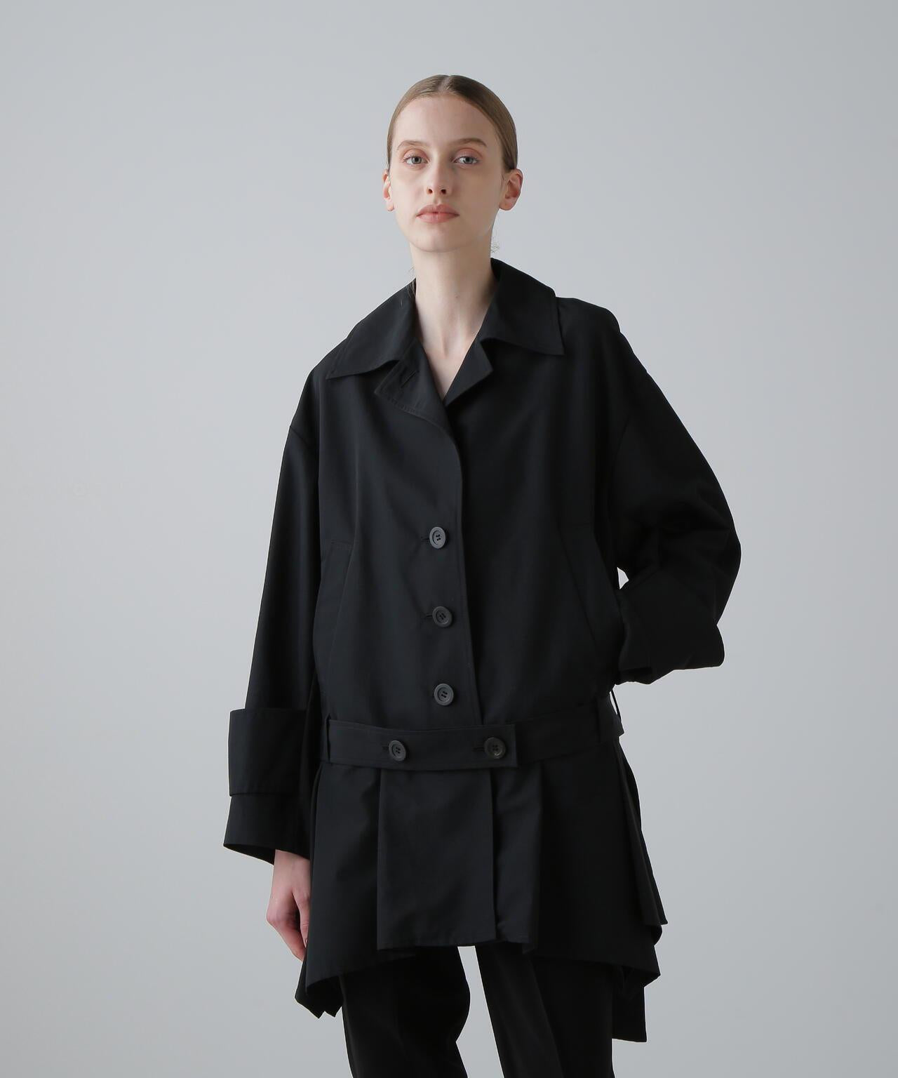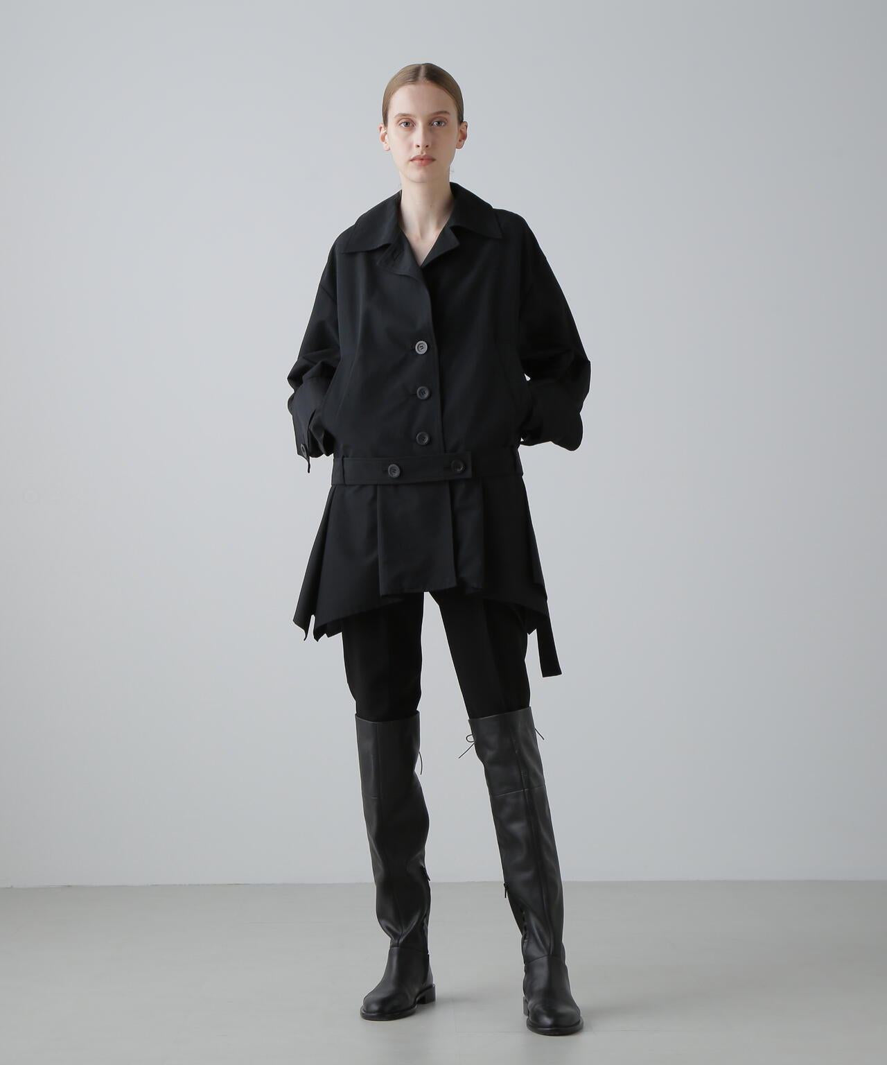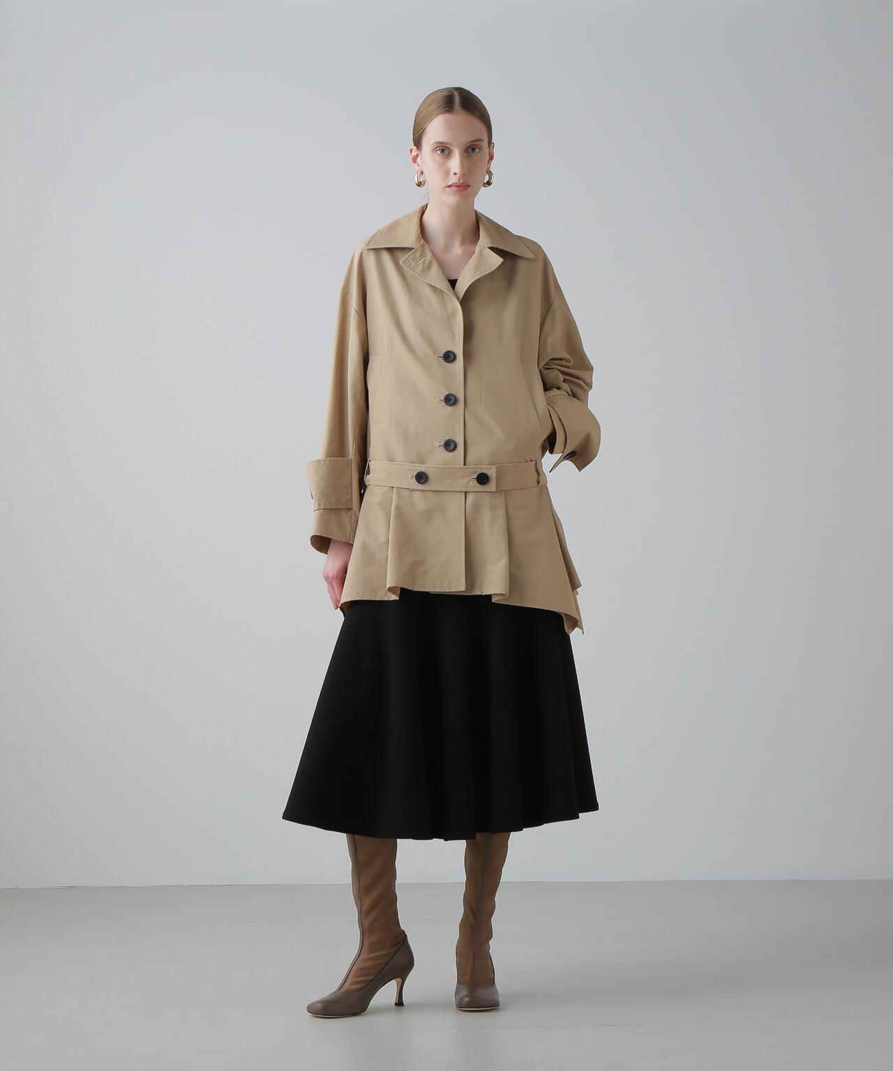 棉尼龍羅緞夾克這是一款介於超大剪裁夾克和寬鬆夾克之間的夾克。只需穿上這件外套,就能完美演繹本年度的時尚風格。它的腰部以下特意剪裁成手帕邊的蓬蓬裙。腰帶背面的搭扣可以調整輪廓。採用張力適中的羅緞面料,縱向為尼龍,橫向為棉的高密度編織。防水處理。