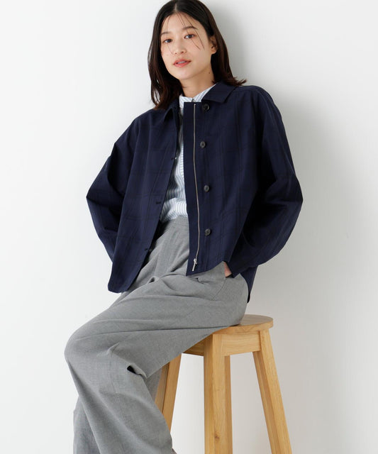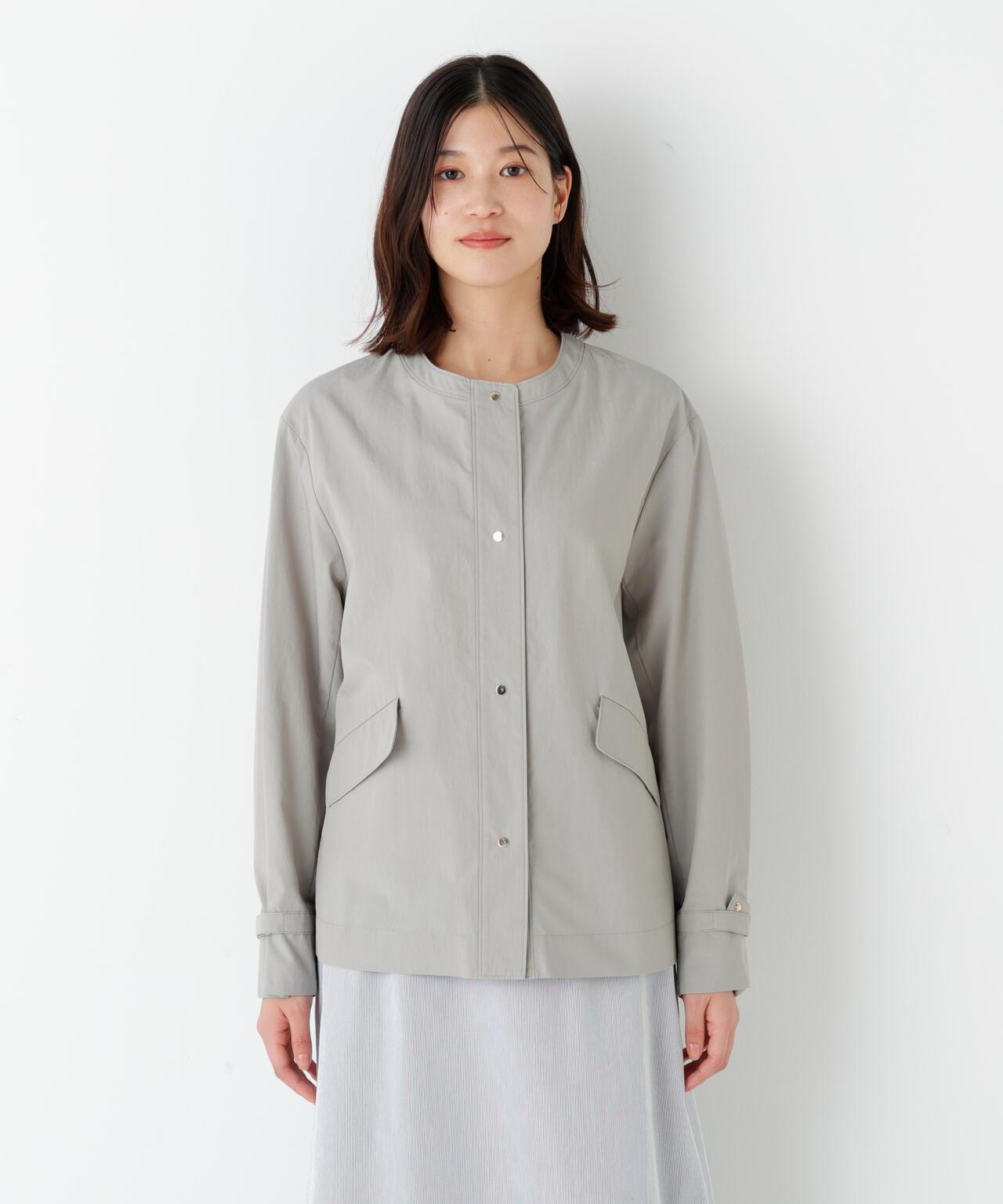 一款日常穿著的無領夾克,外觀自然大方 [設計特色] 簡單的無領夾克,前襟飾有圓點紐扣,外觀簡潔大方。略帶 A 字的廓形。袖口可以通過收攏標籤和塞入袖口的方式進行微調。面料手感光滑乾爽,具有天然的洗衣機紋理。細線密織而成,輕薄而不失質感。推薦座標】外觀自然,易於休閒穿著。百搭的長度使這款夾克既可搭配裙裝,也可搭配褲裝。
