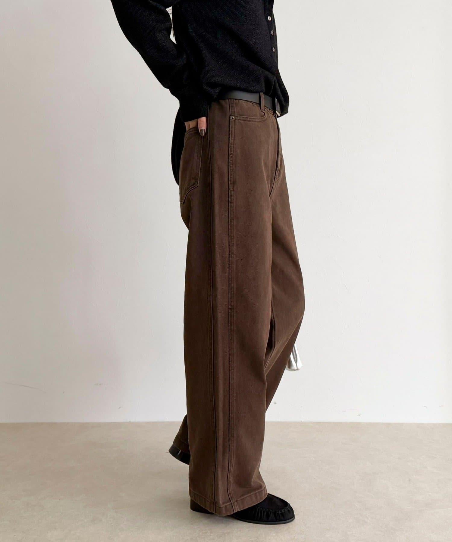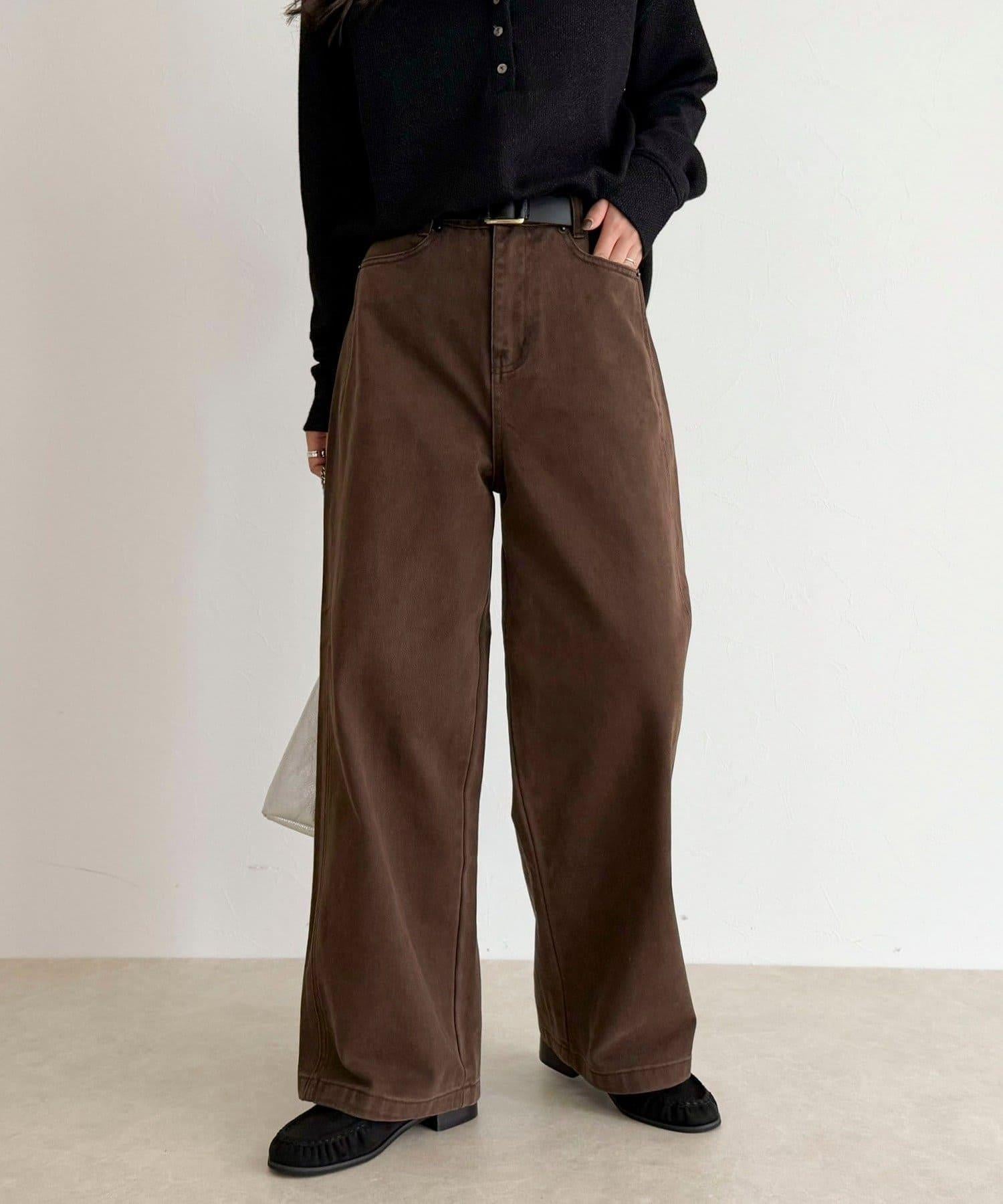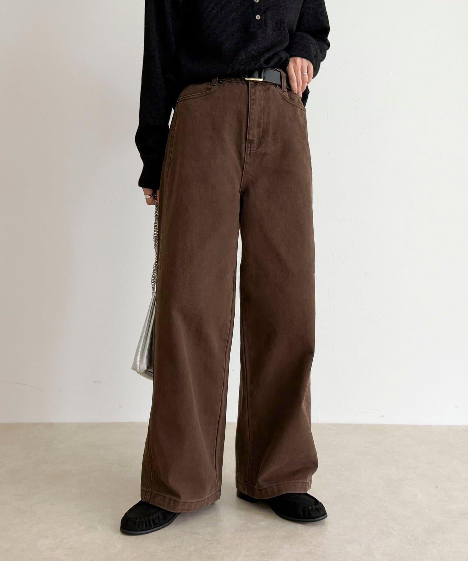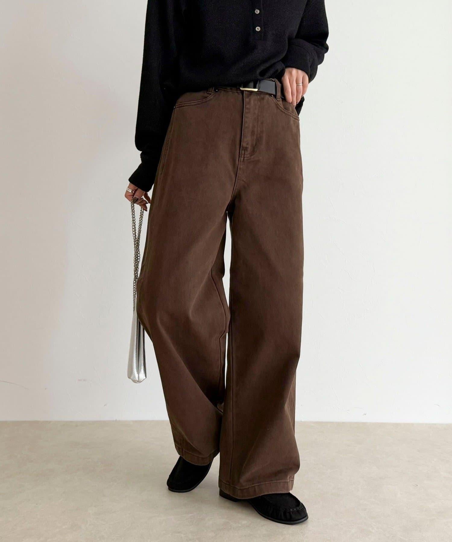 採用厚實的棉斜紋面料剪裁而成的寬直筒褲。