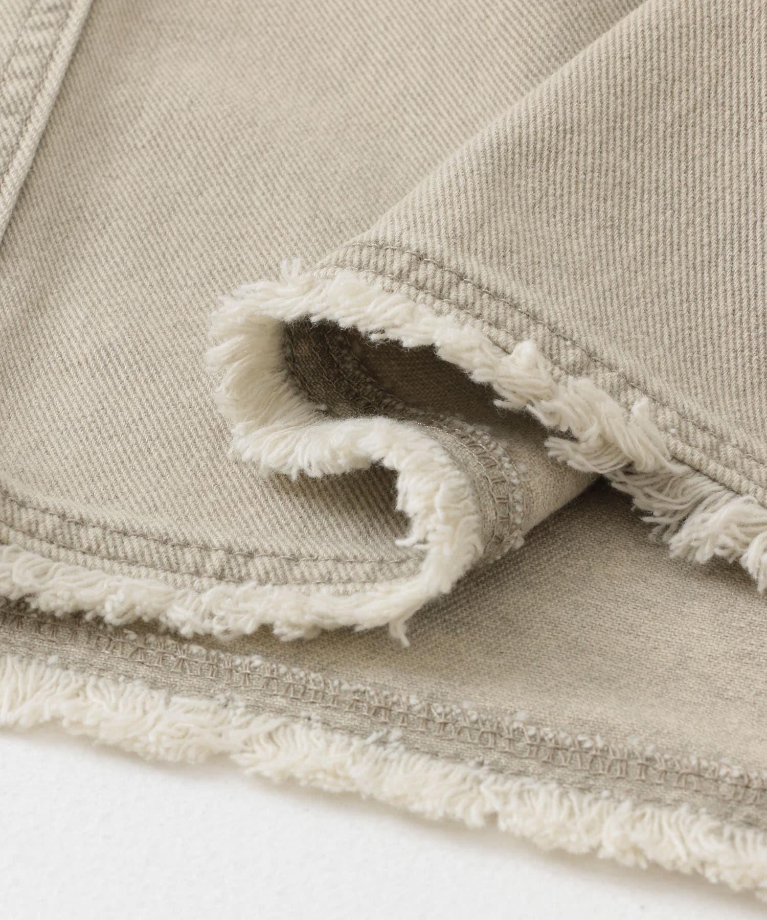由於設計原因,本產品的部分長度已被剪裁。因此,反覆穿著或洗滌時可能會磨損。如果您擔心磨損,請不要強行拉扯布料,而是用剪刀將磨損部分逐一剪掉。