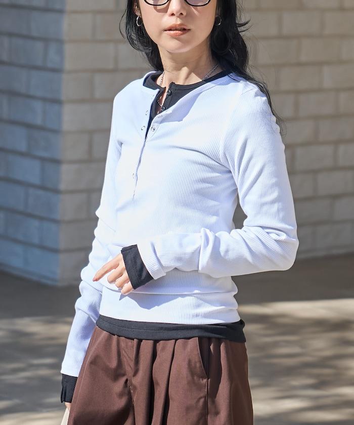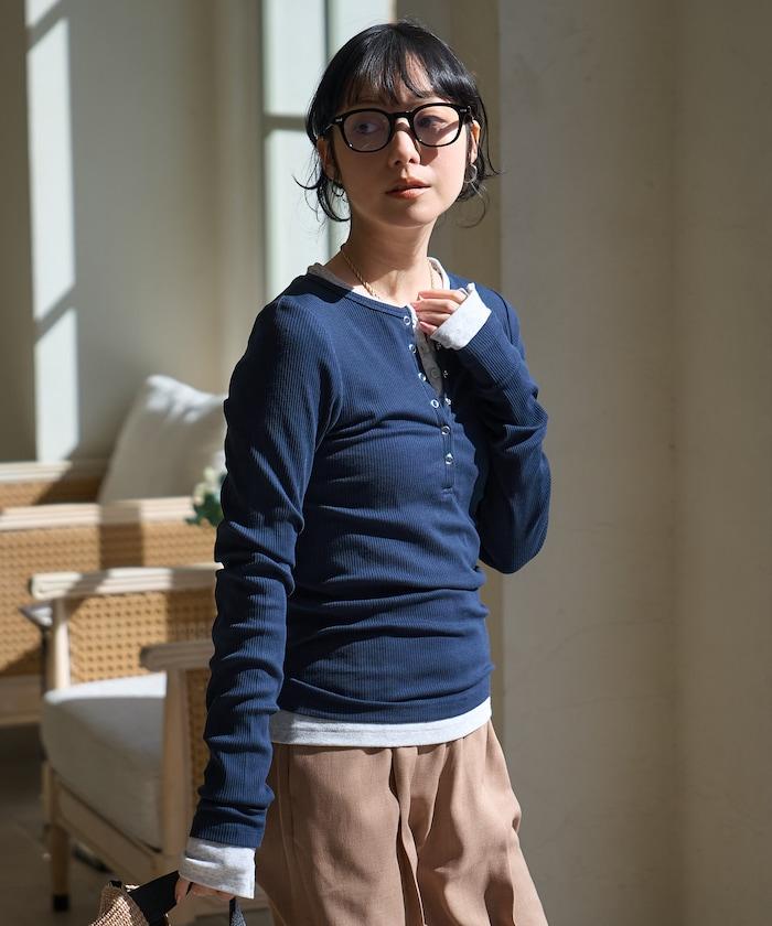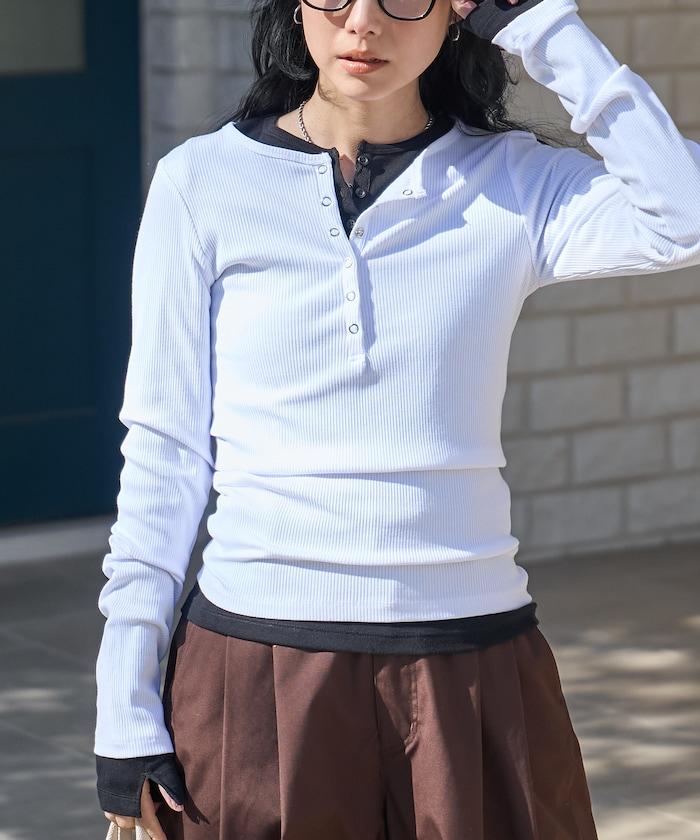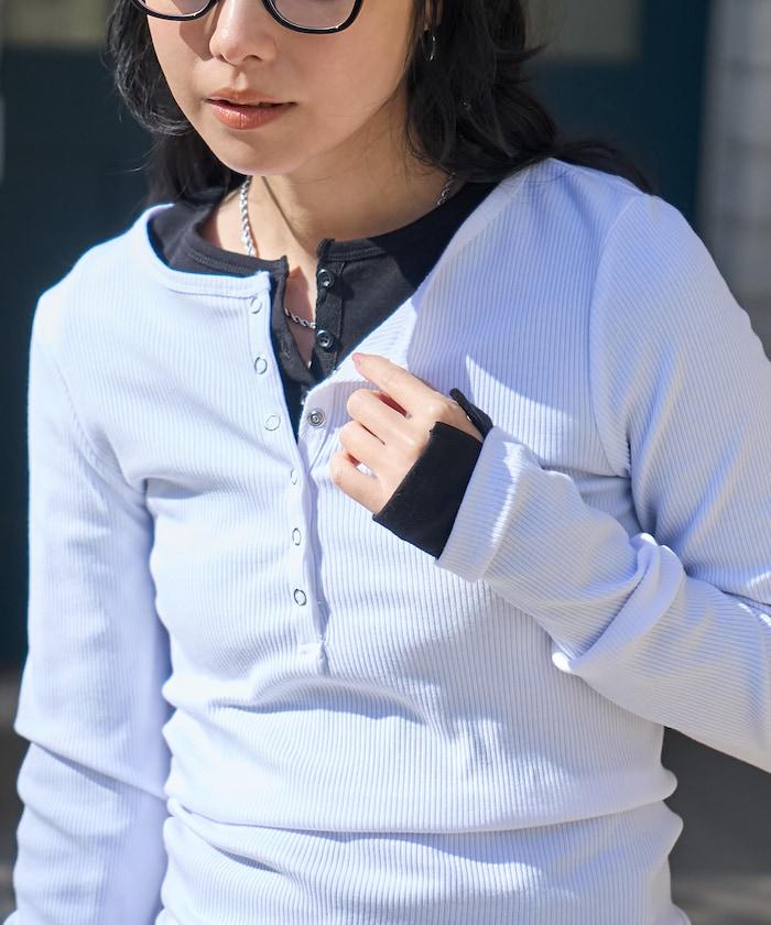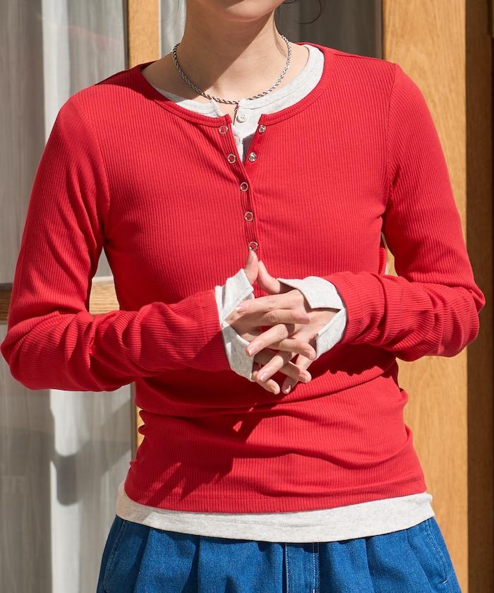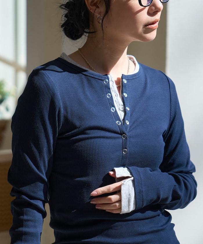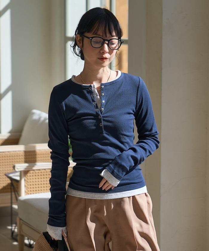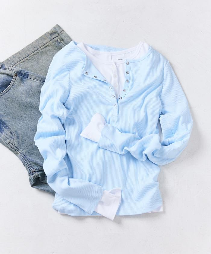 棉莫代爾 亨利領 疊穿 長袖T恤 組合款