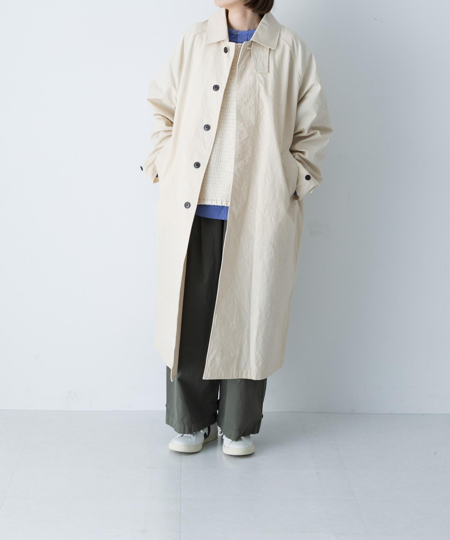 一件能為您的日常造型增添精緻感的外套。紋理豐富的恩施染色面料並不硬挺,彈力恰到好處,給人一種優雅的印象。仔細觀察還能發現其獨特的染色效果,顏色並不單調。袖子是便於穿著的插肩袖,衣身寬度較寬,但版型設計不會顯得太大。只有👍上面的紐扣是可見的。下部採用飛翼式剪裁設計,顯得簡約大方。領口還可以通過系下巴帶翻起。這款單品不失簡約,但簡約得恰到好處,在成人搭配中別具一格。天氣寒冷時可搭配針織衫,初春時節可搭配襯衫或剪裁縫製的衣服。可根據氣溫調整內搭,可長久穿著。請同時關注同款短外套。