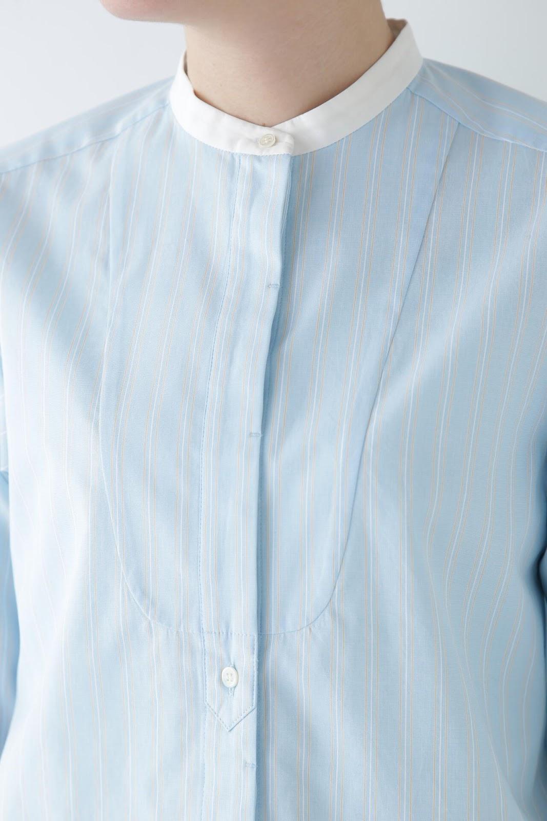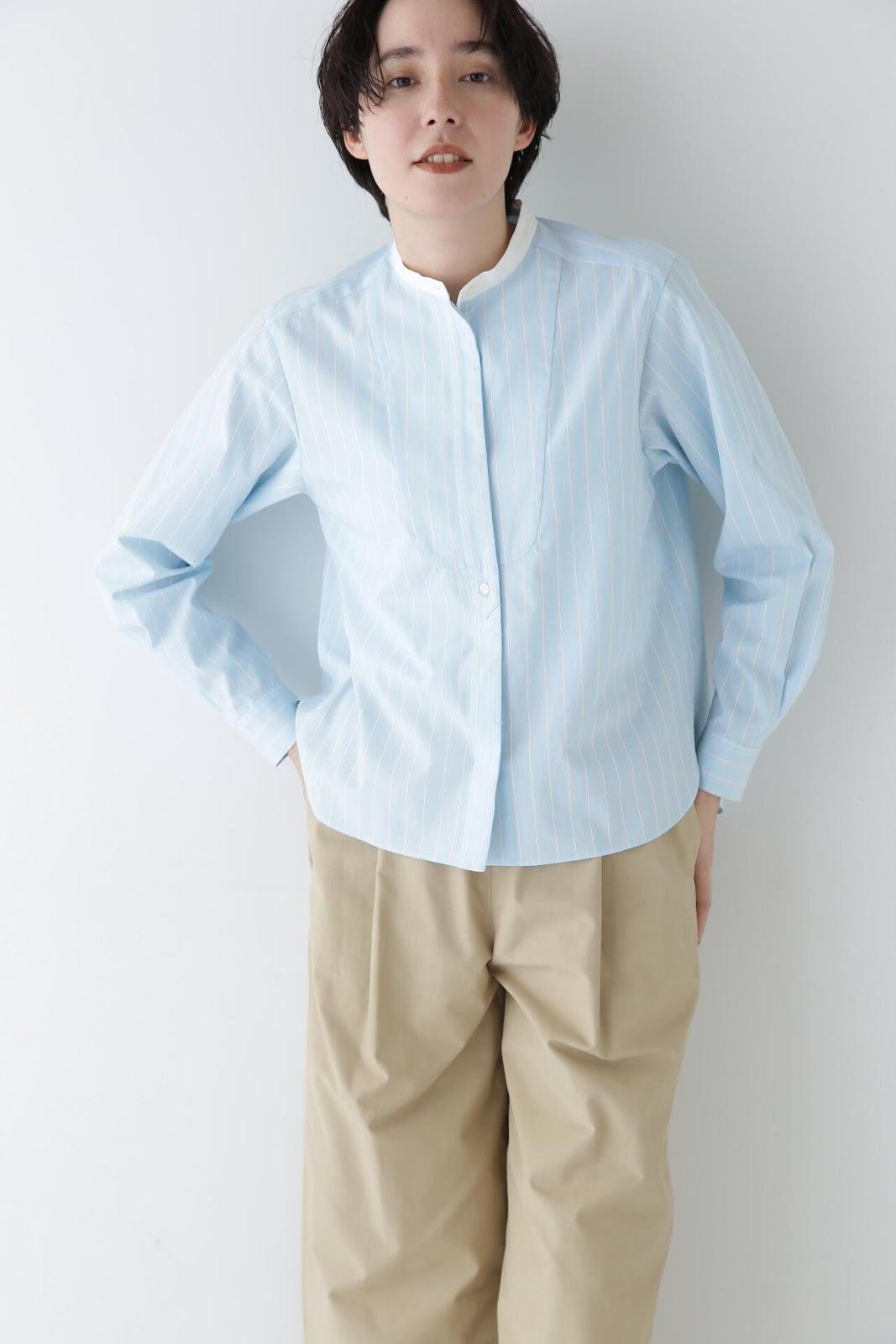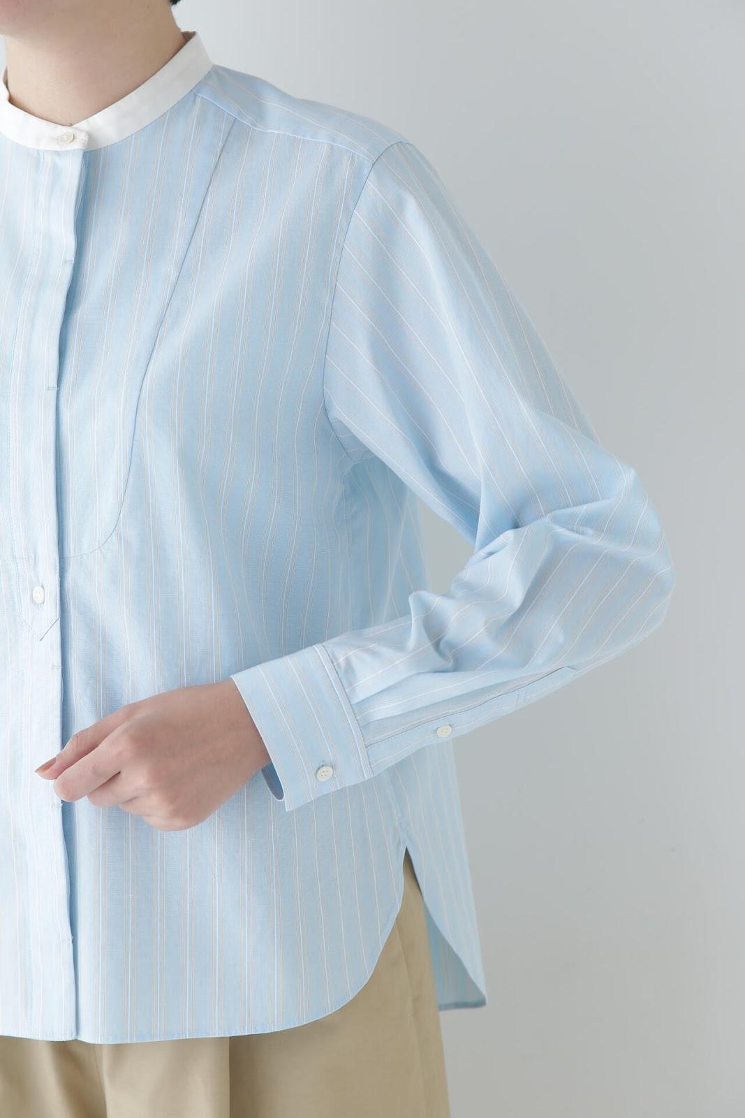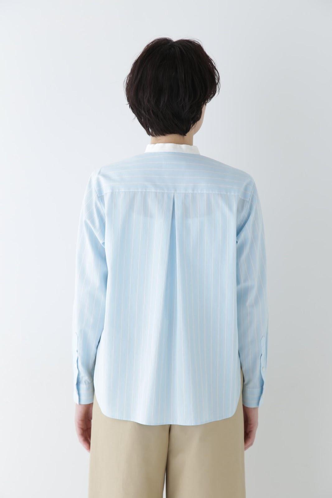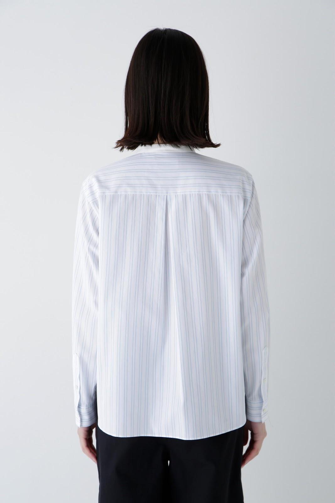 帶有醒目清新條紋圖案的教士襯衫 [設計特色] 這是一件教士型帶領襯衫,領子是潔白的。襯衫採用完全開放式的翼形剪裁。襯衫採用原棉多臂條紋面料,並採用當季流行色。這款襯衫非常適合日常穿著和休閒辦公。該款襯衫可與多種下裝搭配,盡顯女性魅力。