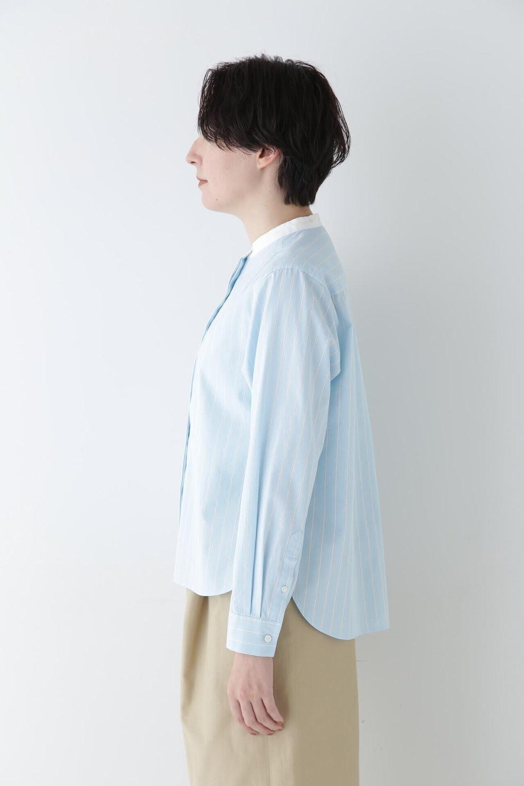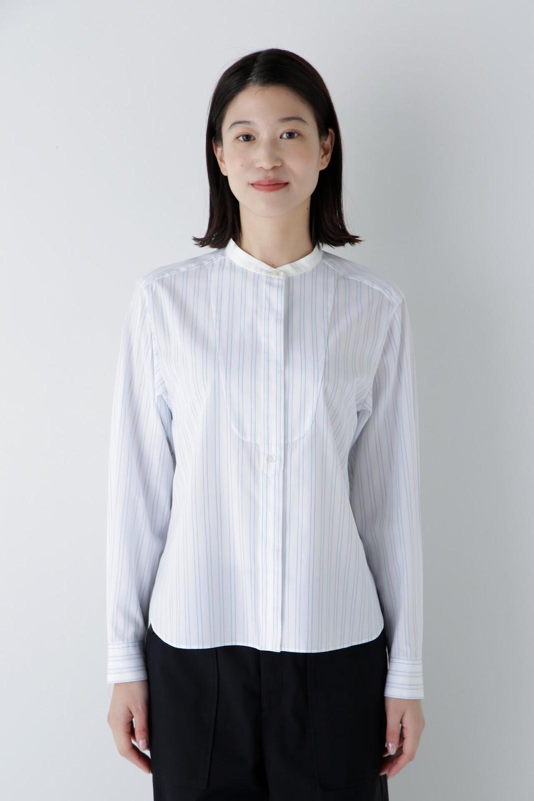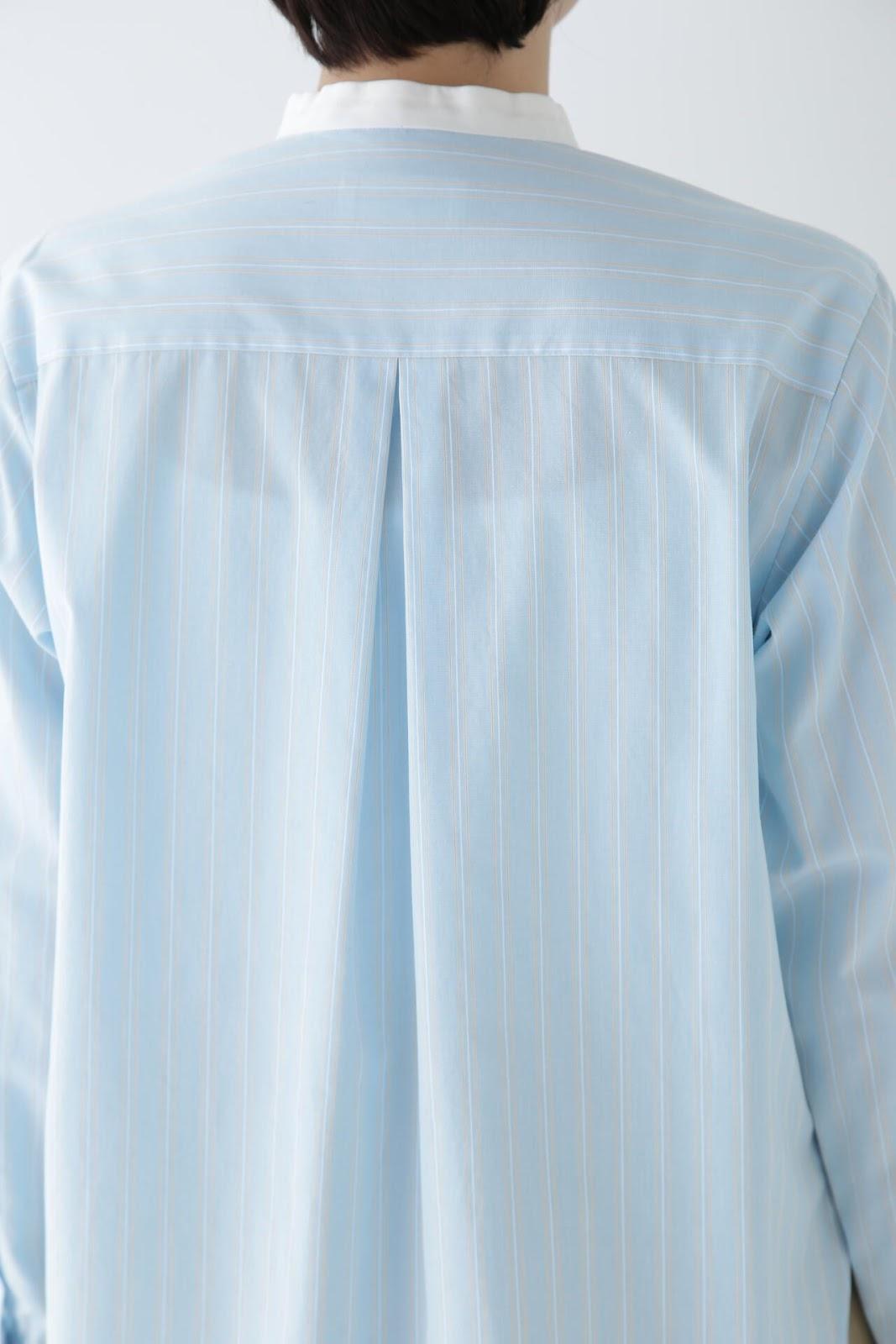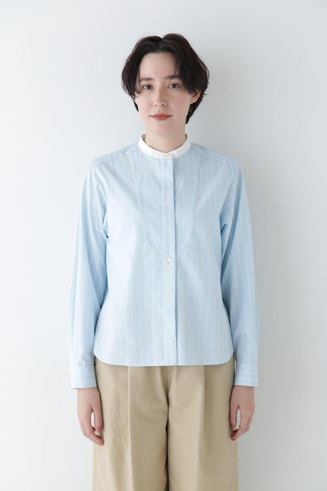 帶有醒目清新條紋圖案的教士襯衫 [設計特色] 這是一件教士型帶領襯衫,領子是潔白的。襯衫採用完全開放式的翼形剪裁。襯衫採用原棉多臂條紋面料,並採用當季流行色。這款襯衫非常適合日常穿著和休閒辦公。該款襯衫可與多種下裝搭配,盡顯女性魅力。