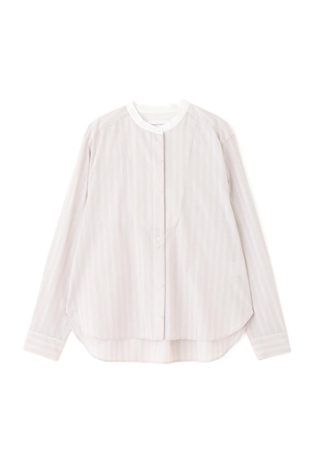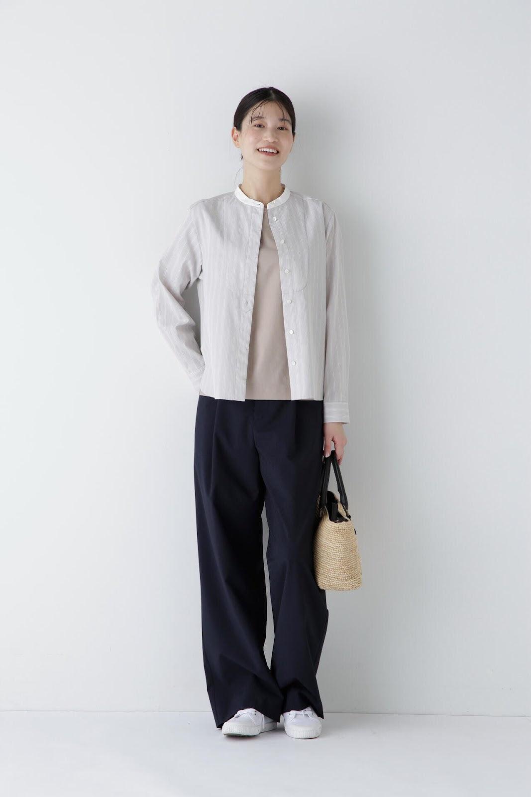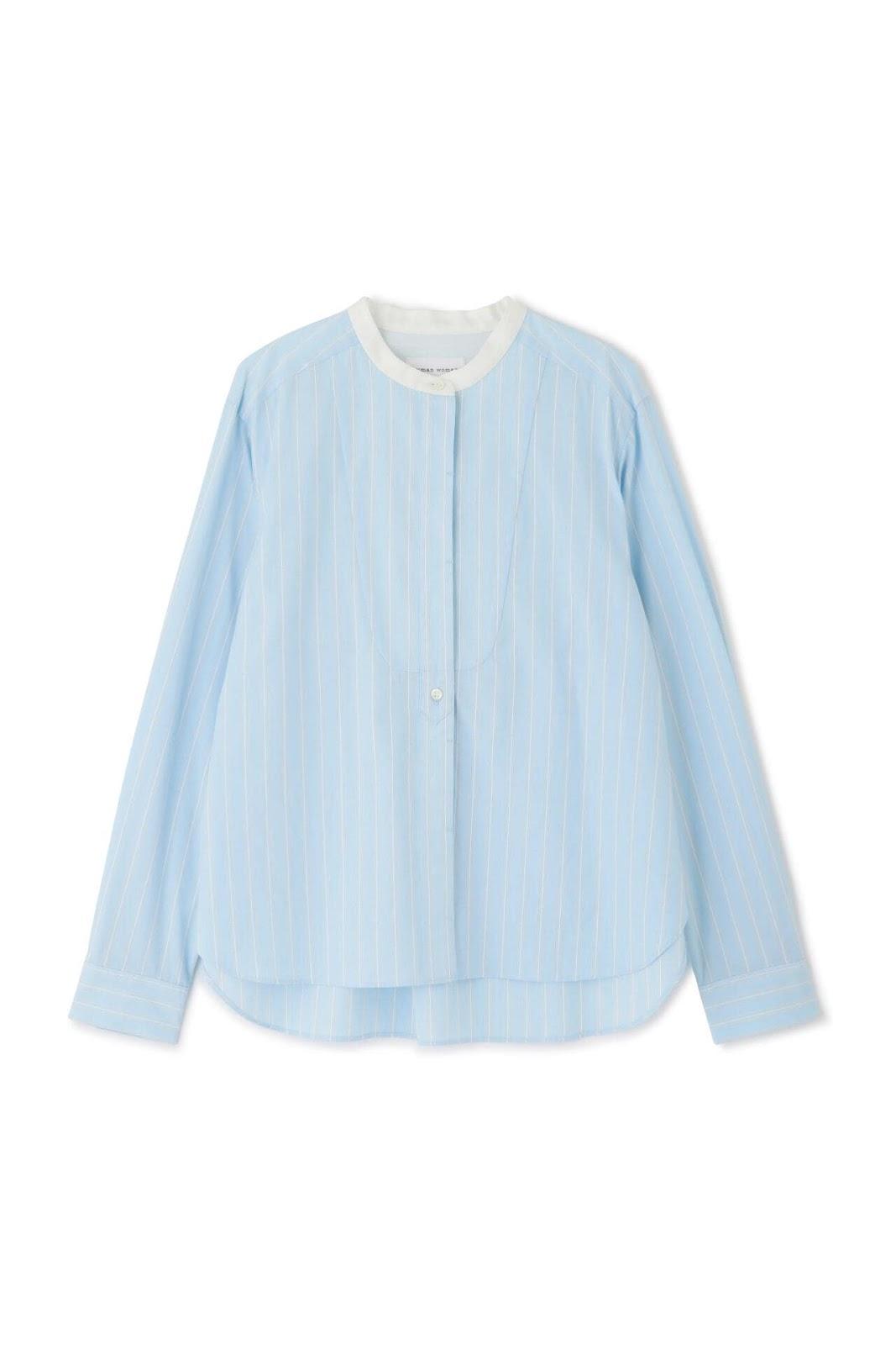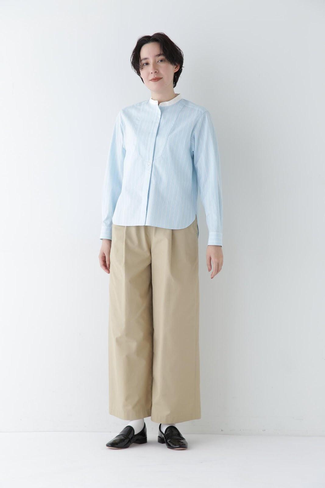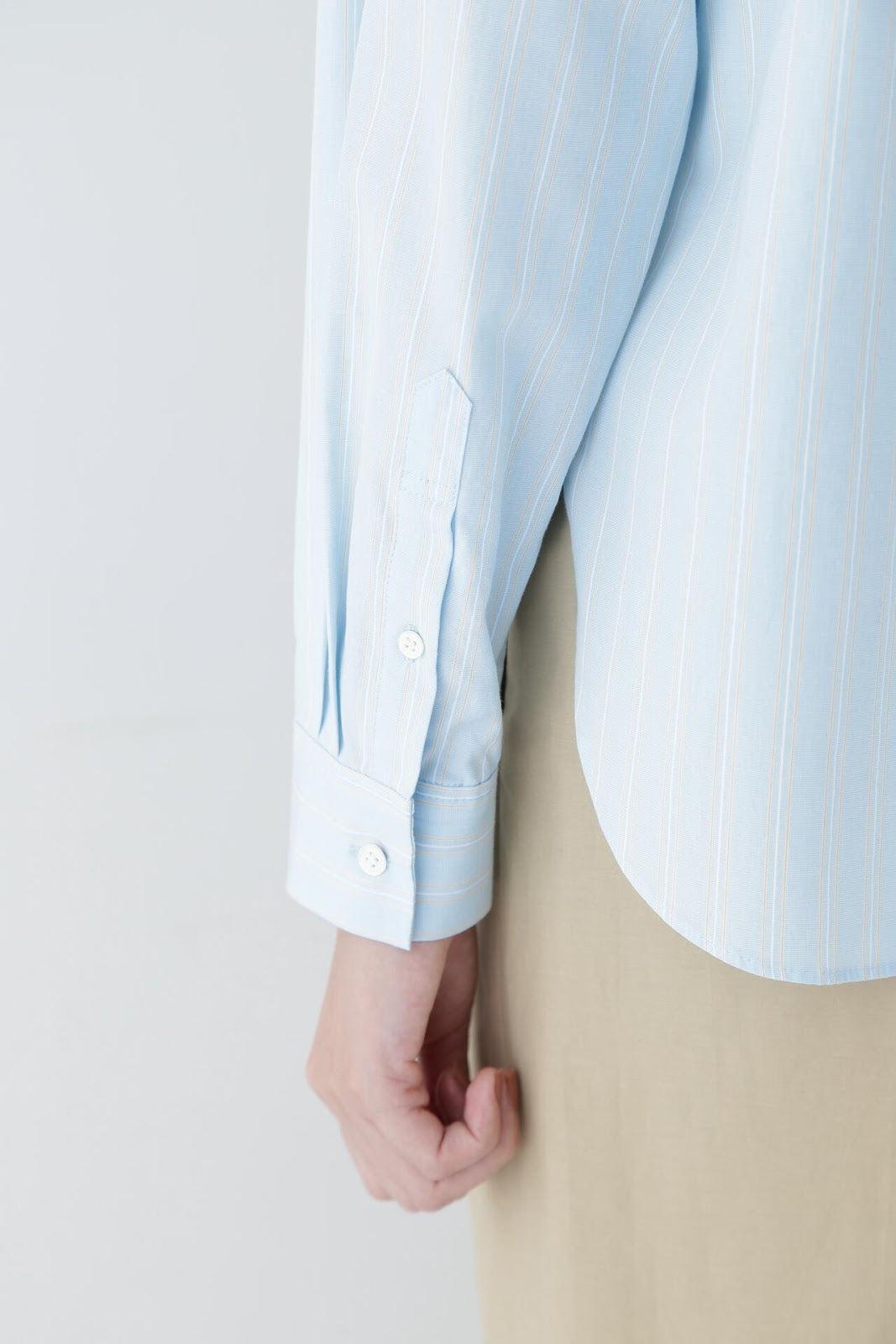 帶有醒目清新條紋圖案的教士襯衫 [設計特色] 這是一件教士型帶領襯衫,領子是潔白的。襯衫採用完全開放式的翼形剪裁。襯衫採用原棉多臂條紋面料,並採用當季流行色。這款襯衫非常適合日常穿著和休閒辦公。該款襯衫可與多種下裝搭配,盡顯女性魅力。