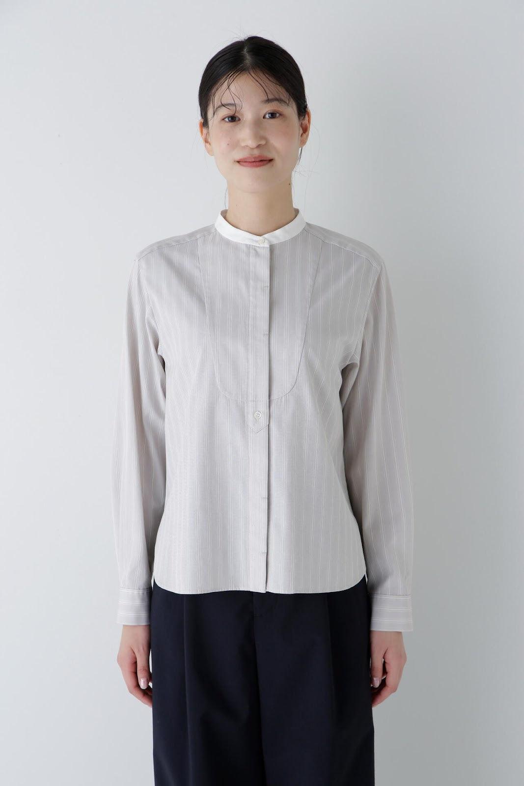 棉質窄條紋領巾襯衫