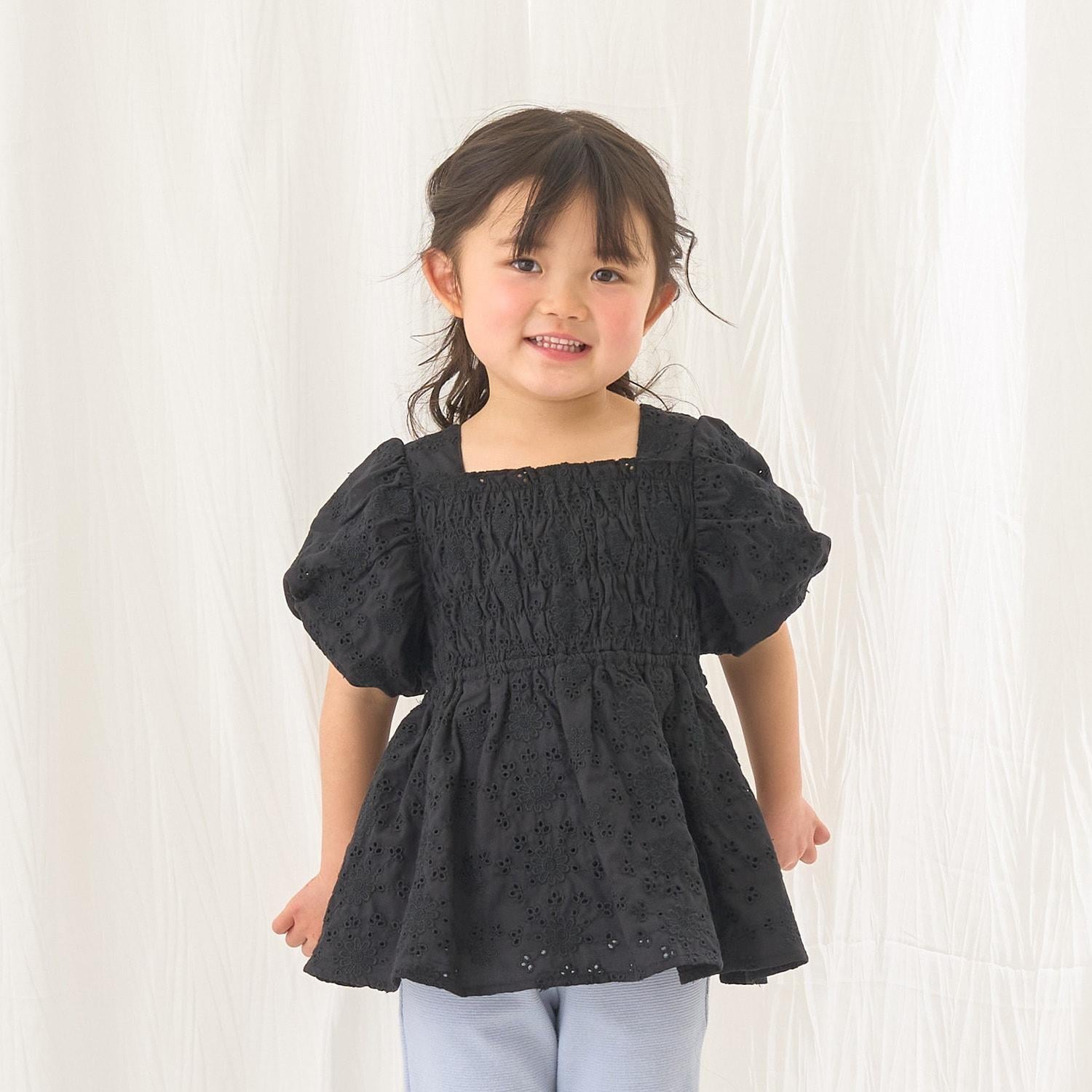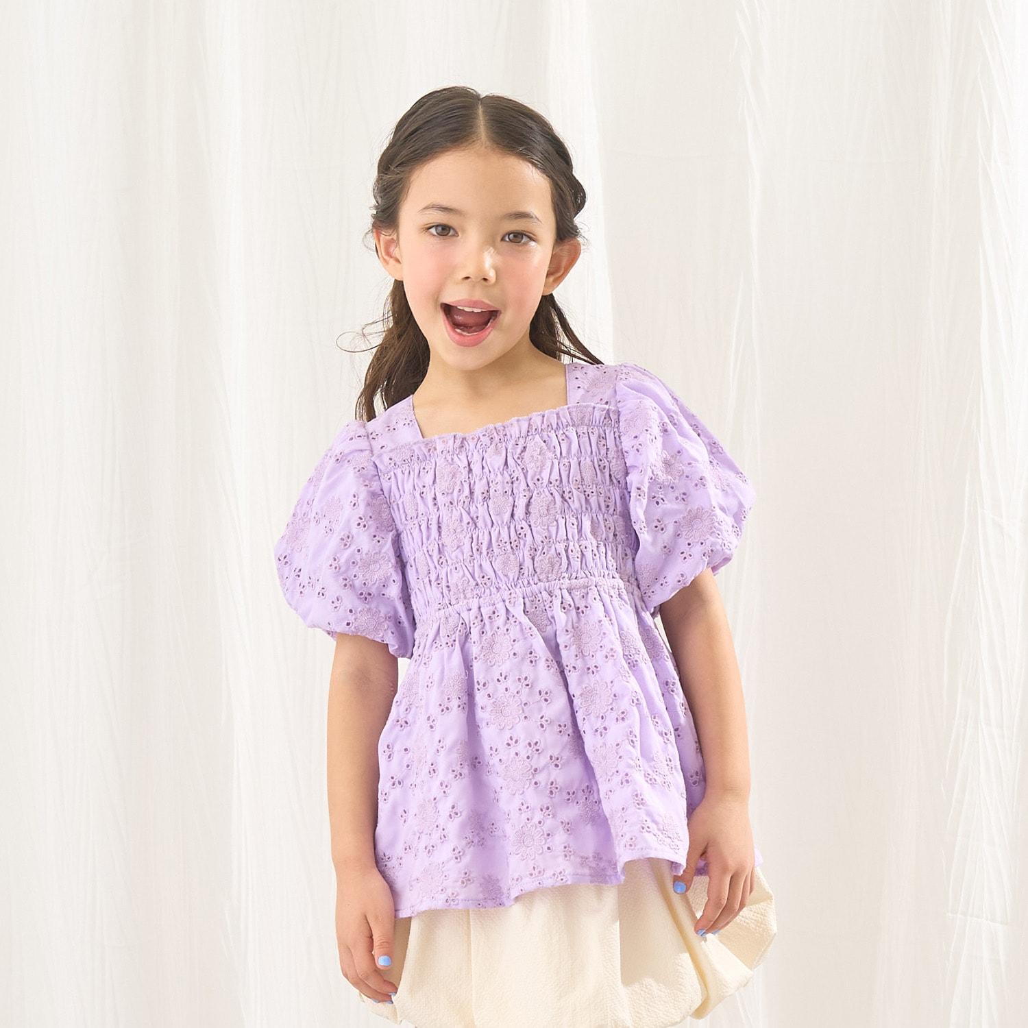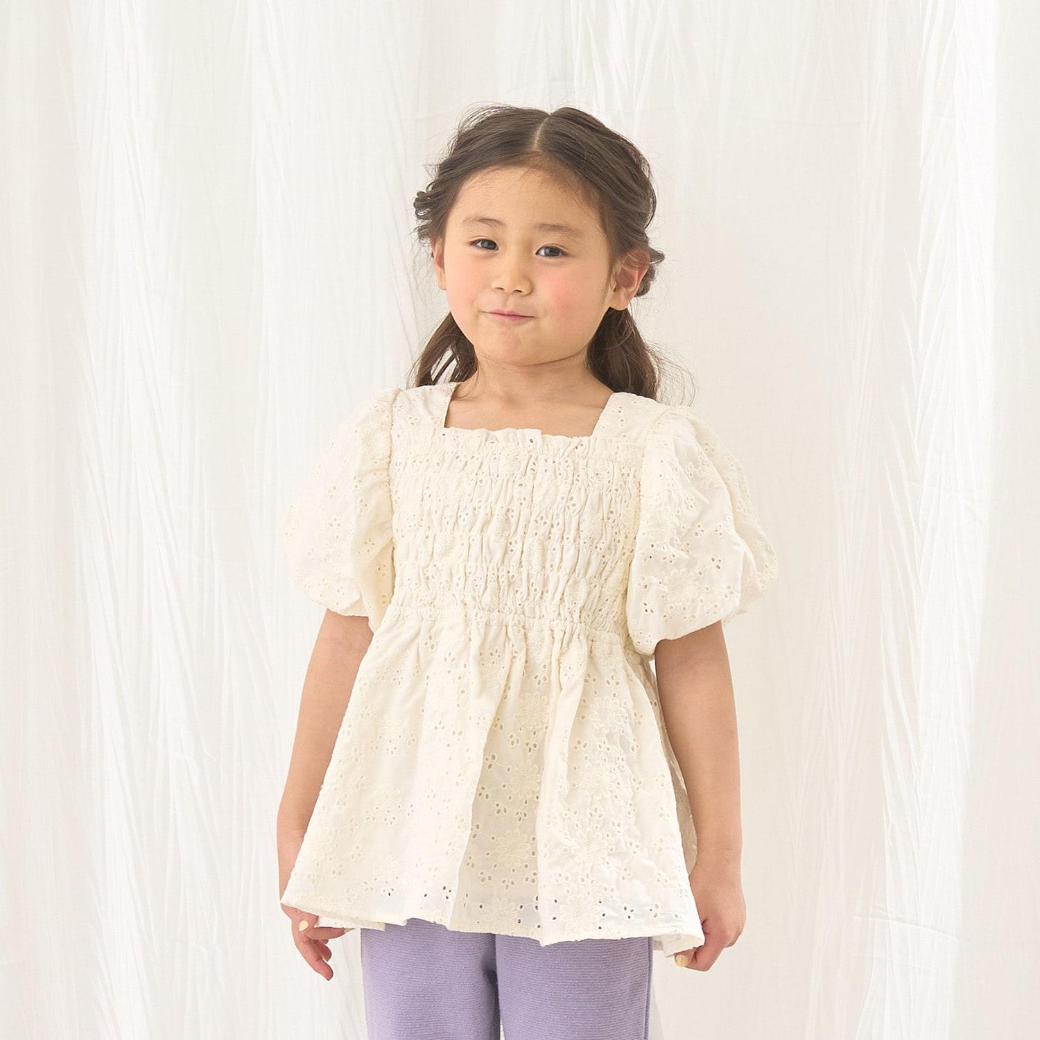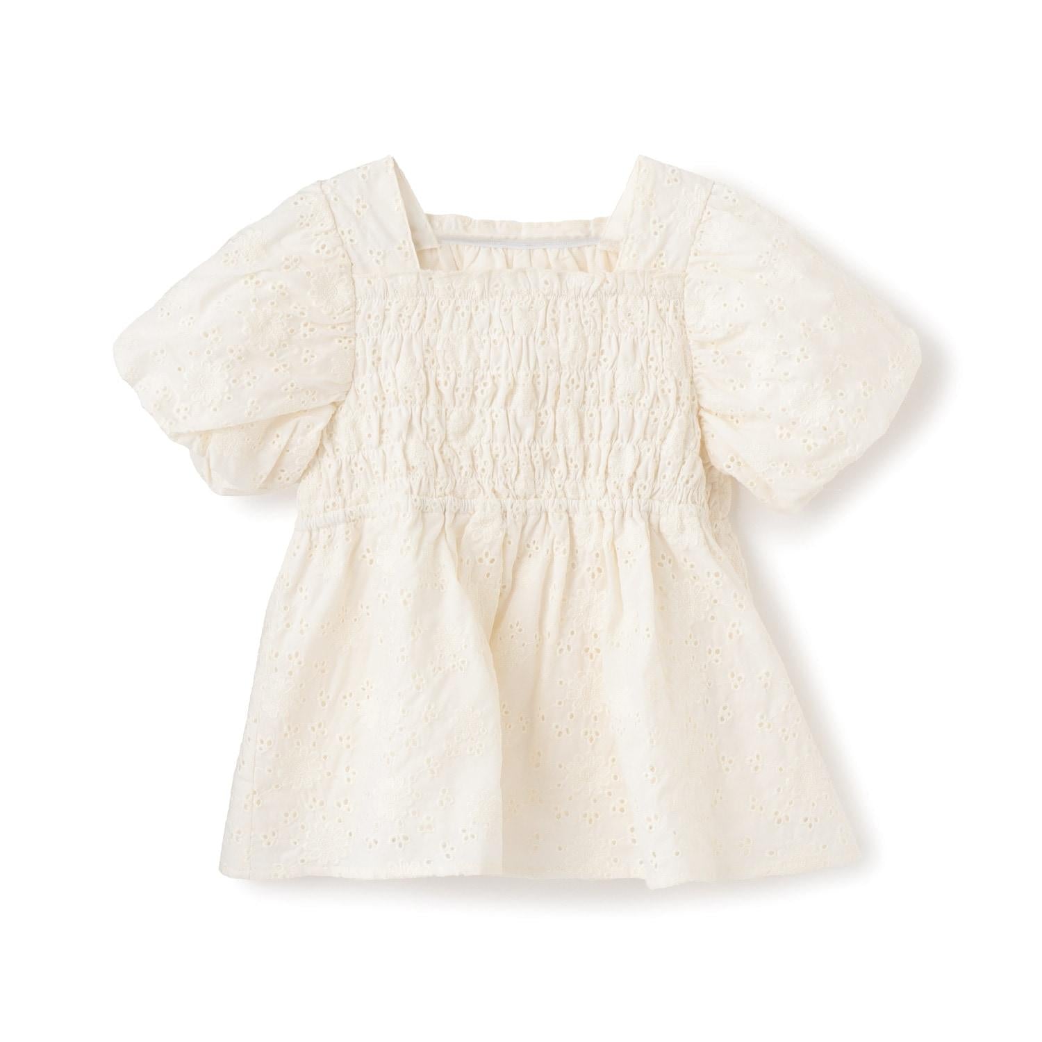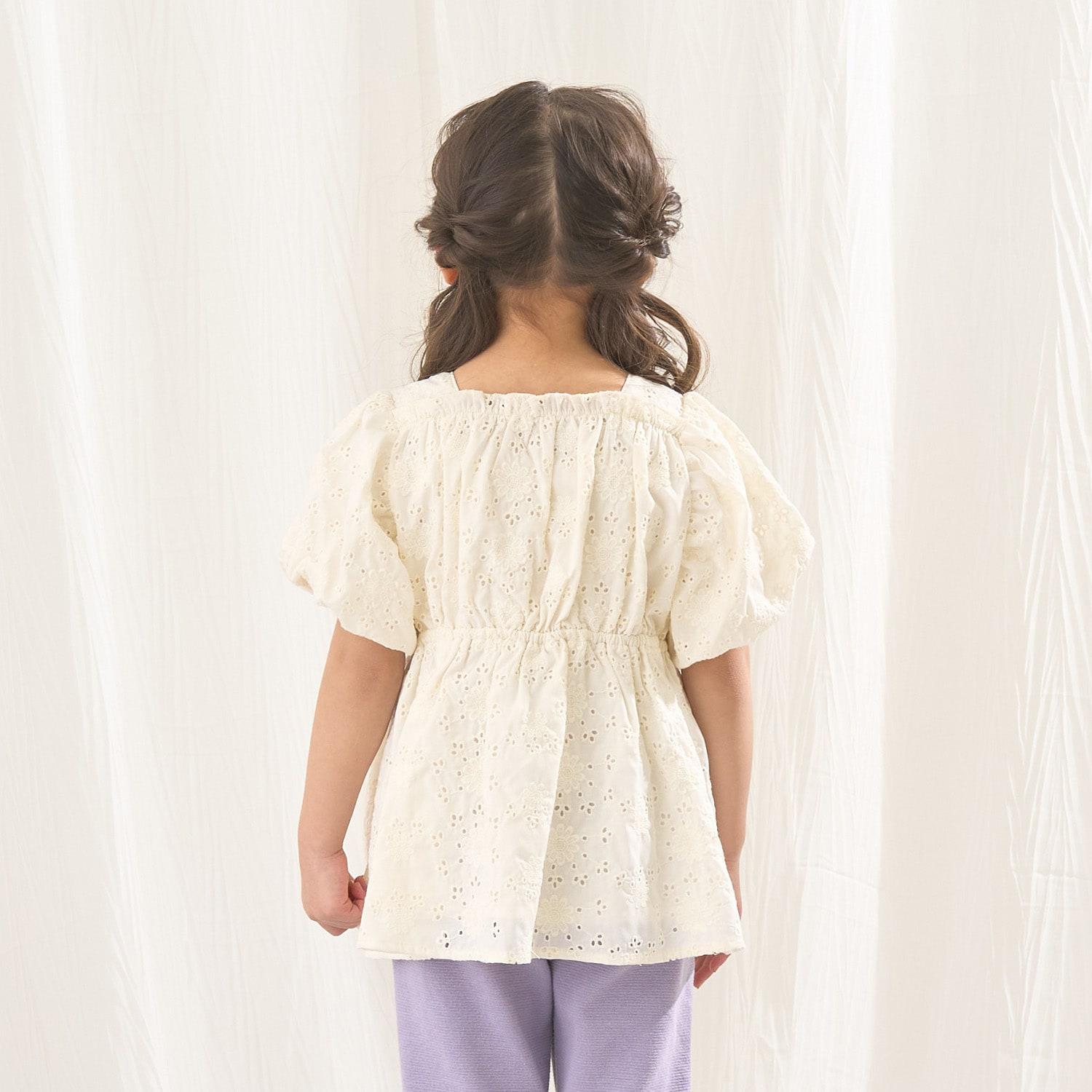 採用棉質眼線蕾絲的蓬蓬袖襯衫。