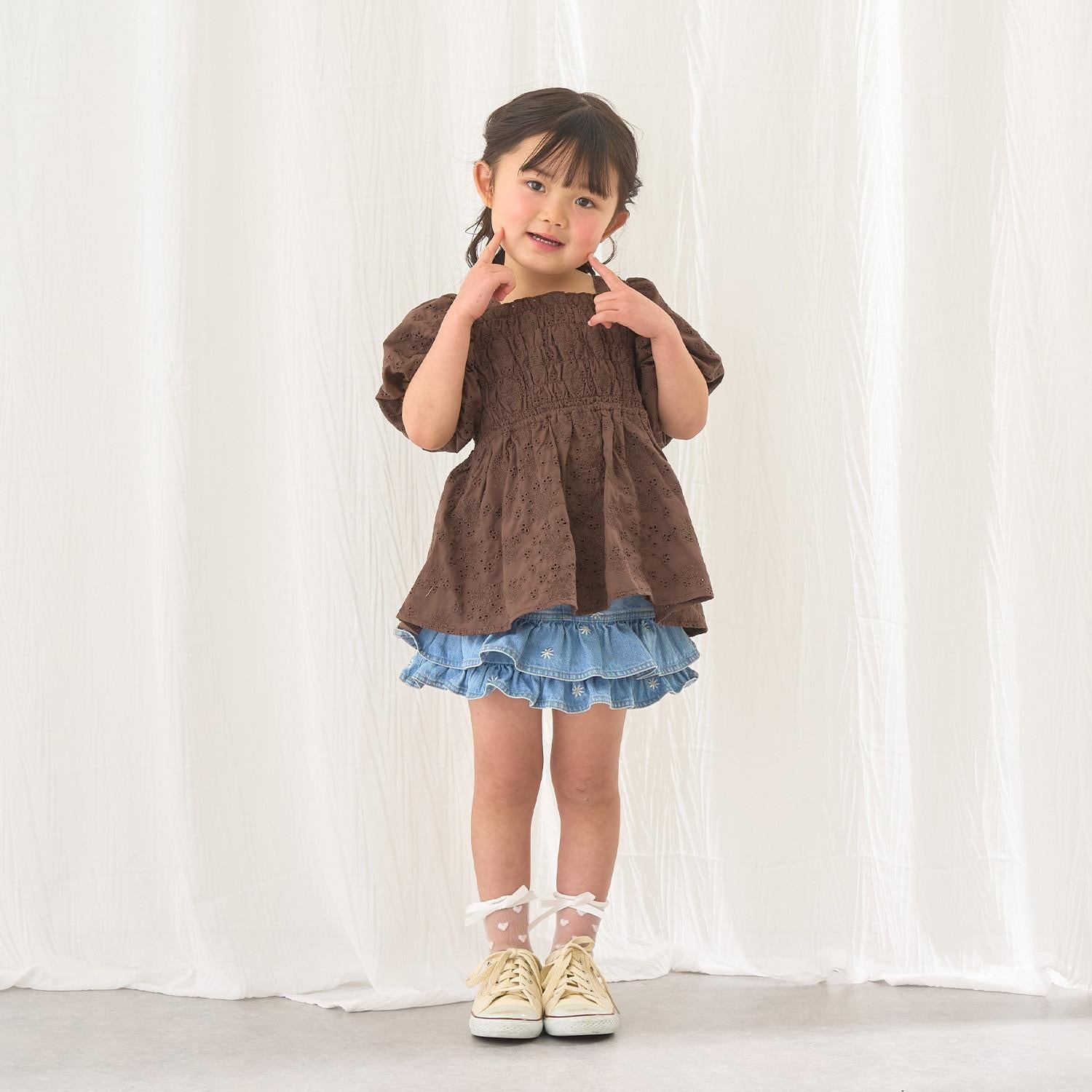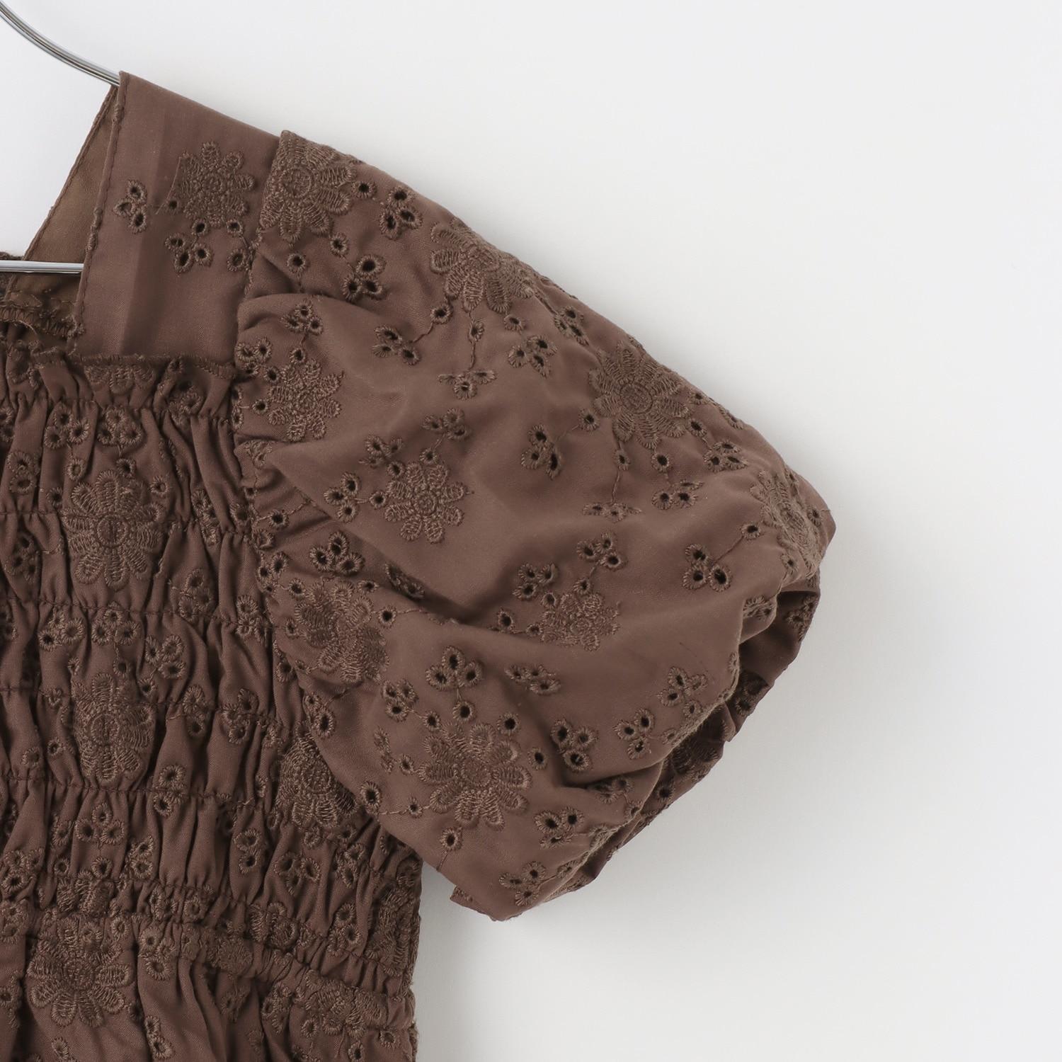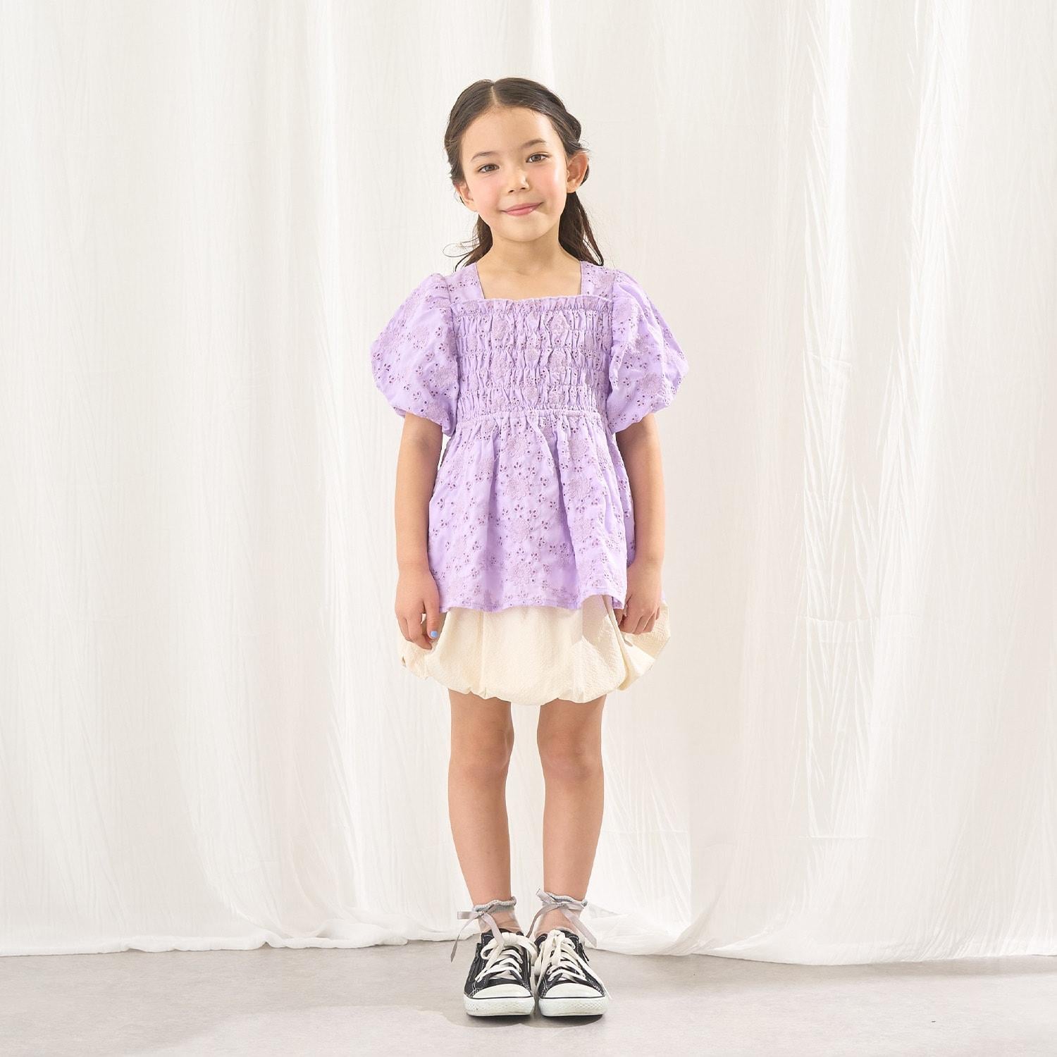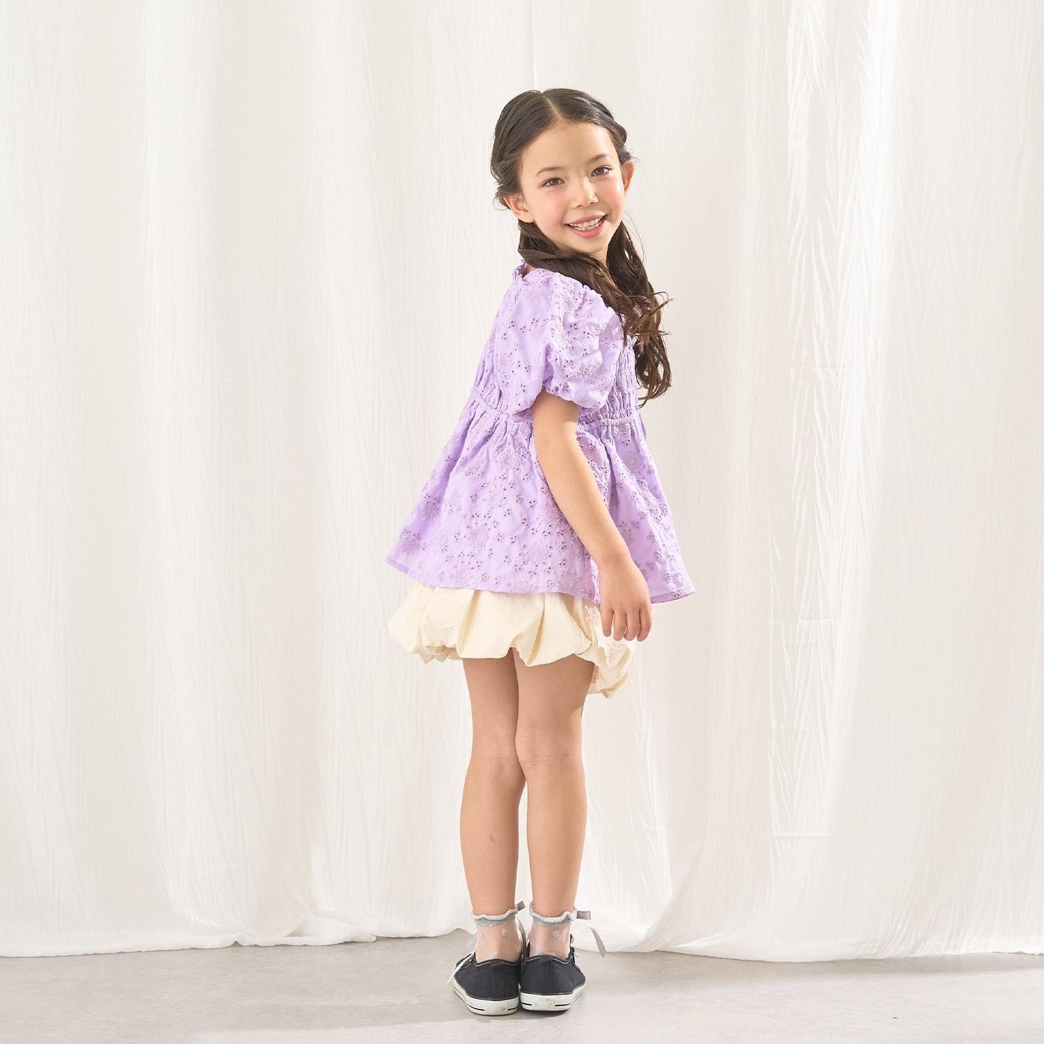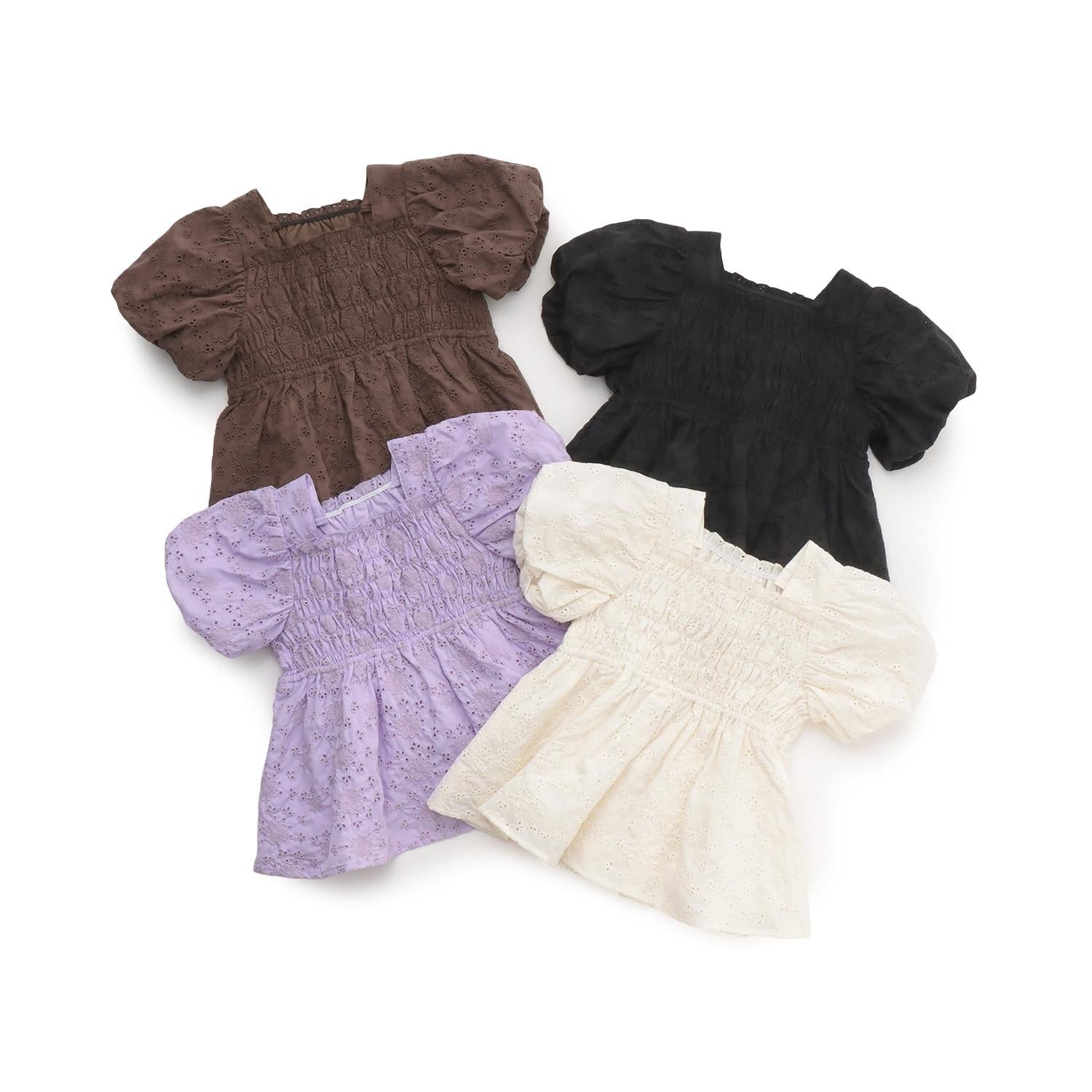 採用棉質眼線蕾絲的蓬蓬袖襯衫。