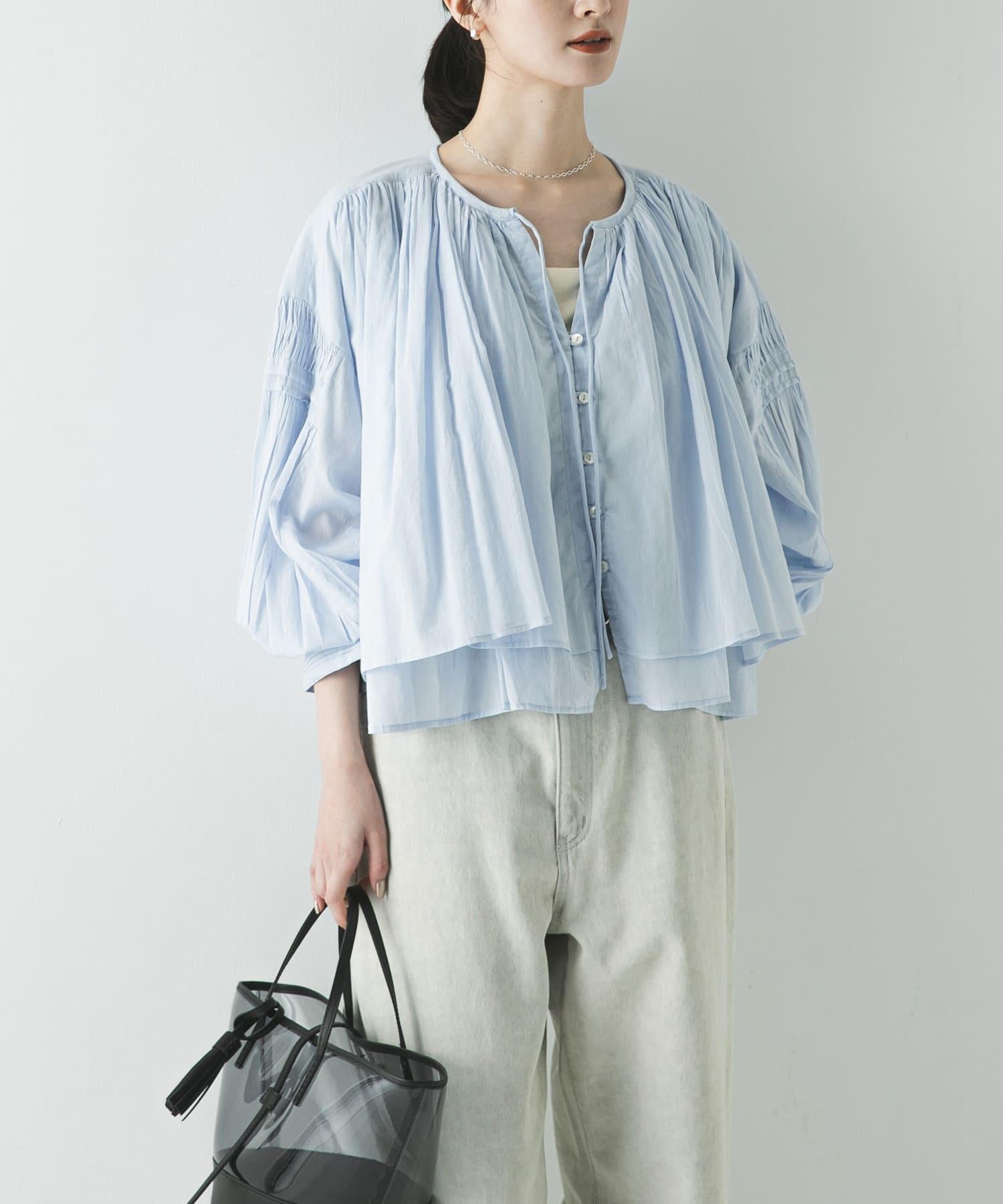這款上衣由印度棉薄紗製成,質地輕盈柔軟。