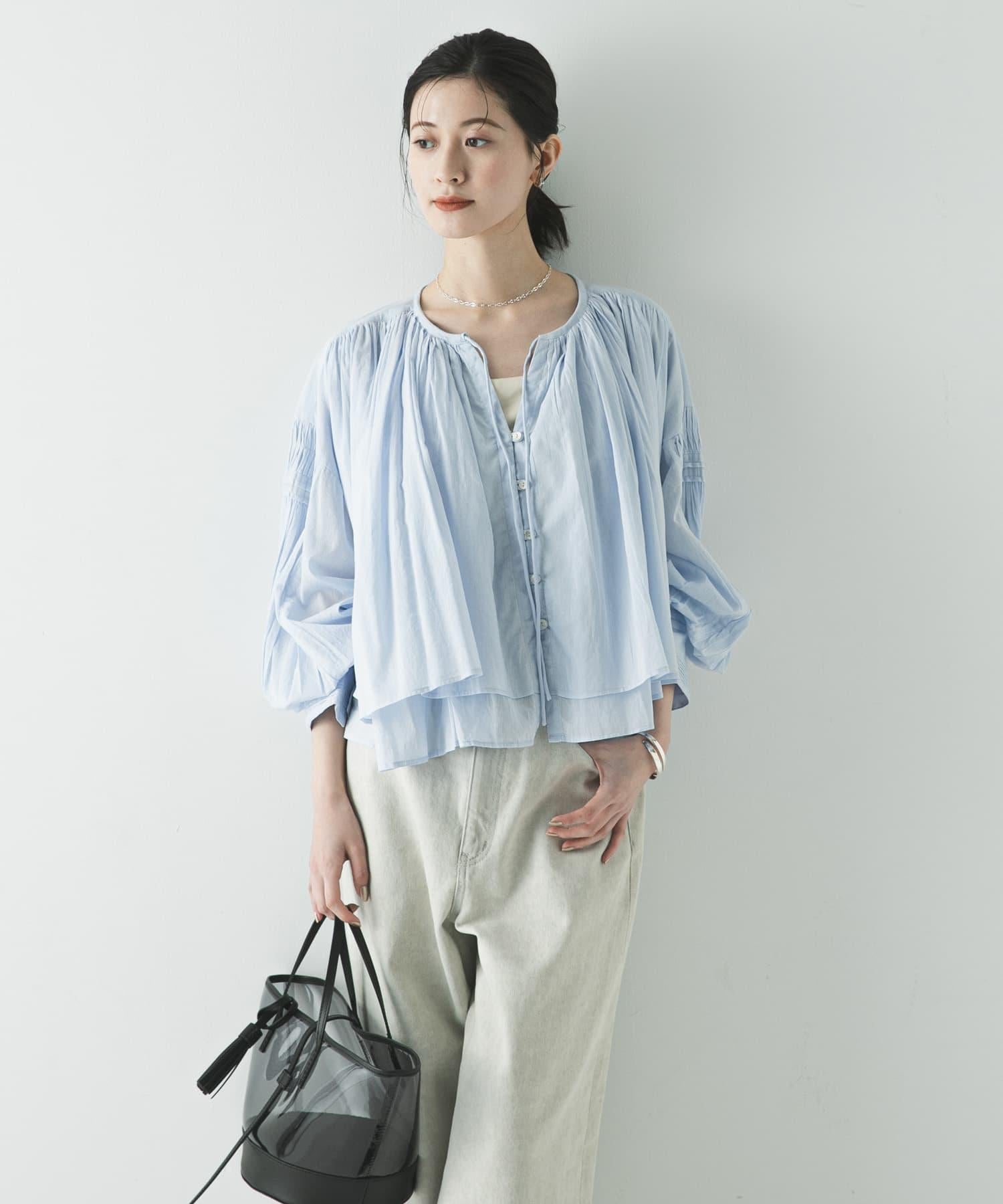 雙層衣身減少了薄面料特有的透明感,同時提供了柔軟蓬鬆的穿著體驗,無需擔心內衣的問題。