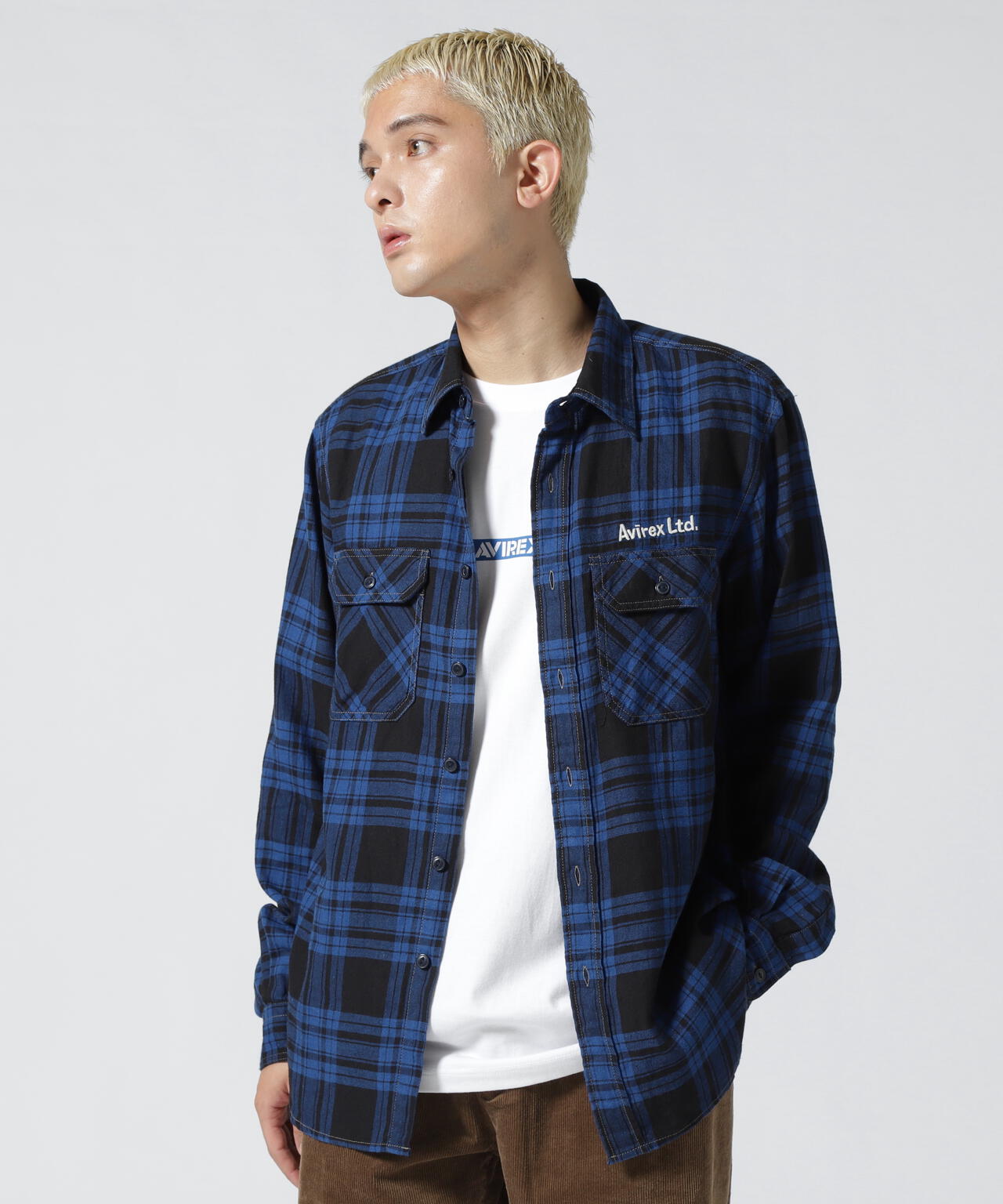 AVIREX 採用棉麻混合紗線,獨創格紋圖案的工作襯衫款式。