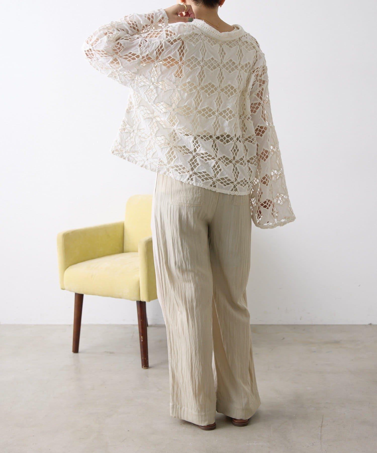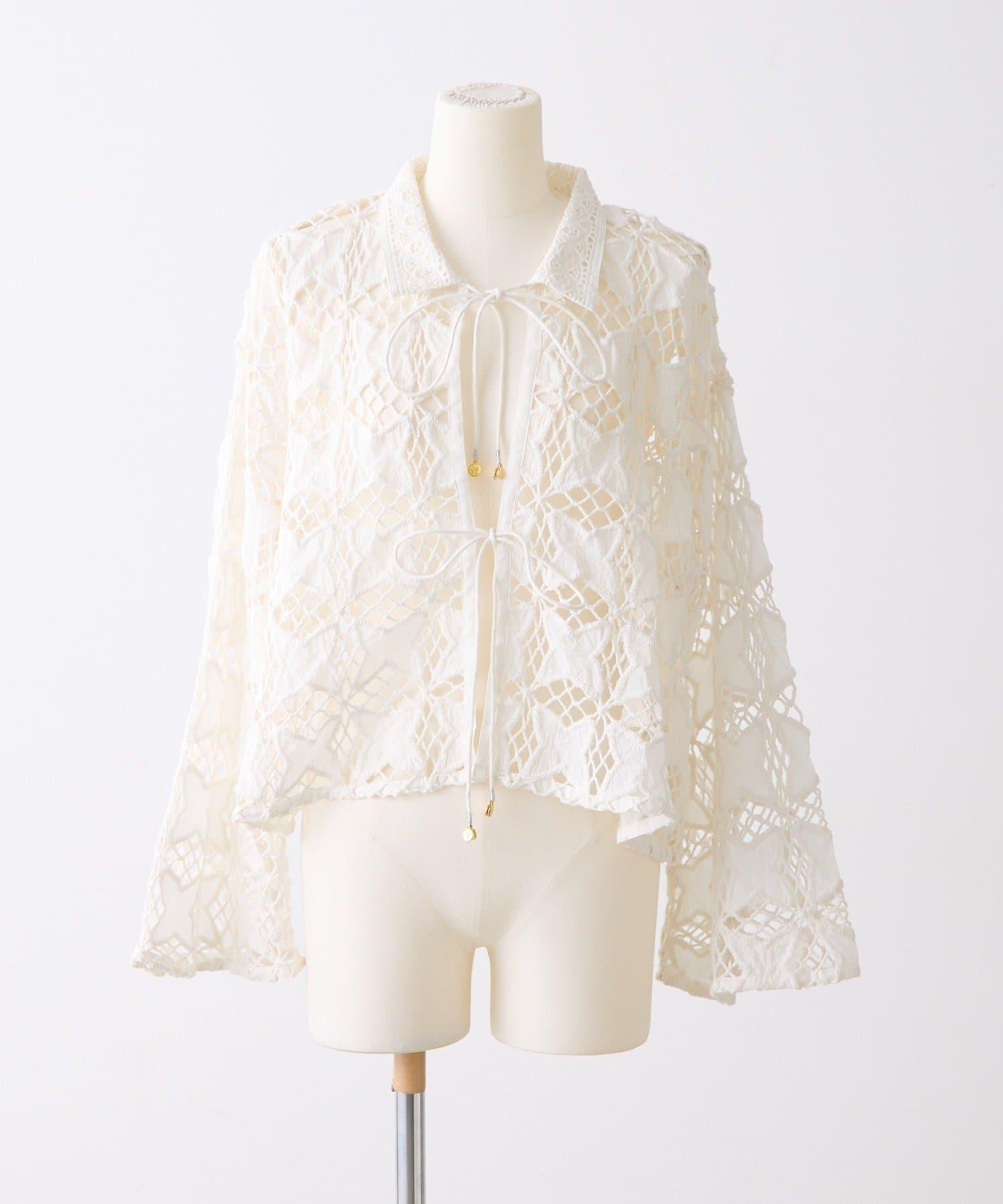 棉100% 透膚吸溼 蕾絲襯衫開衫 SUM1 STYLE(スミスタイル)