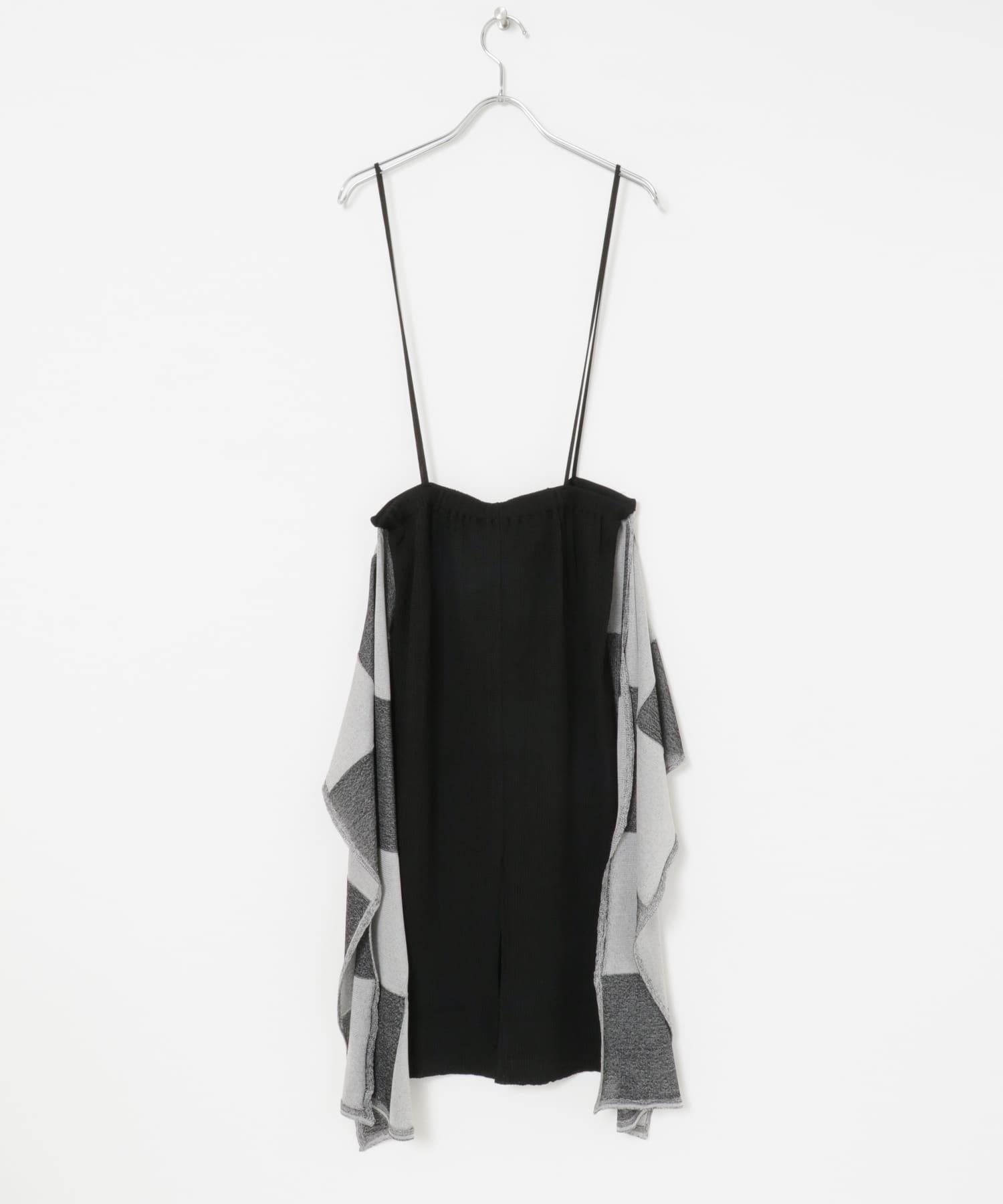 裸色連衣裙配有一體式圍巾和羅紋裙襬,可與圍巾搭配出多種穿法。