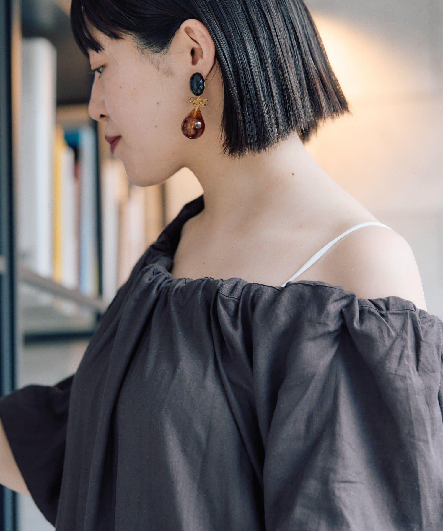棕色樹脂水滴耳環,帶有美麗的玳瑁紋大理石效果。