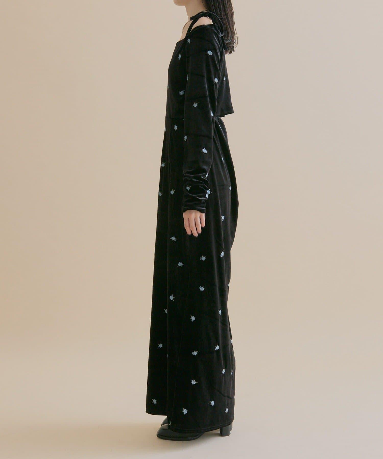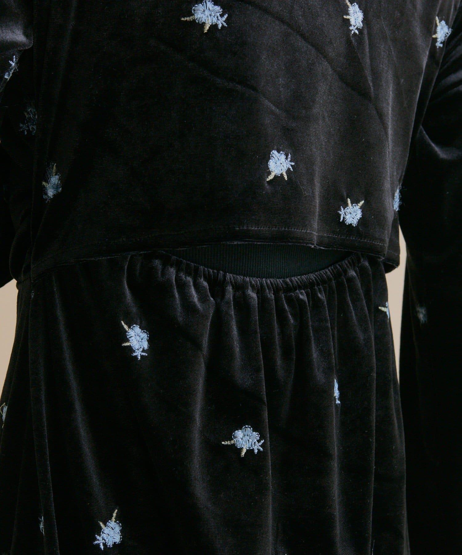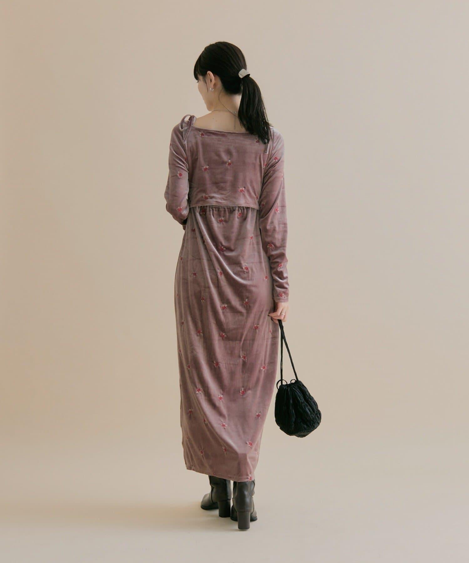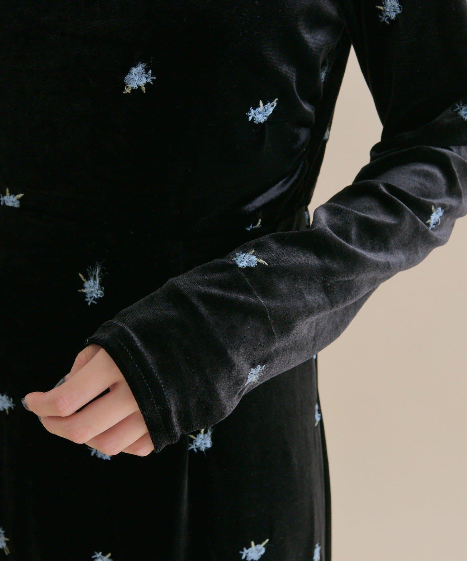 【森川企畫】花卉圖案天鵝絨連衣裙