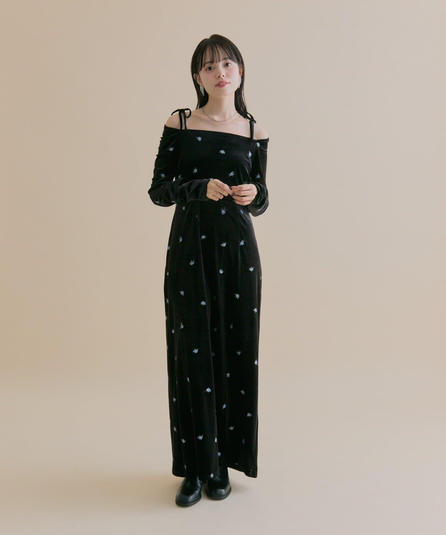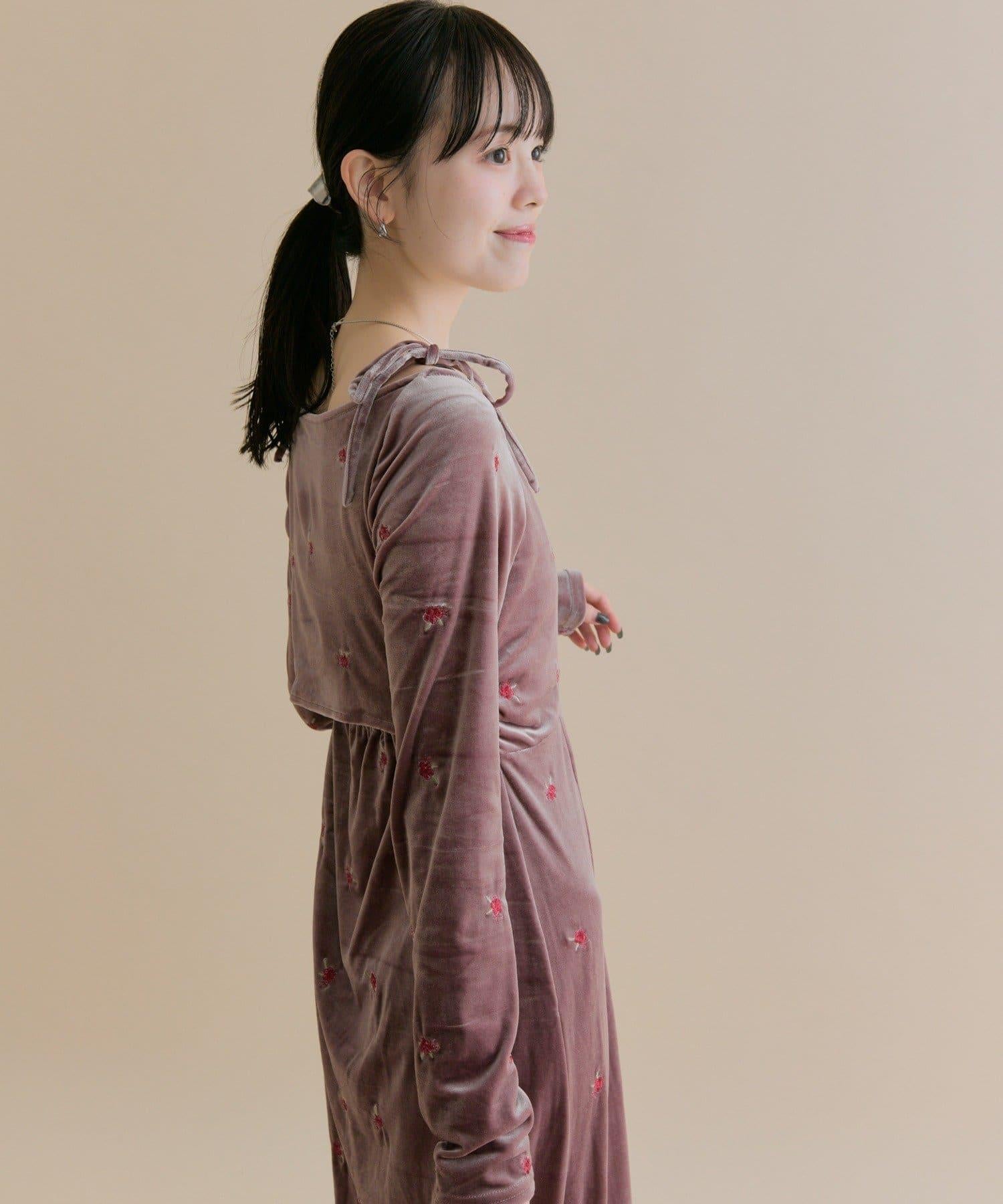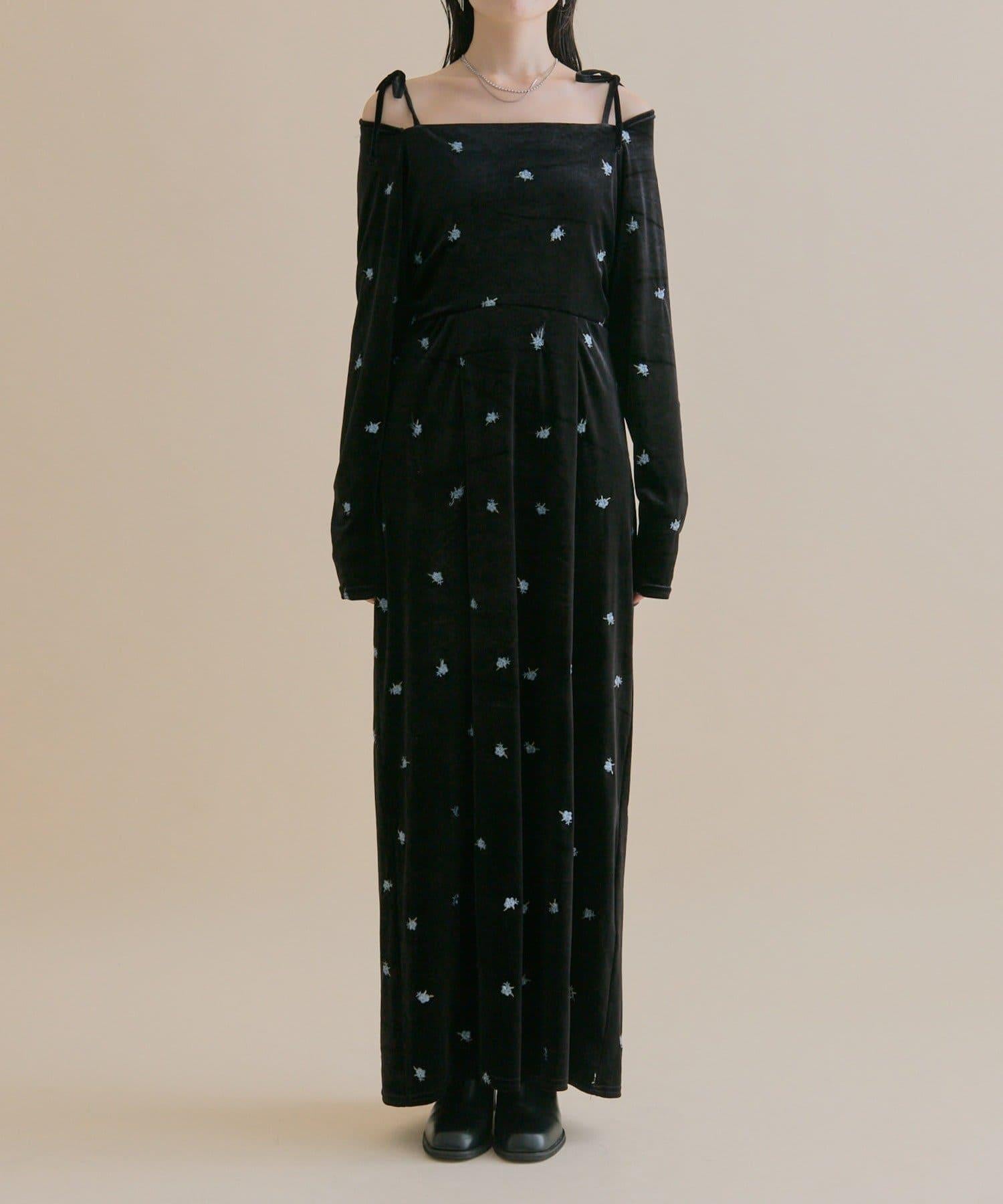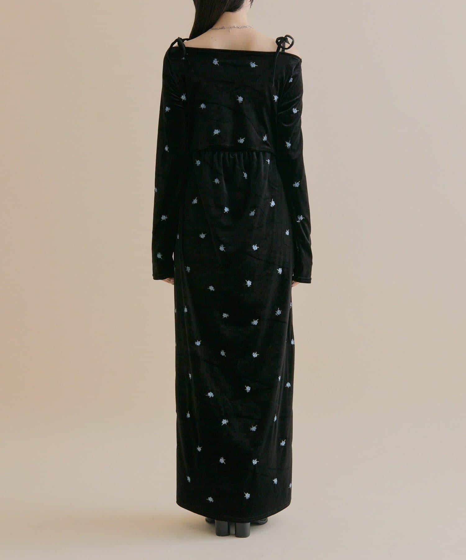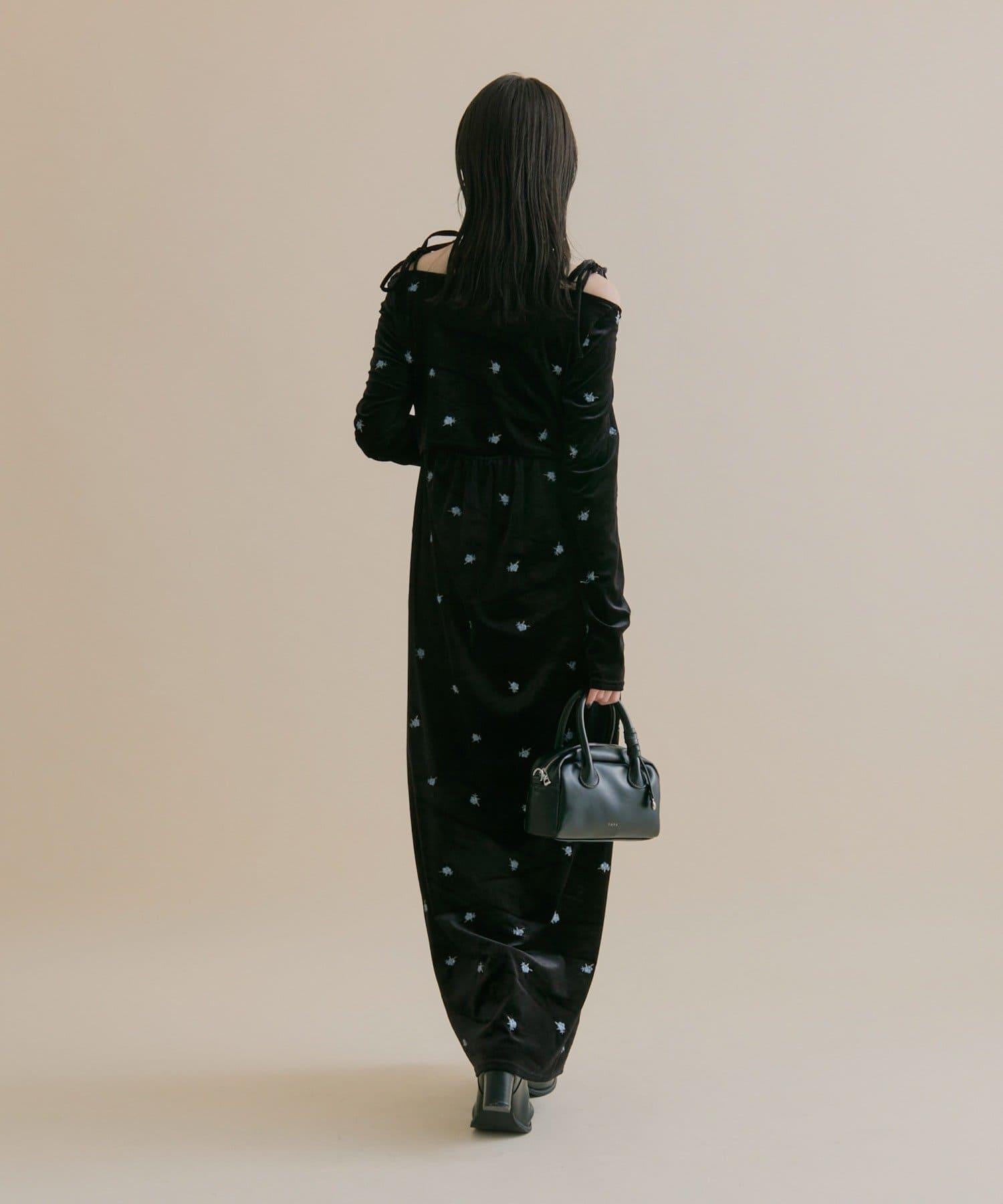 【森川企畫】花卉圖案天鵝絨連衣裙