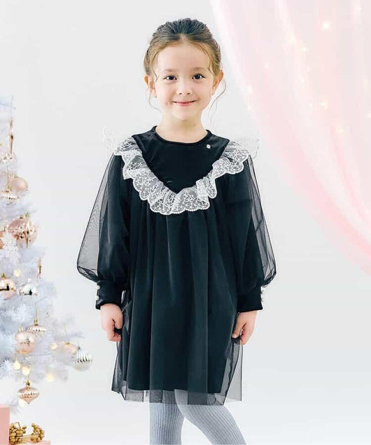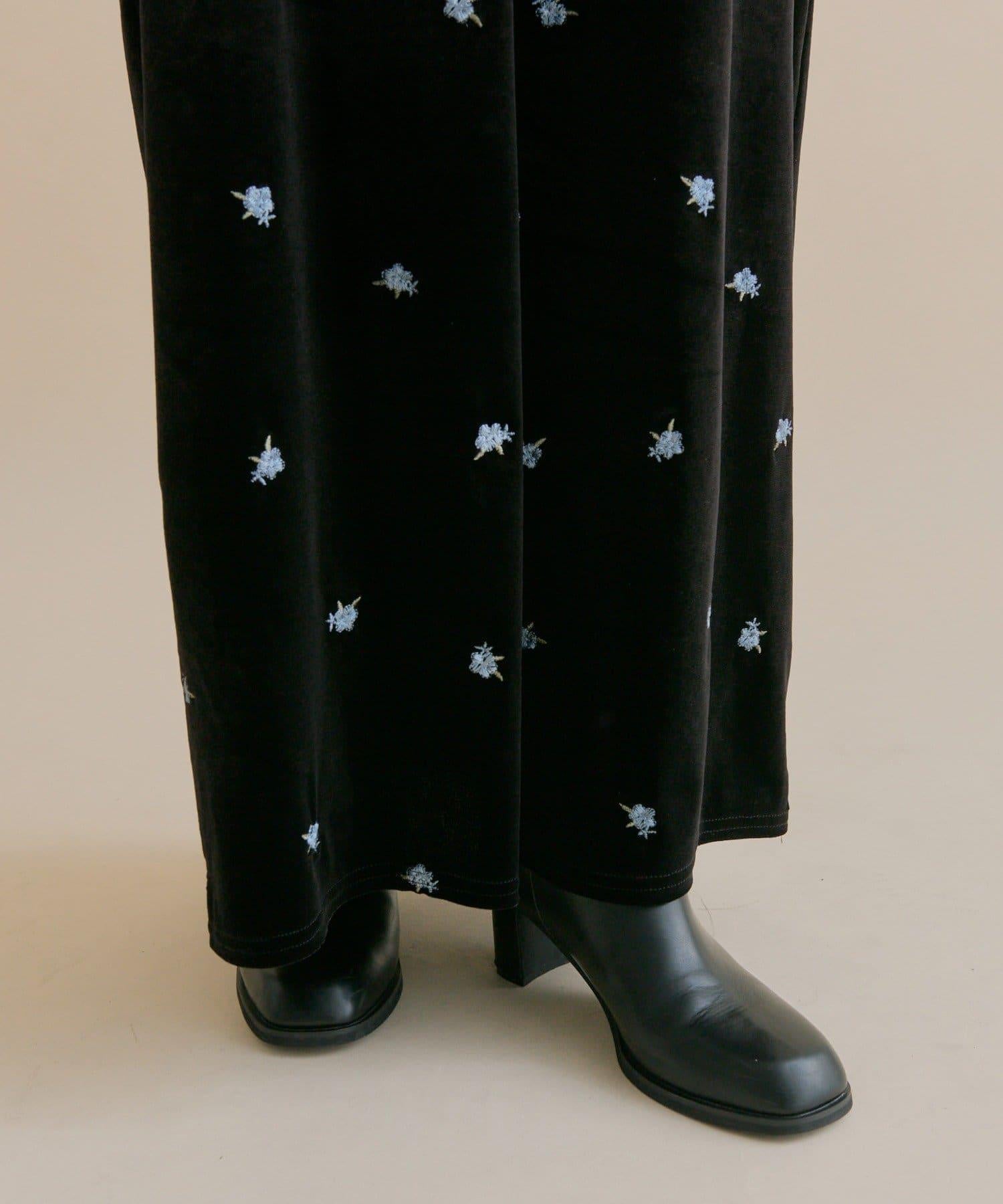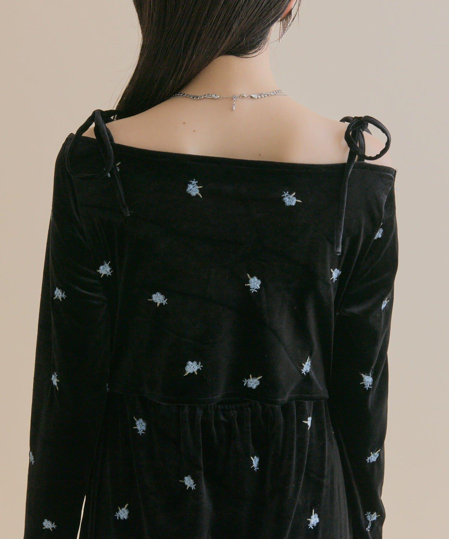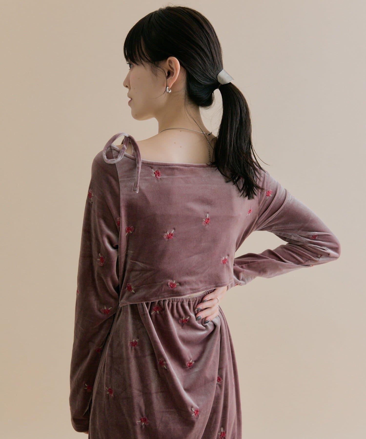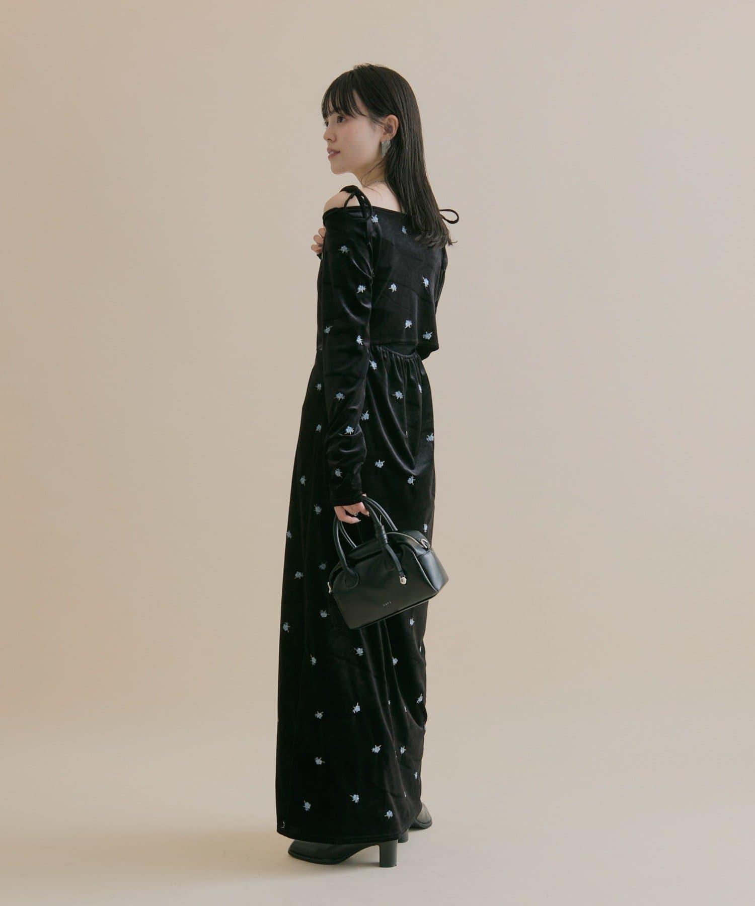 【森川企畫】花卉圖案天鵝絨連衣裙