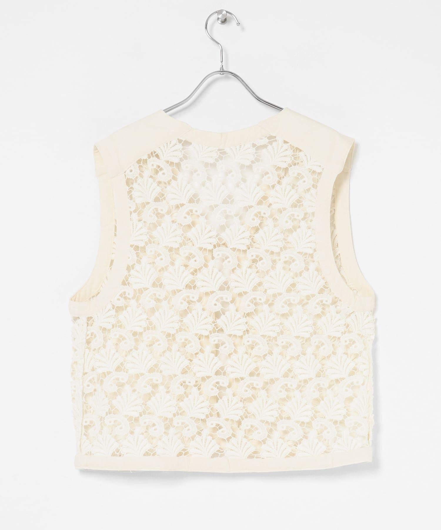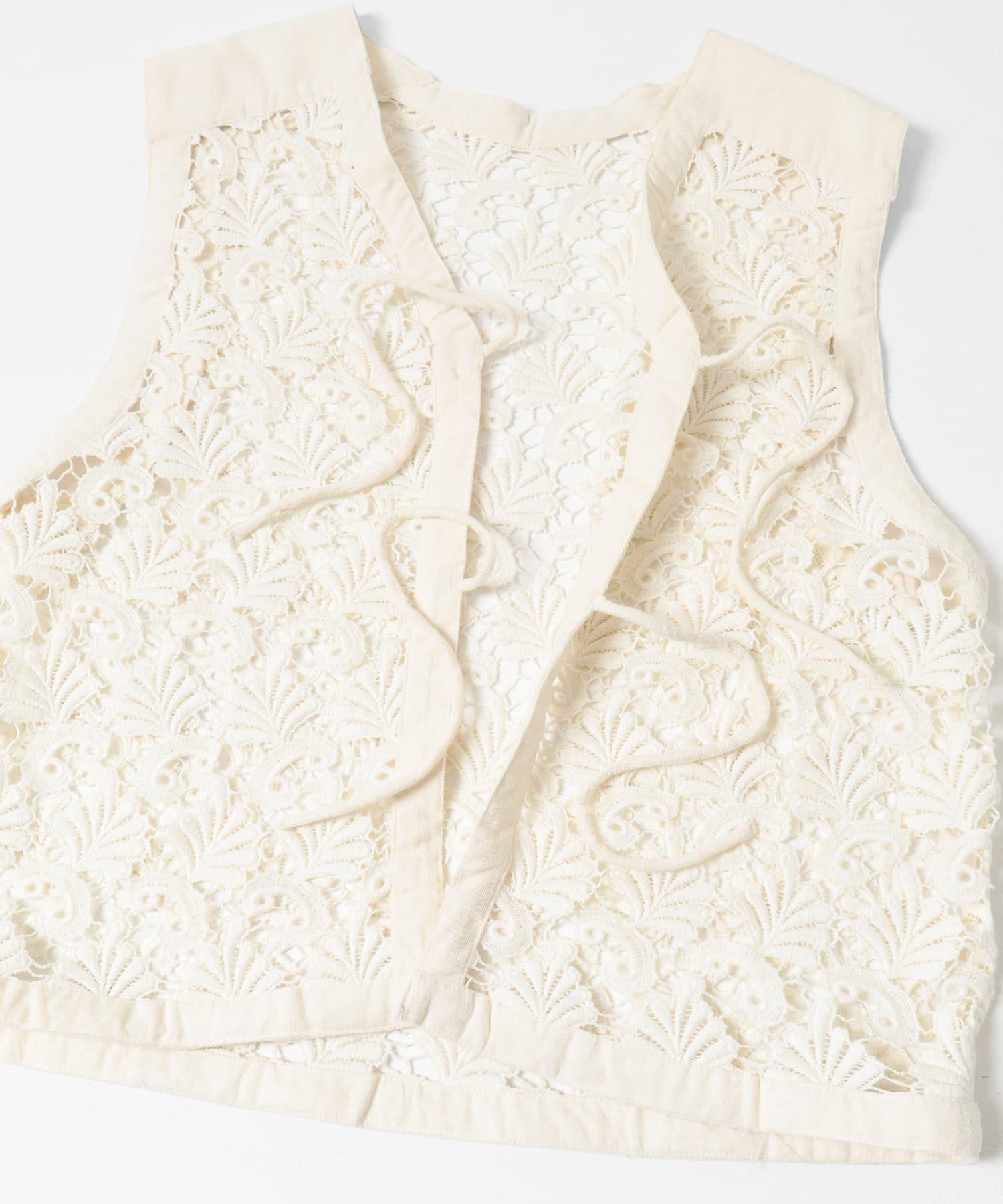 這款蕾絲馬甲採用寬鬆的植物圖案和純色面料,成人也能輕鬆駕馭。
