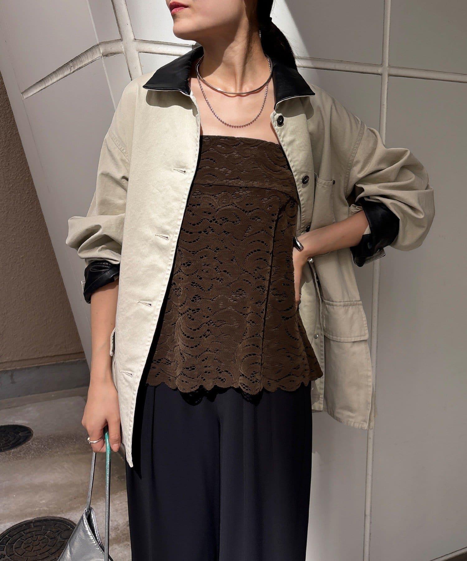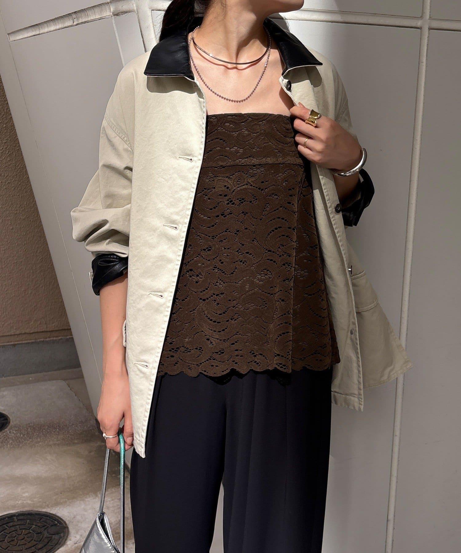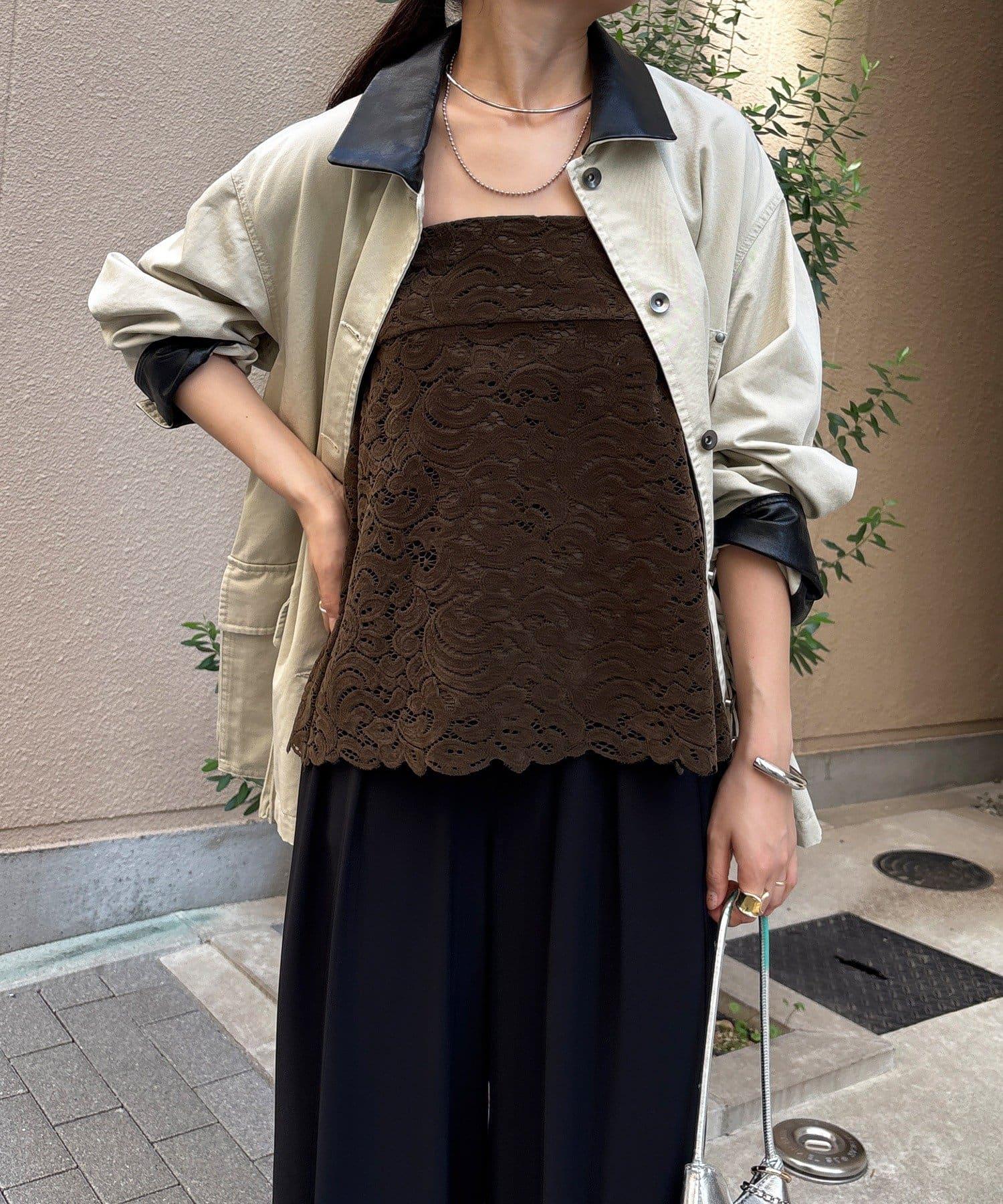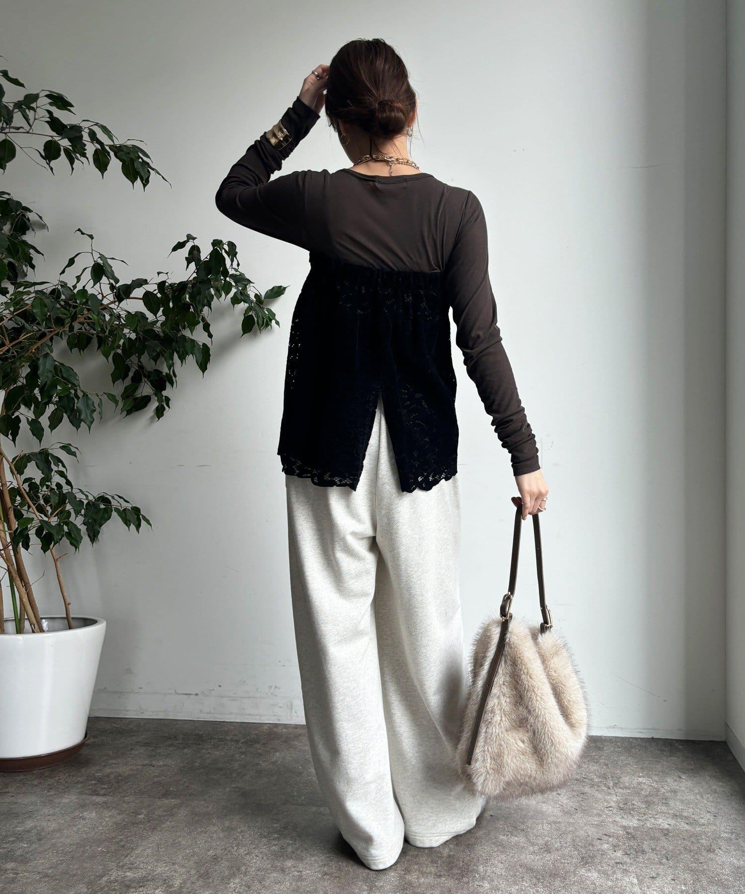 雖然是蕾絲,但植絨面料不會讓人覺得過於甜美,適合成人休閒風格。