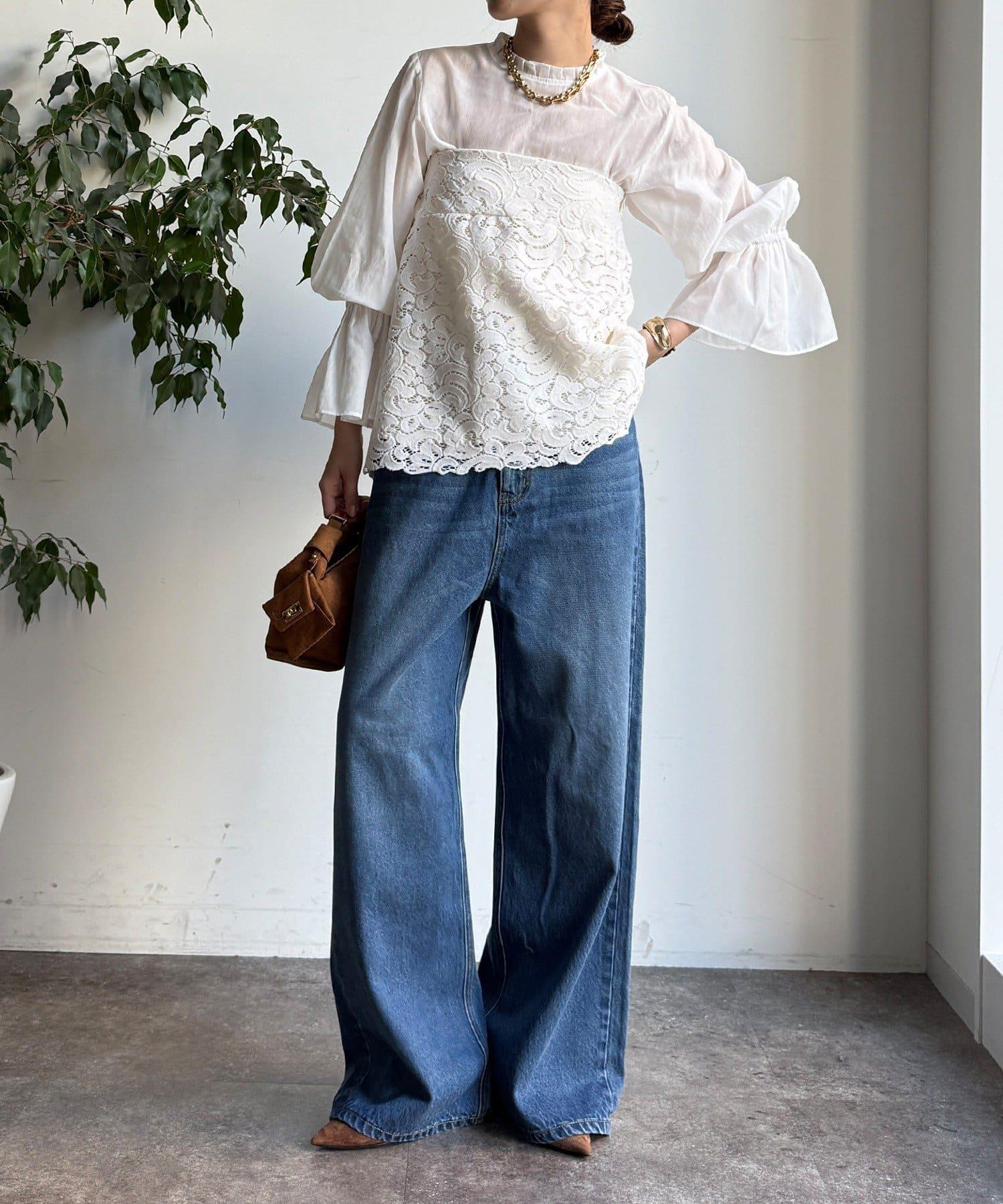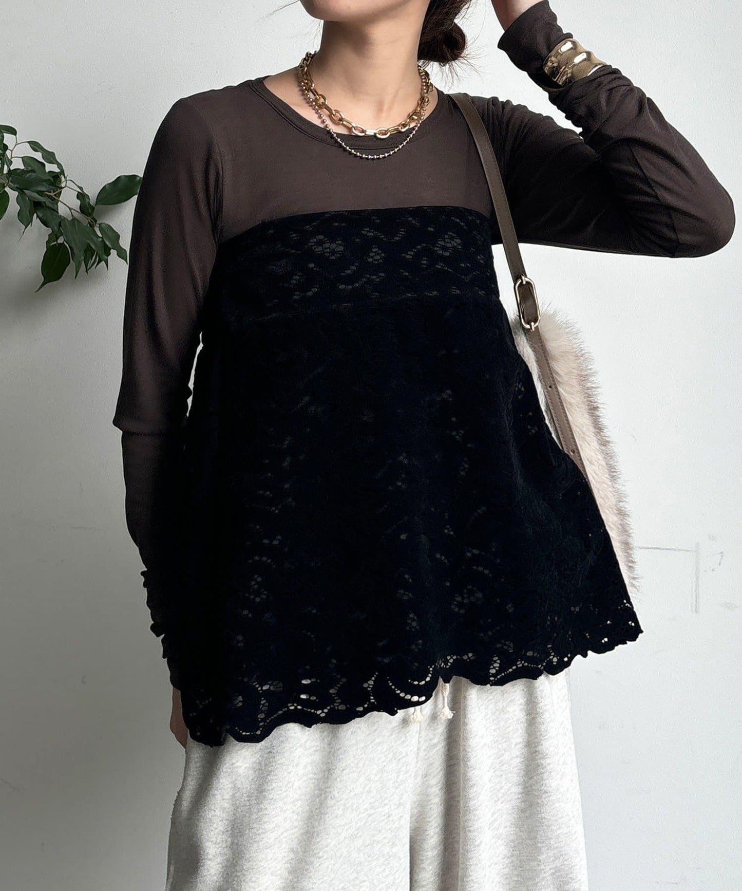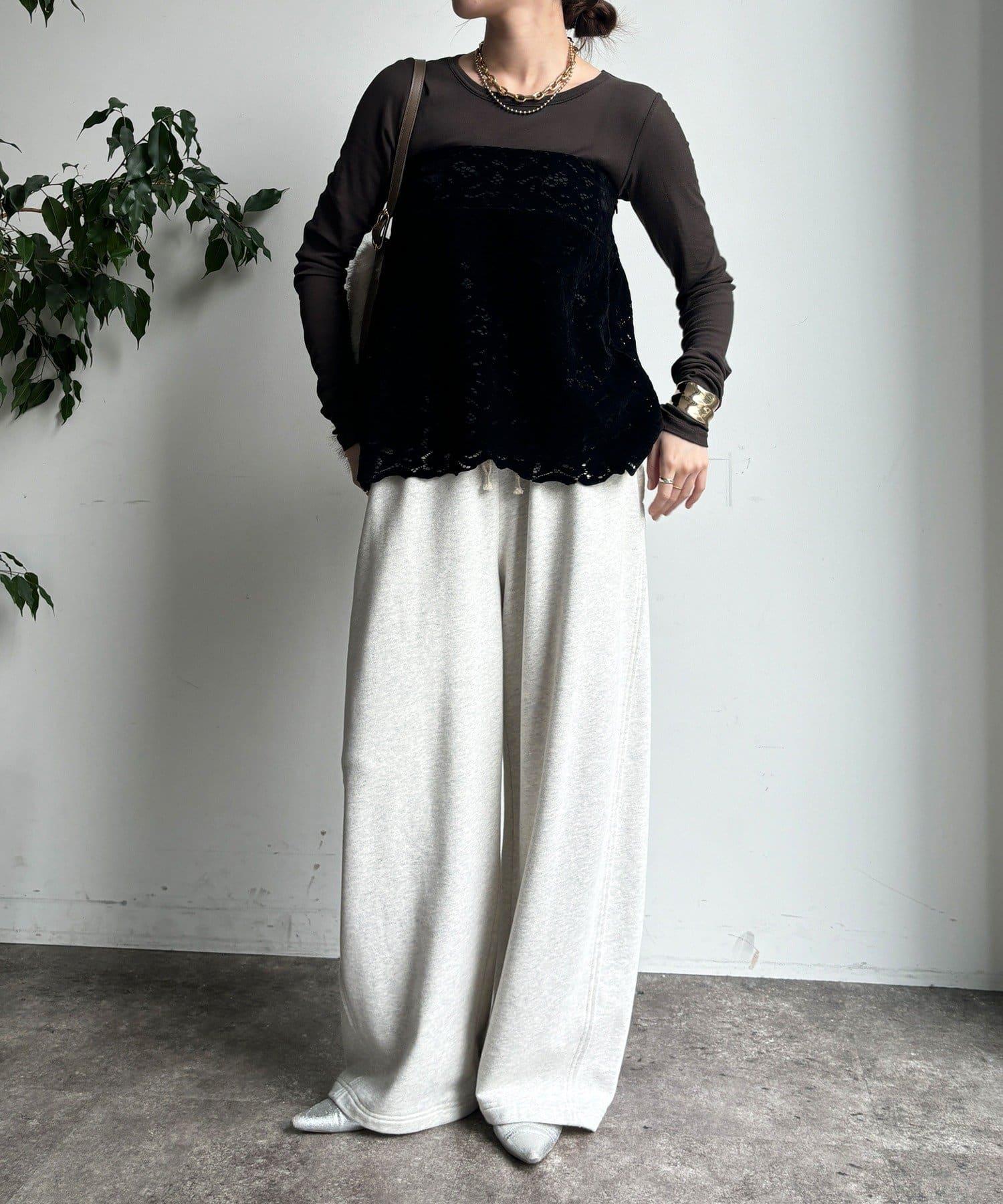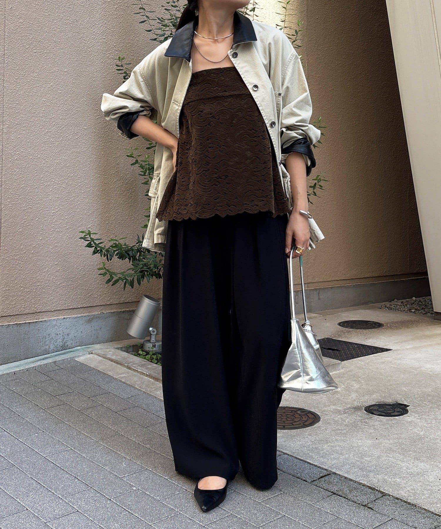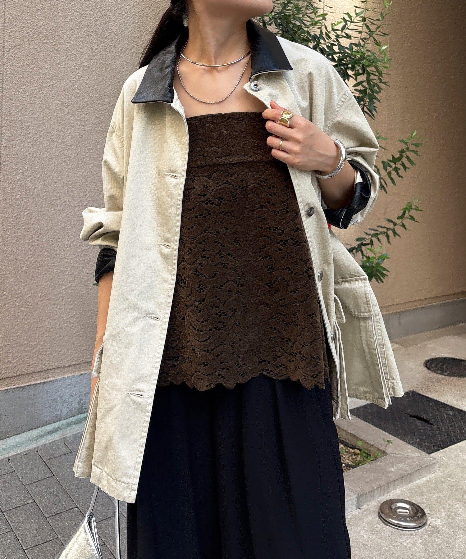 雖然是蕾絲,但植絨面料不會讓人覺得過於甜美,適合成人休閒風格。