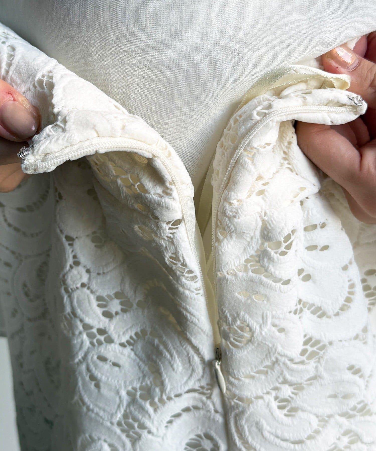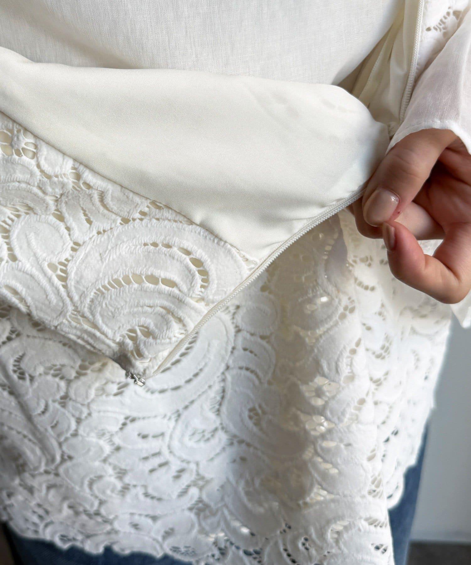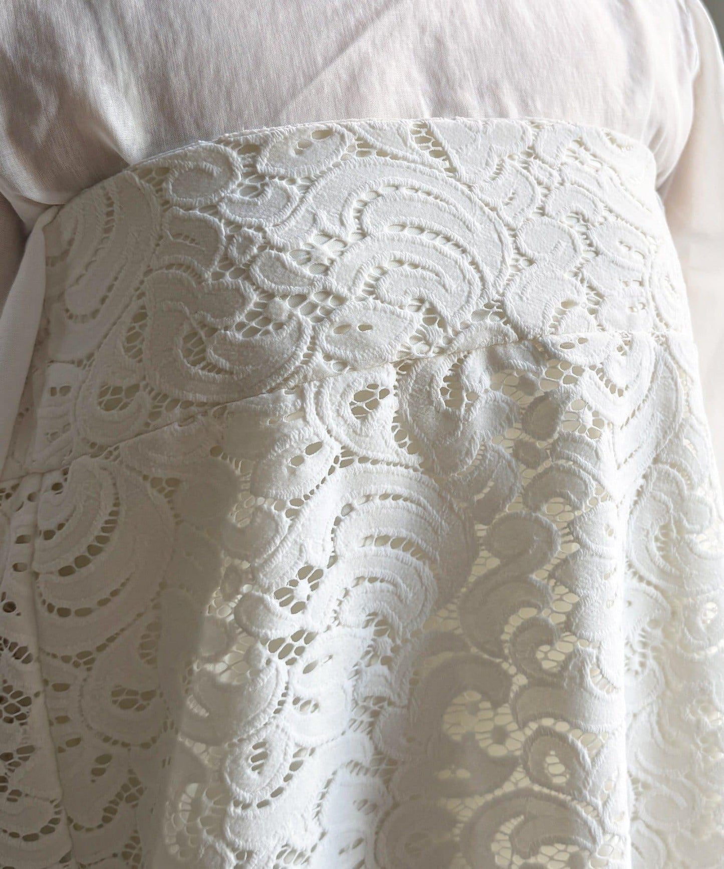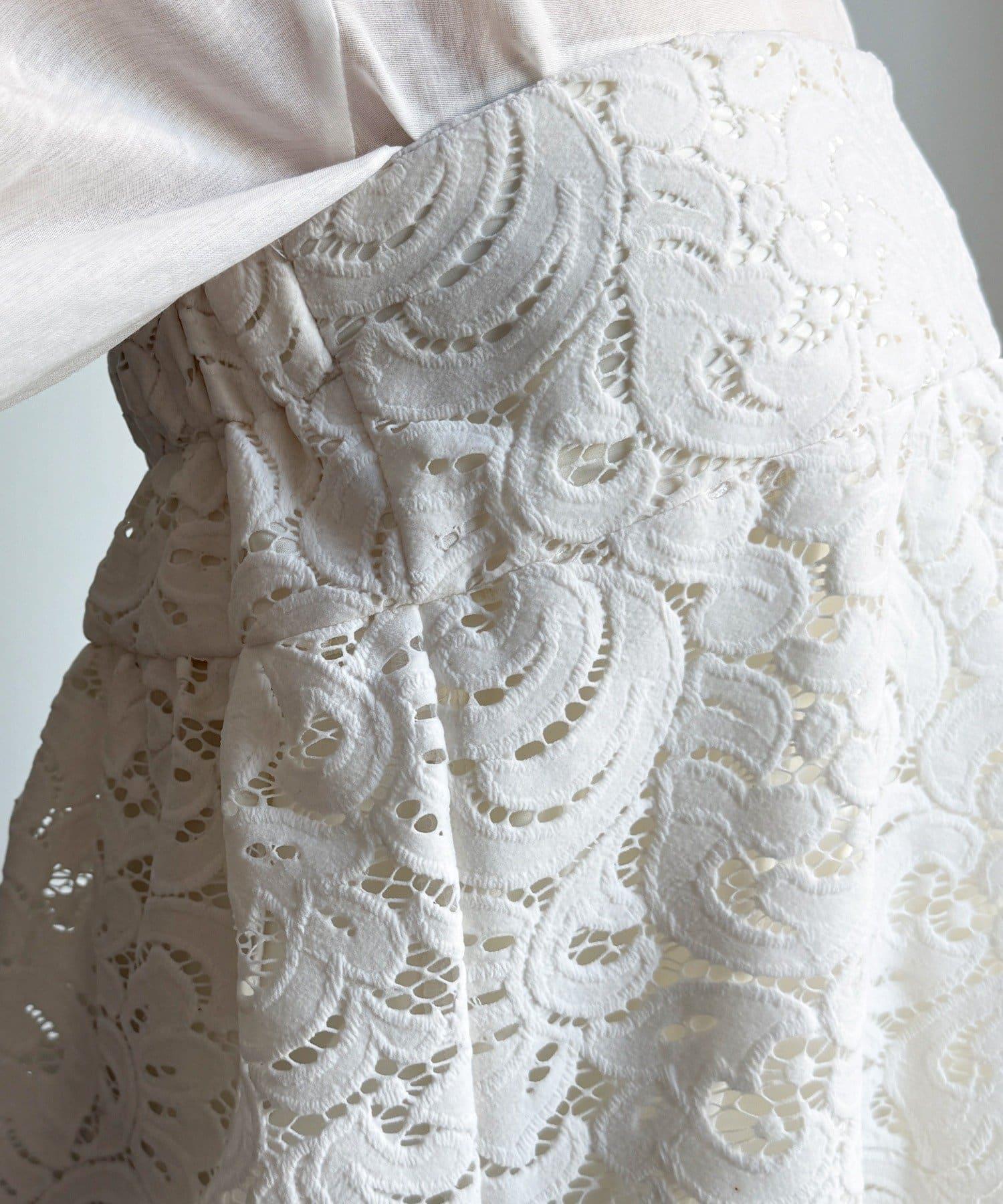 這款半身裙採用表面觸感極佳的植絨蕾絲面料,給人耳目一新的感覺。