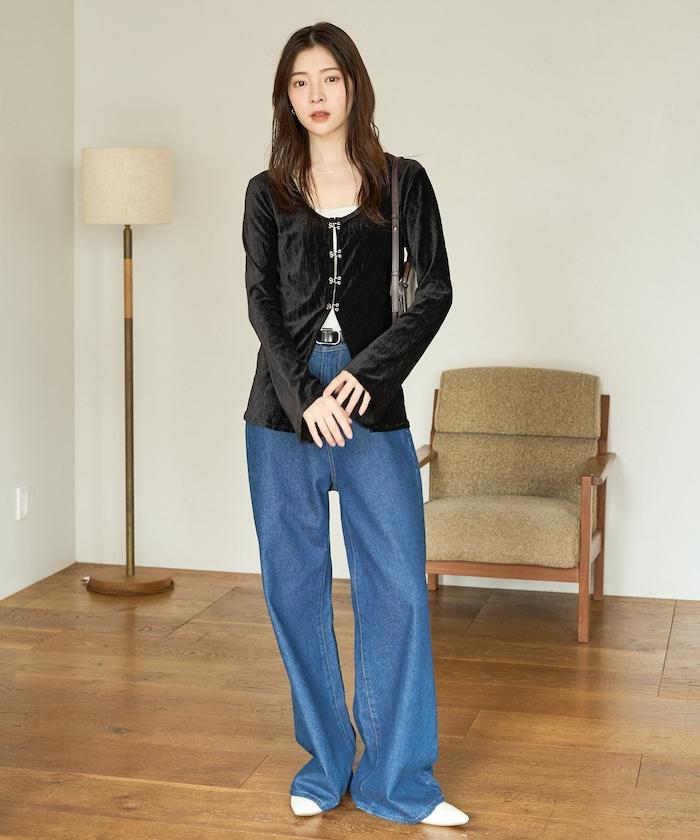 光滑的柳葉絨是一款設計新潮的上衣,可與牛仔褲搭配,打造休閒下裝!