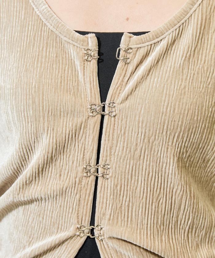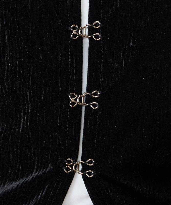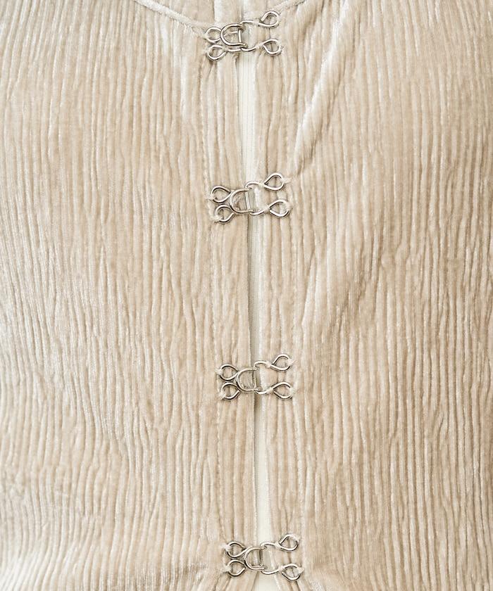 採用略帶光澤的天鵝絨和優雅的柳條面料組合剪裁縫製而成。