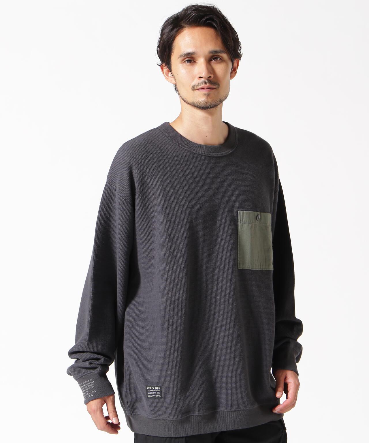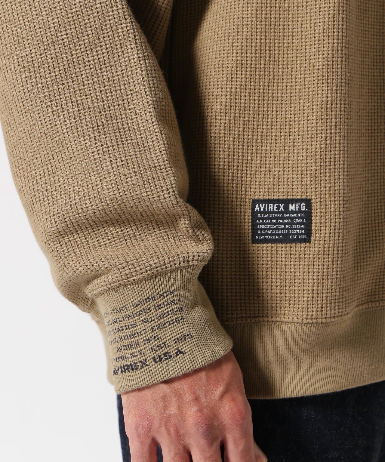 AVIREX官方旗艦店] 產品名稱:EXTREME THERMAL CREWNECK OFFICIAL LOGO 產品詳情 - 使用AVIREX獨創面料剪裁縫製的長袖圓領衫 - 採用絨毛凸起的塊狀保暖面料襯裡的EXTREME THERMAL下襬肋條設計,可作為運動衫日常穿著 - 在寒冷季節,塊狀保暖結構和凸起的絨毛襯裡可確保高保暖性 - 落肩剪裁,穿著感寬鬆、粗糙 [AVIREX / AVIREX] 1975年。該公司作為美國空軍的承包商成立,並通過提供飛行夾克大幅提高了知名度。軍事。