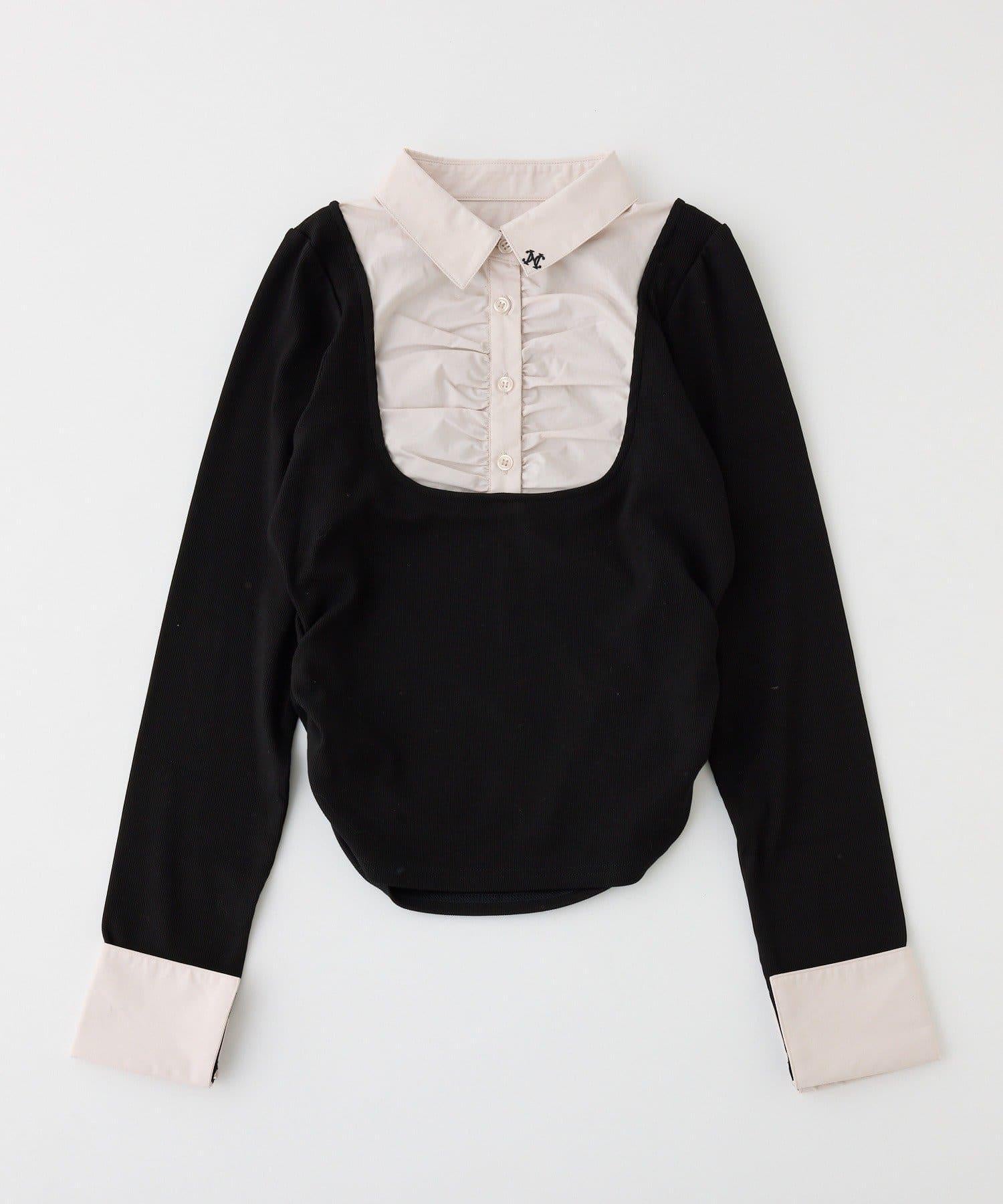 這款百搭上衣採用襯衫對接剪裁,層次感十足。