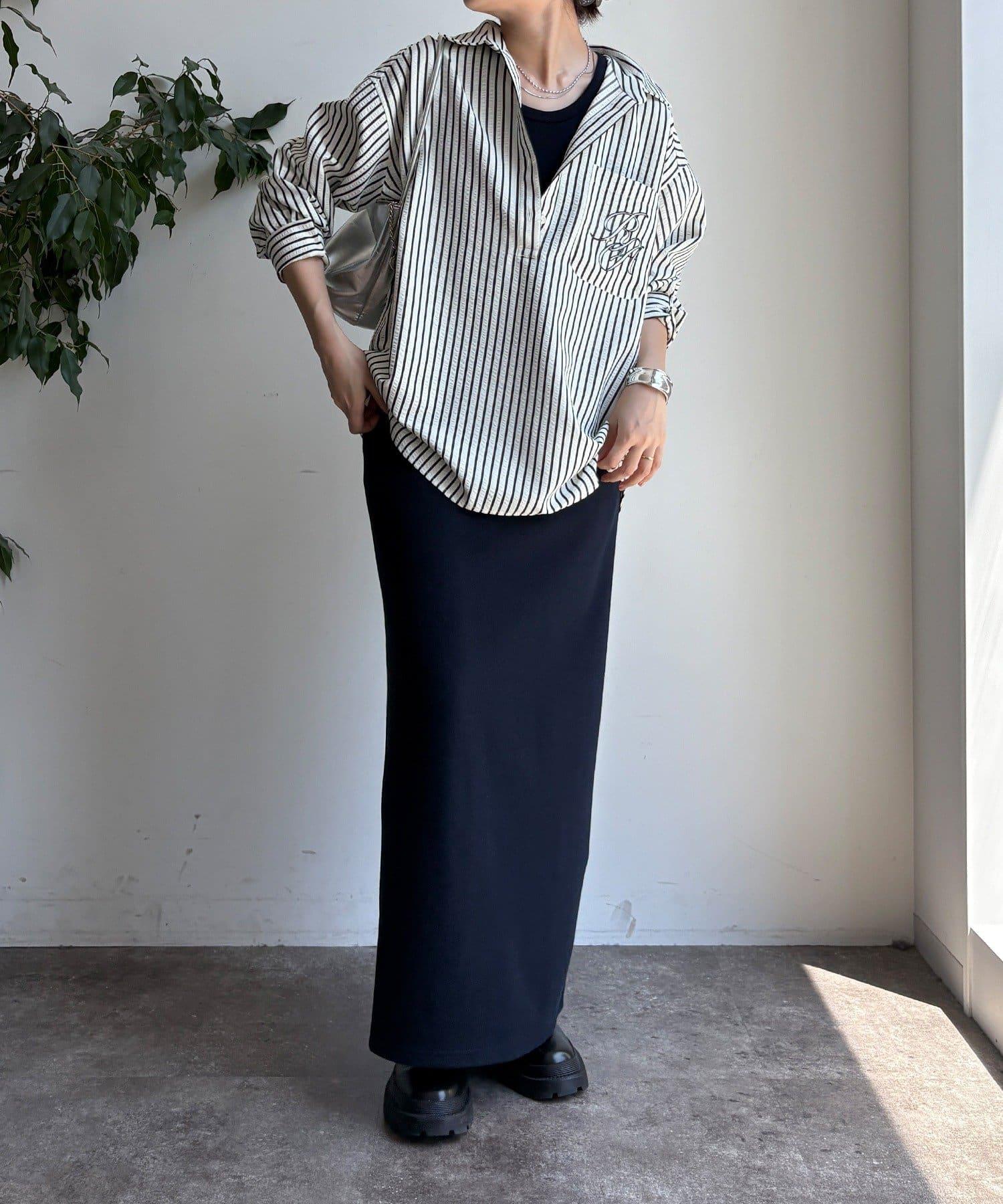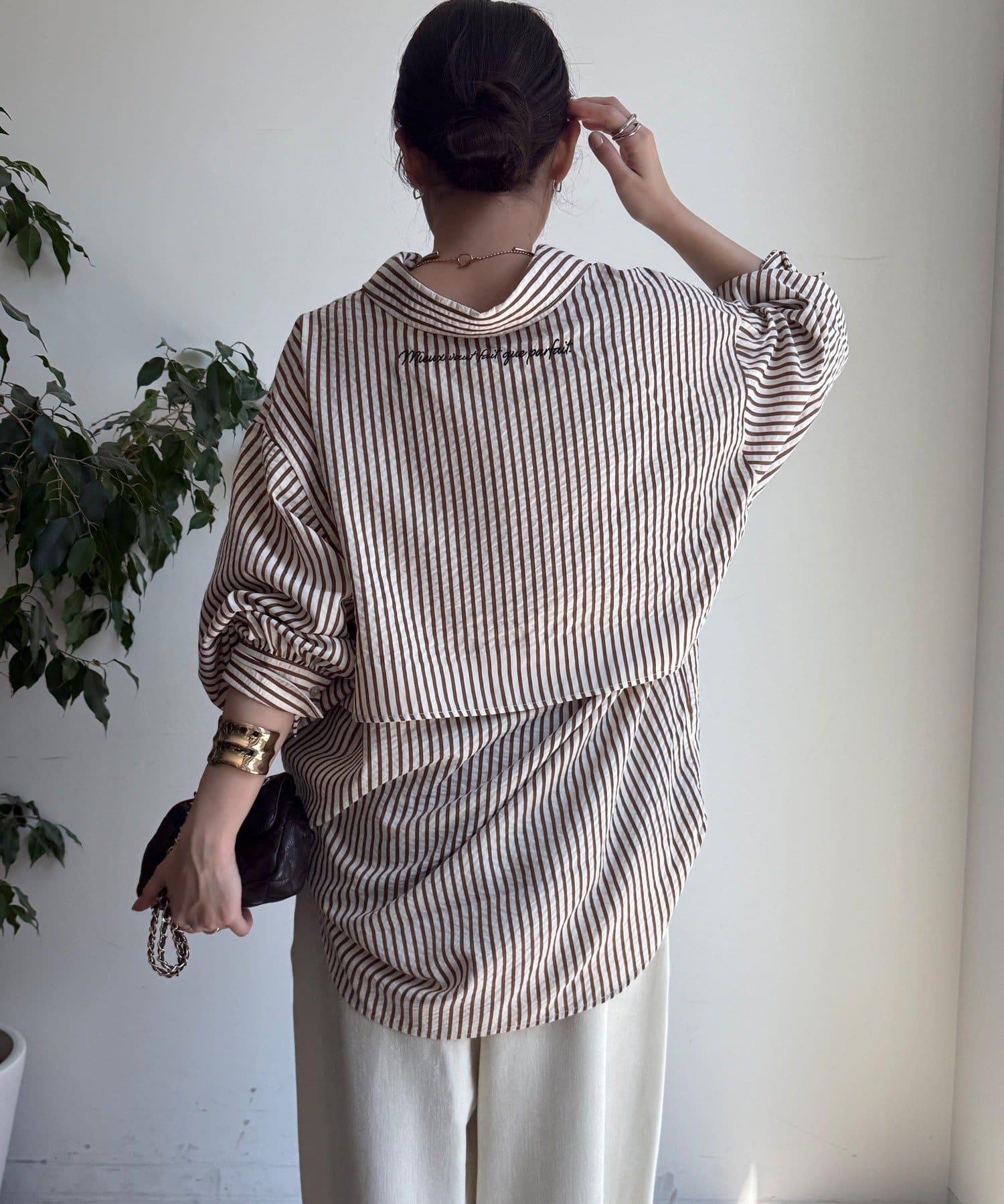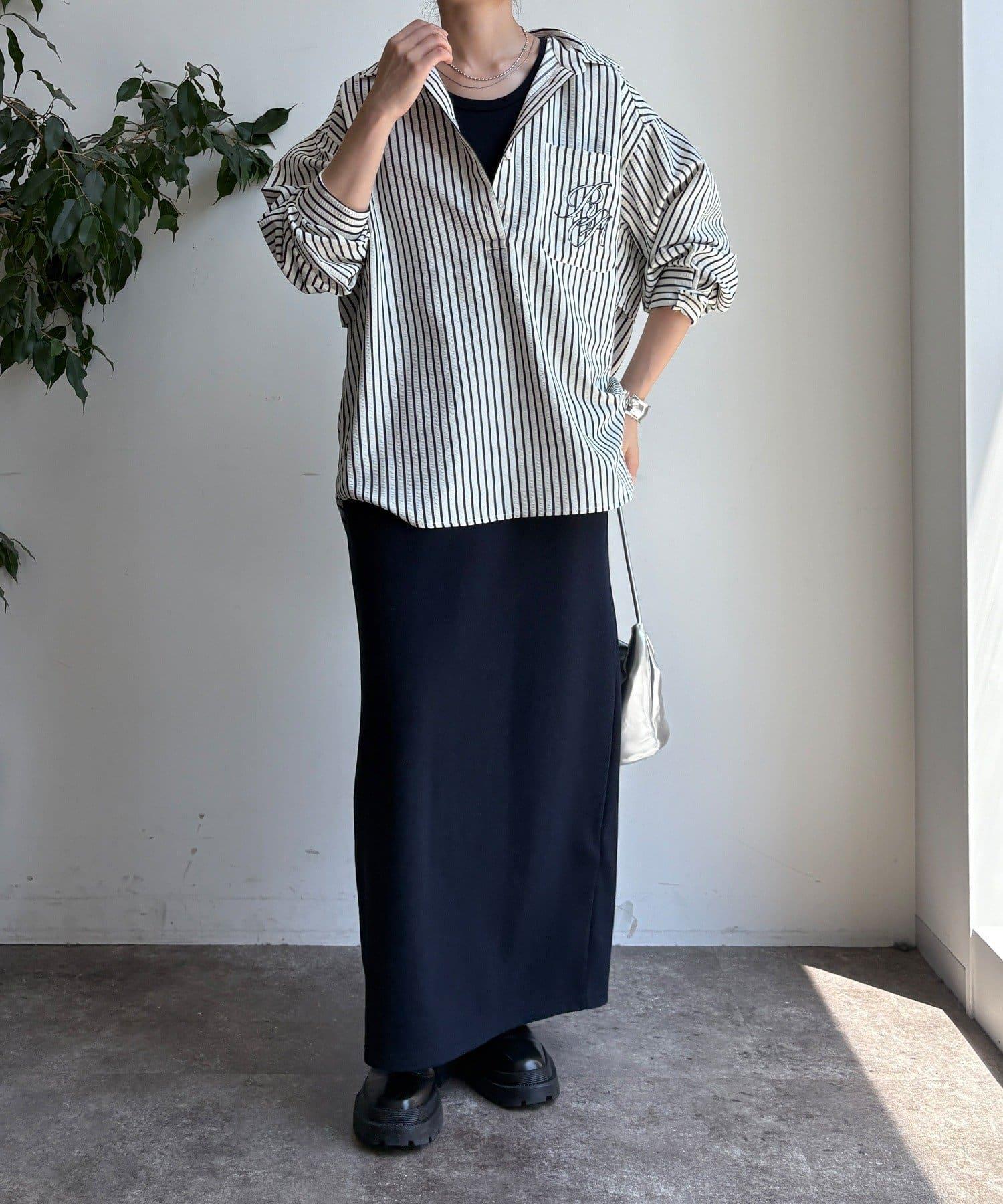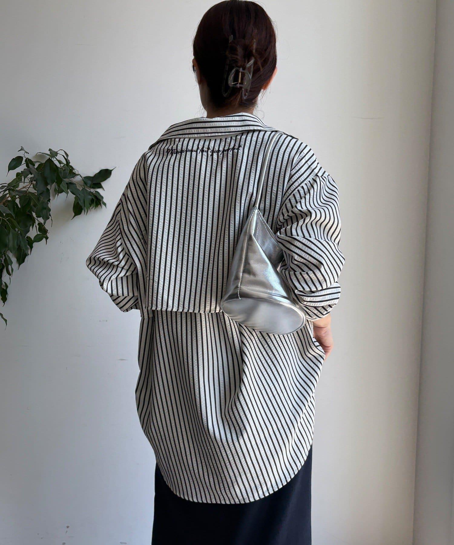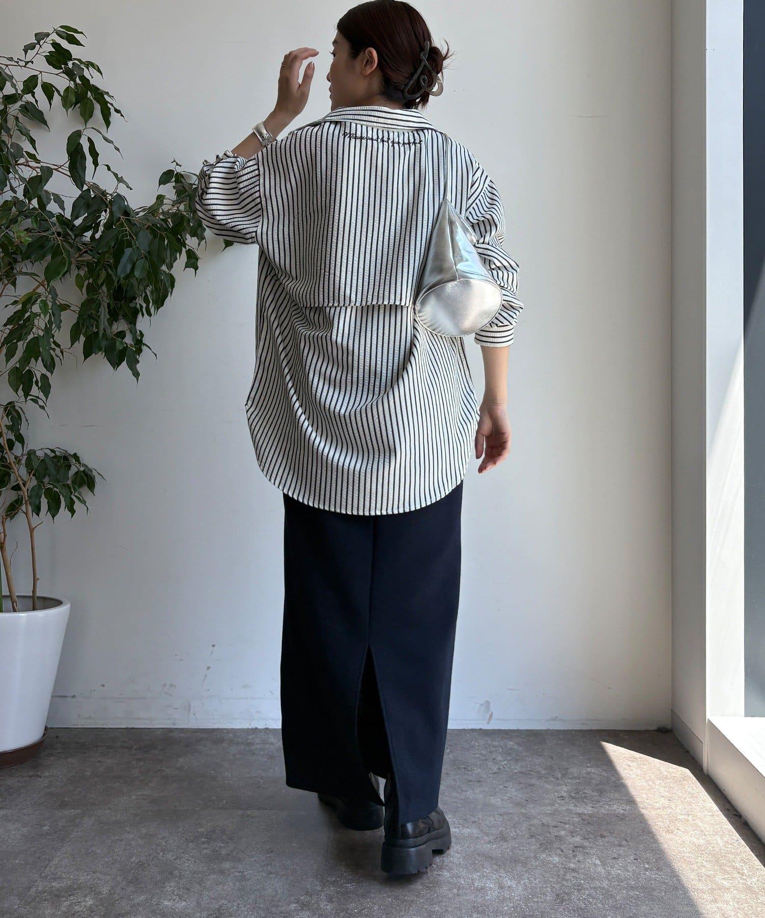 如圖所示,如果只將襯衫的前半部分放入下裝,就能增添一絲精緻感。