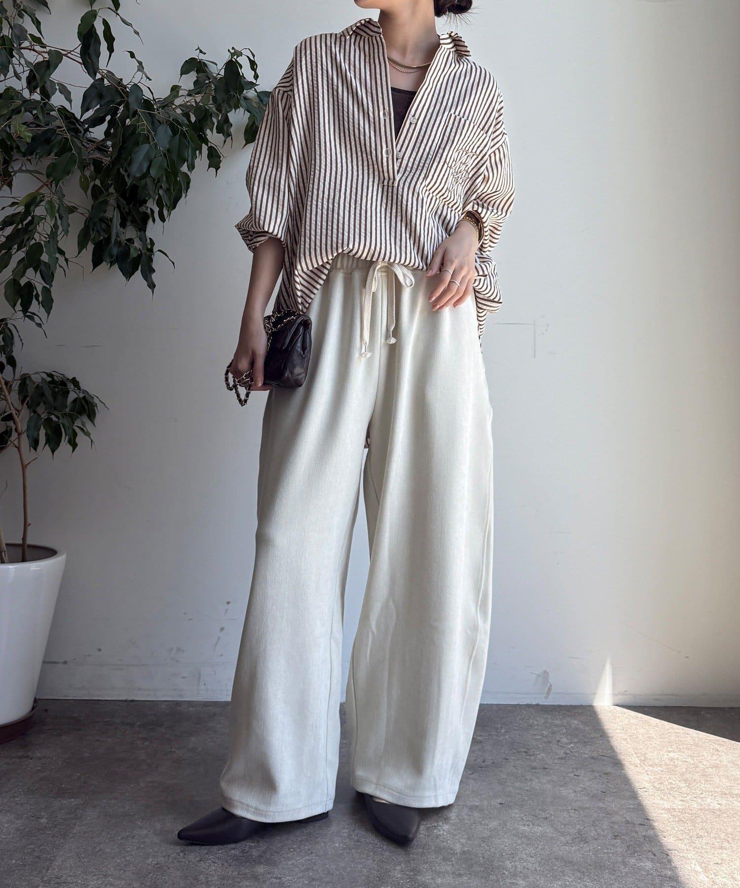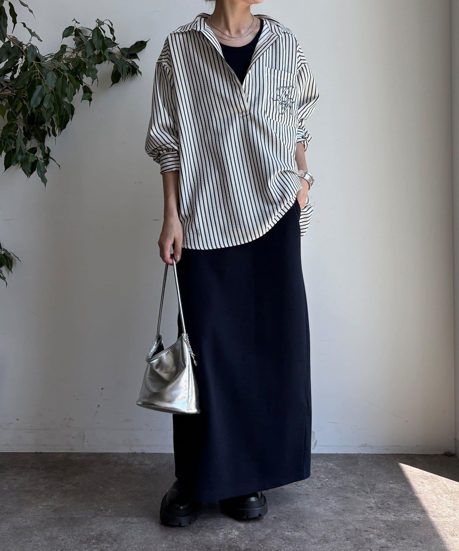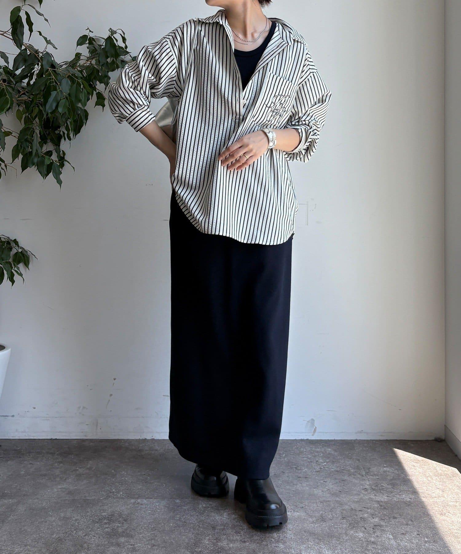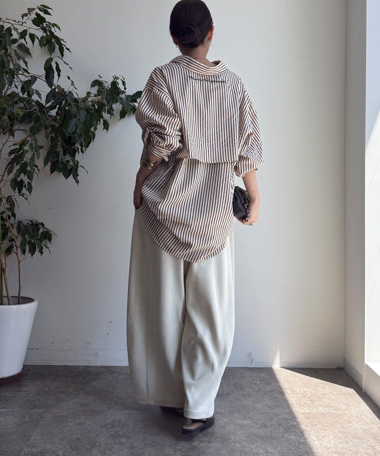 如圖所示,如果只將襯衫的前半部分放入下裝,就能增添一絲精緻感。