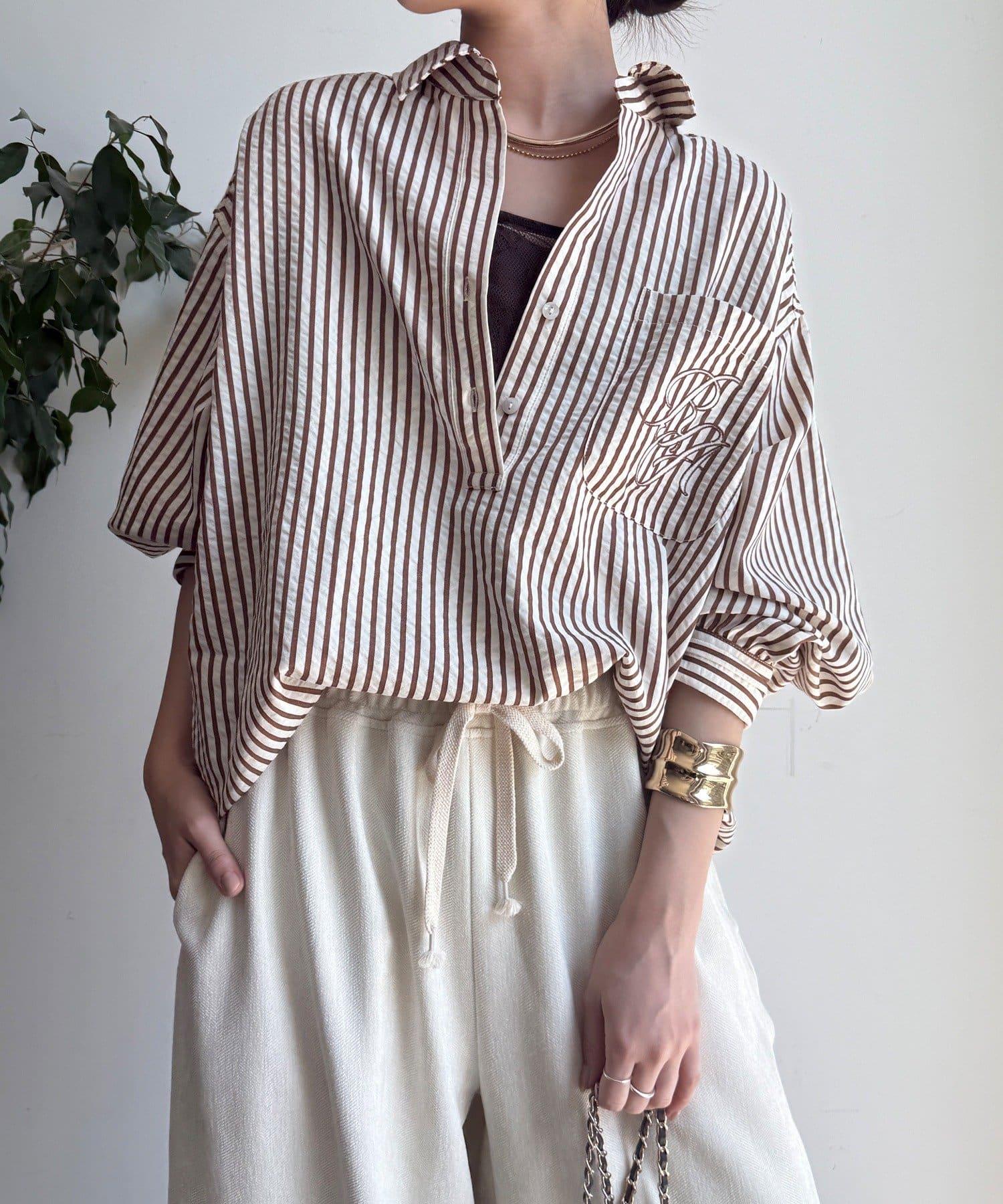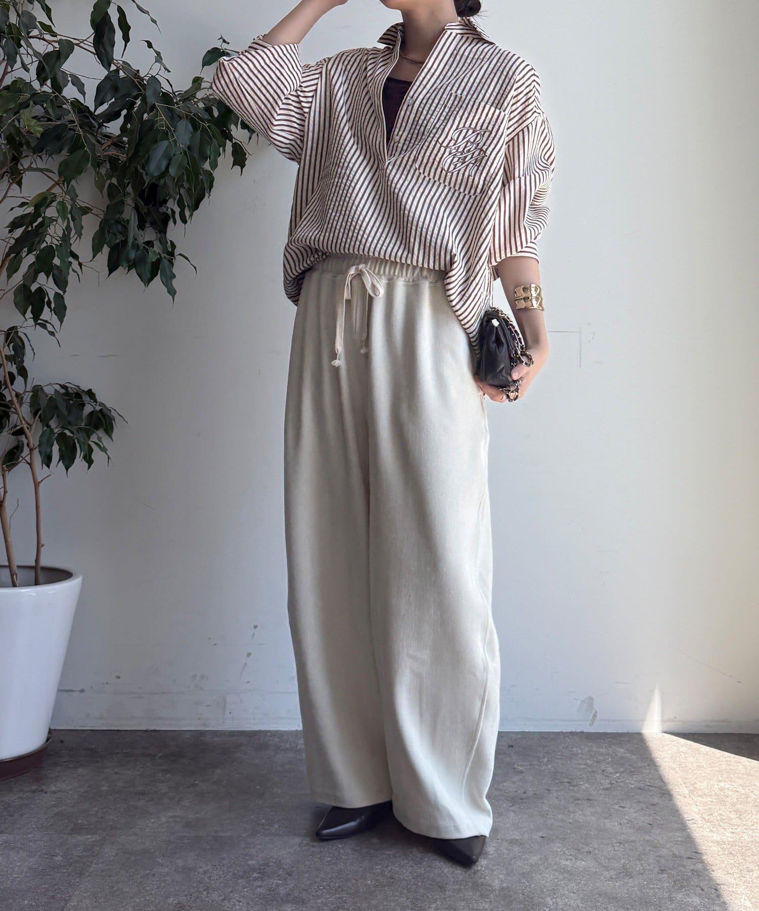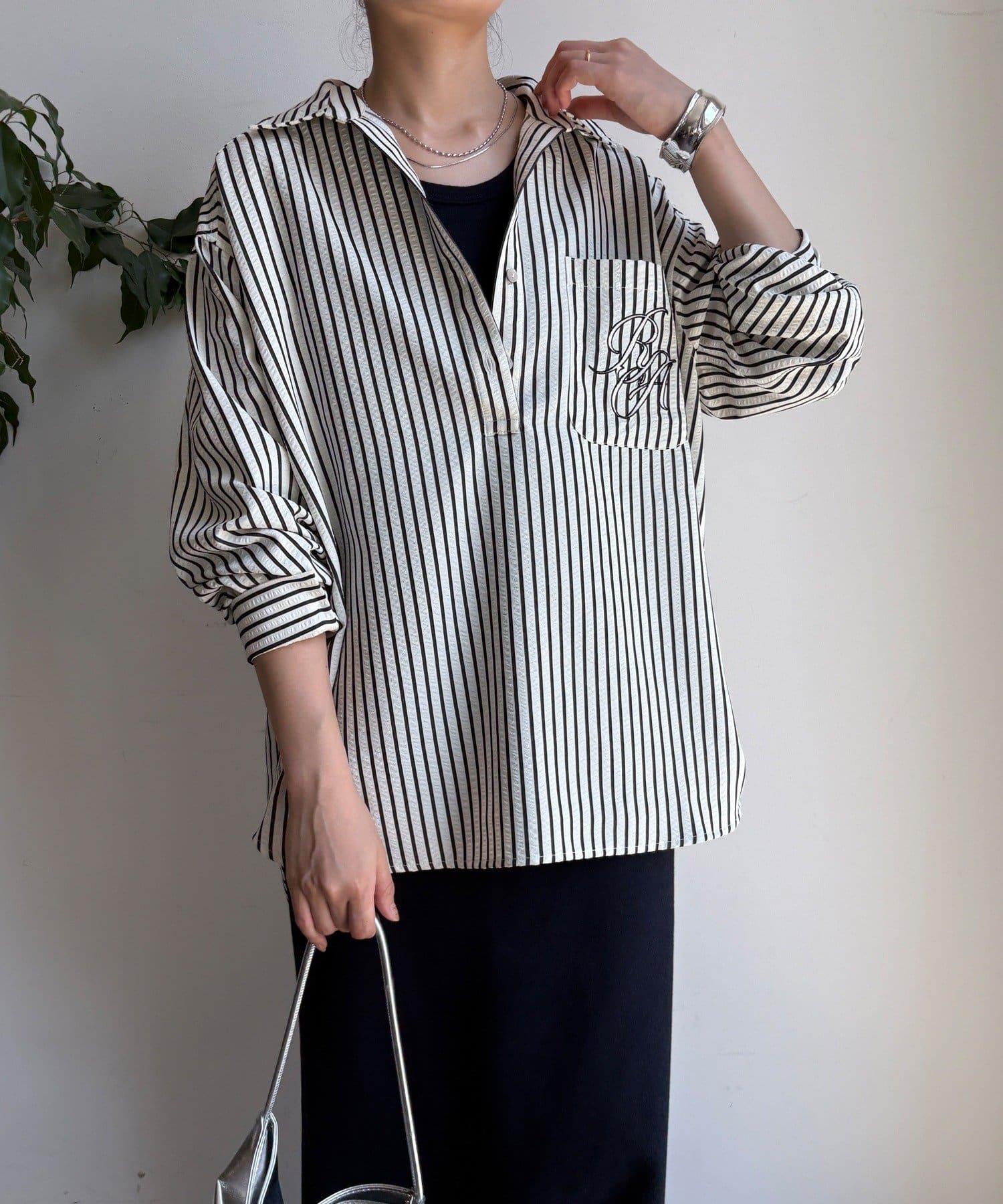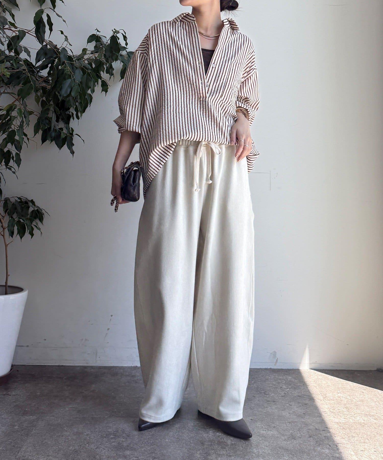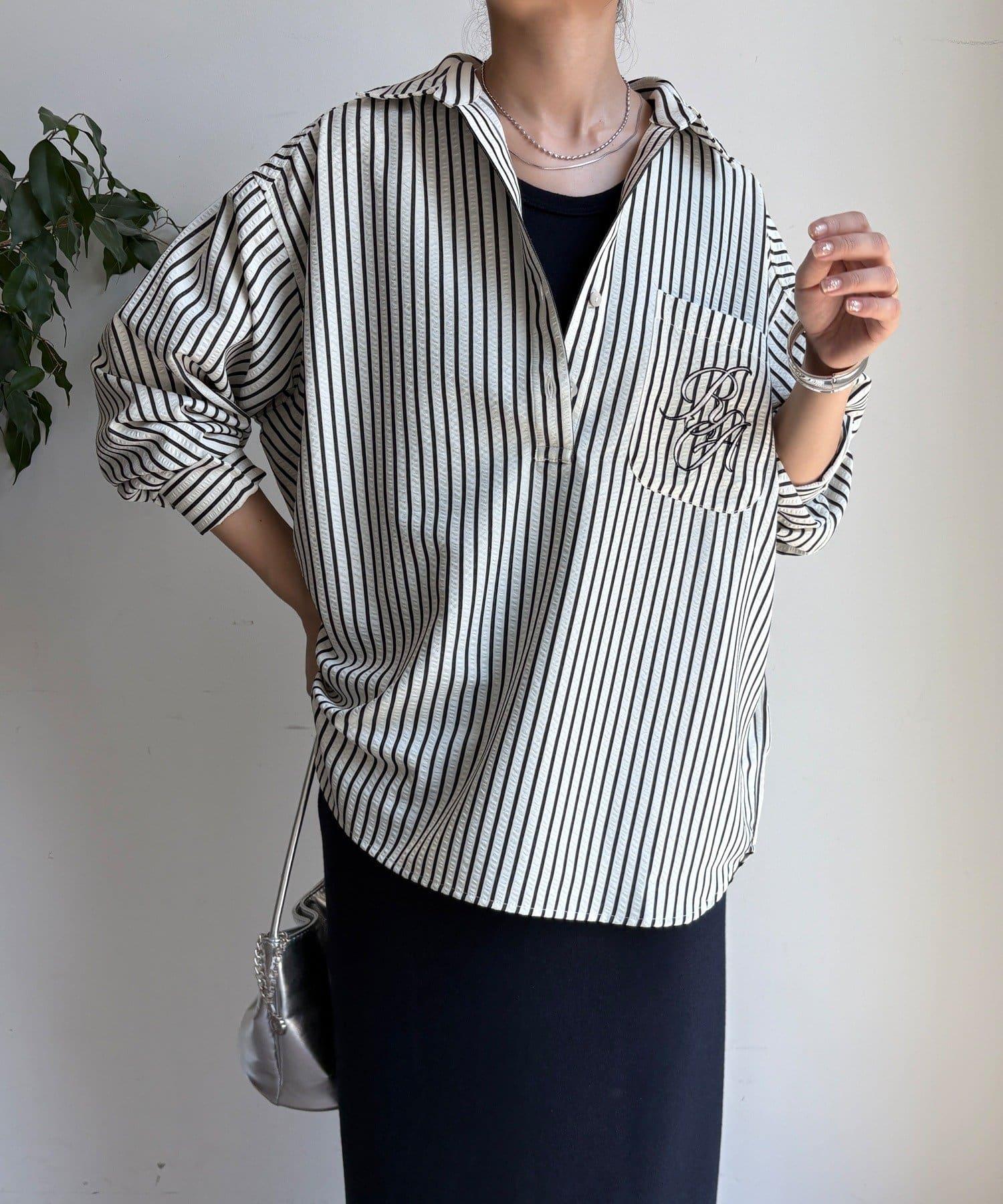如圖所示,如果只將襯衫的前半部分放入下裝,就能增添一絲精緻感。