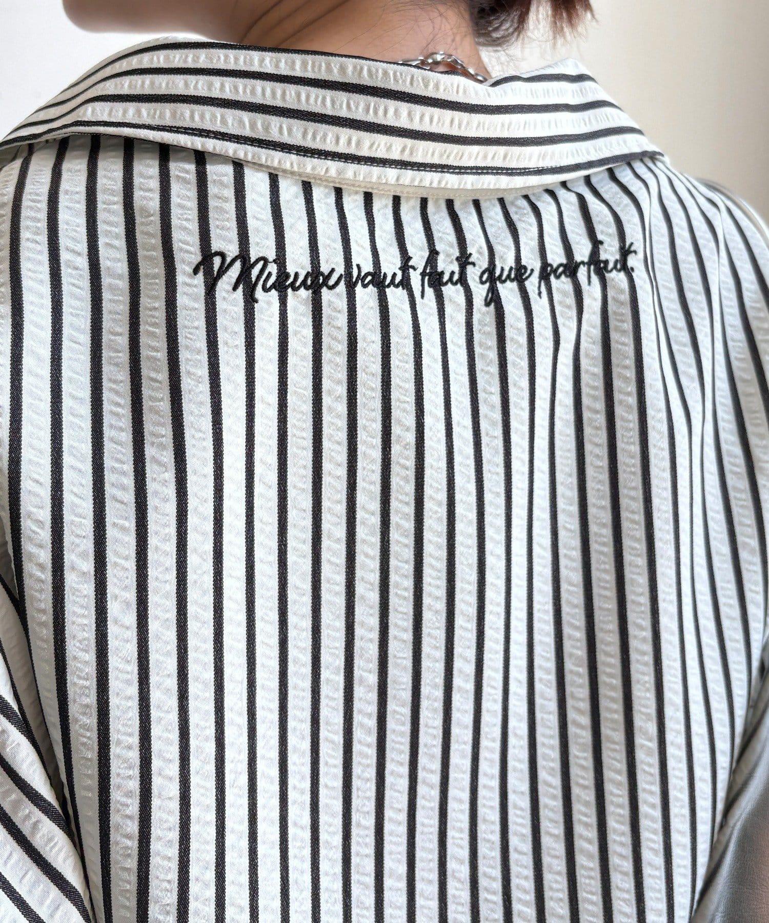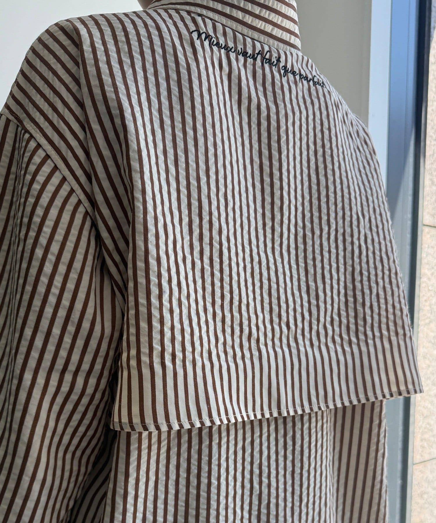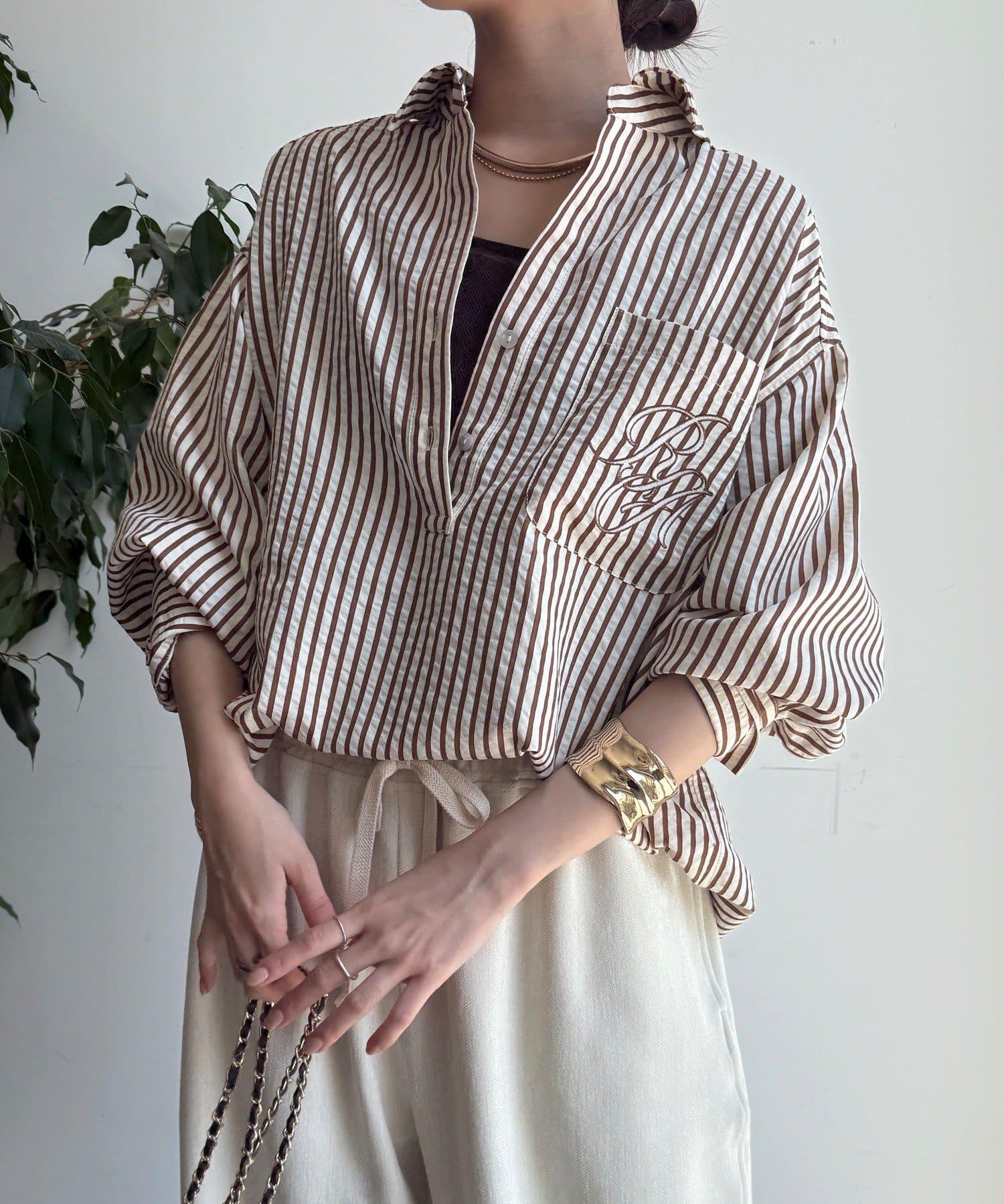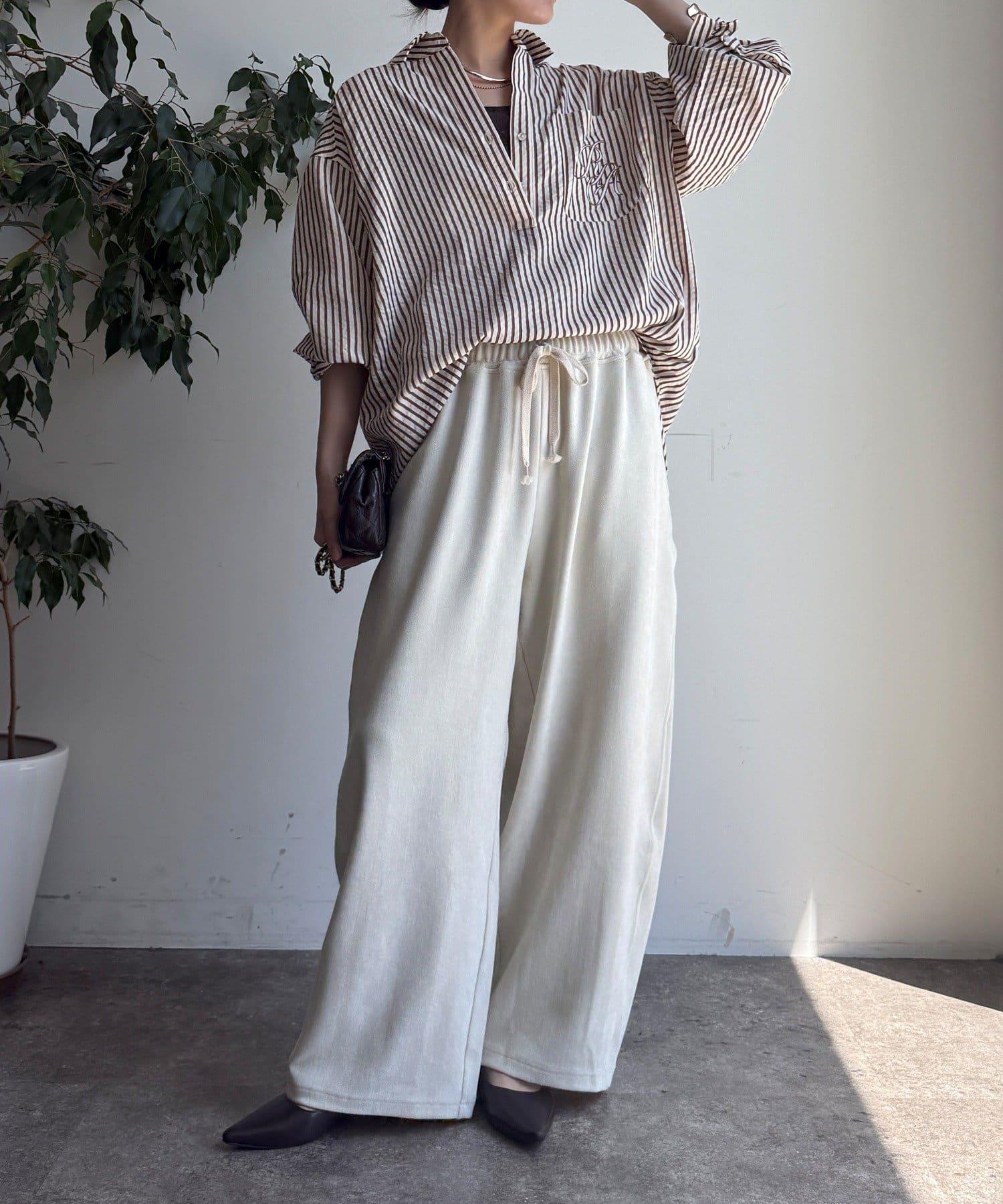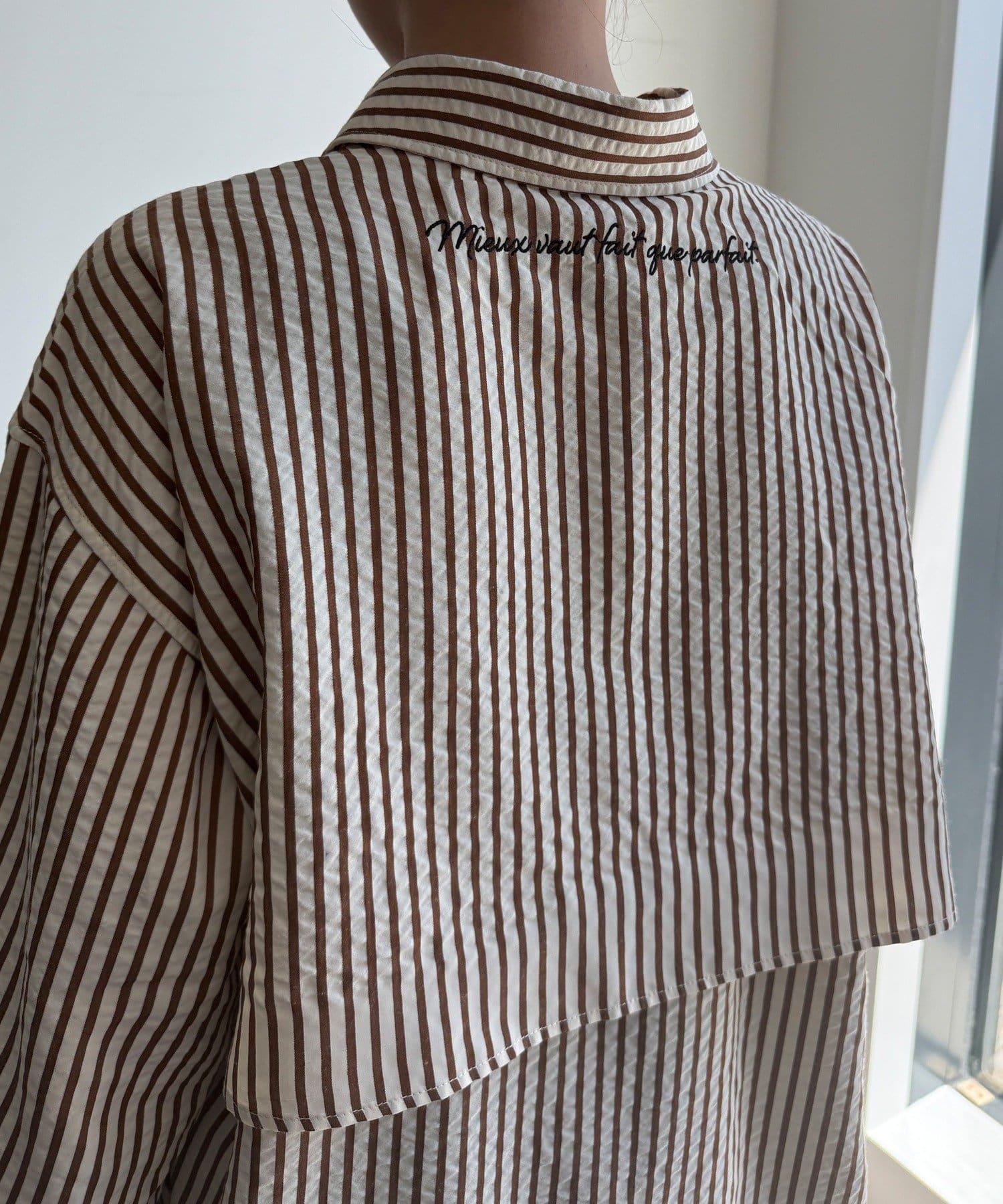 如圖所示,如果只將襯衫的前半部分放入下裝,就能增添一絲精緻感。