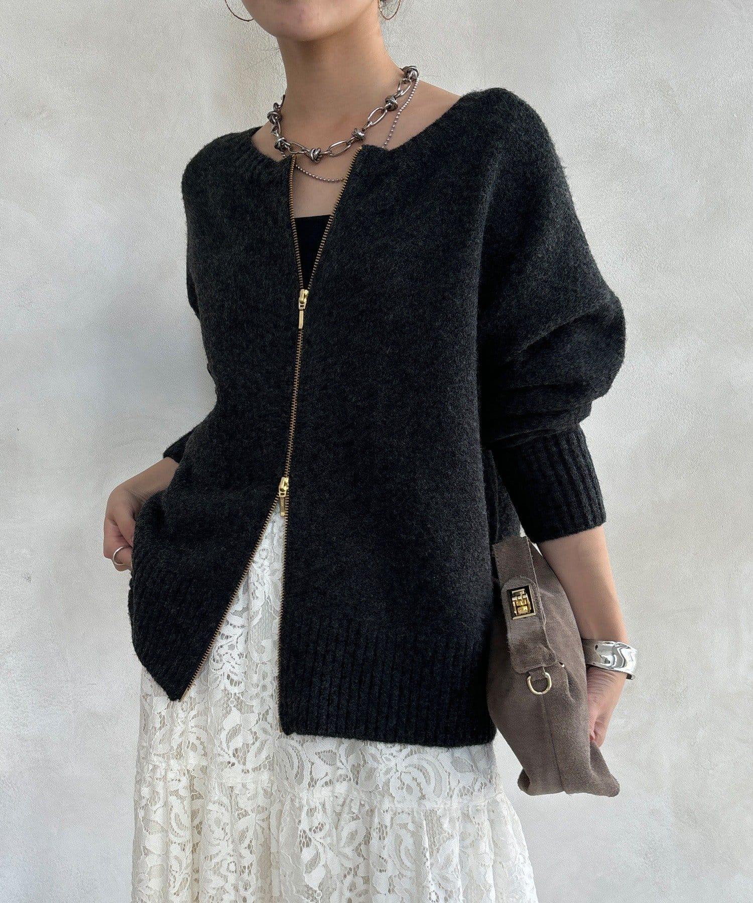 2WAY 徽標針織套衫(拉鍊和徽標)