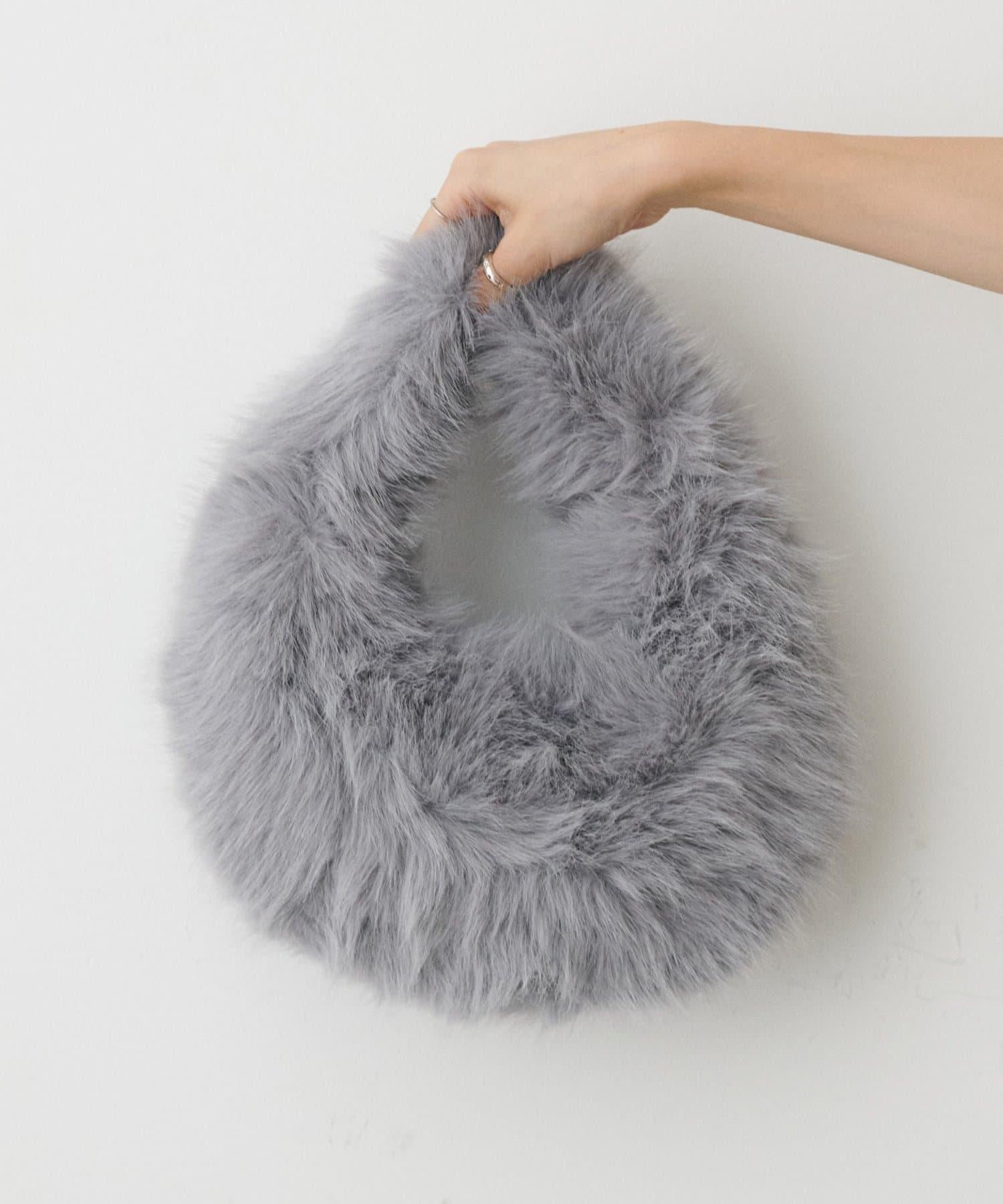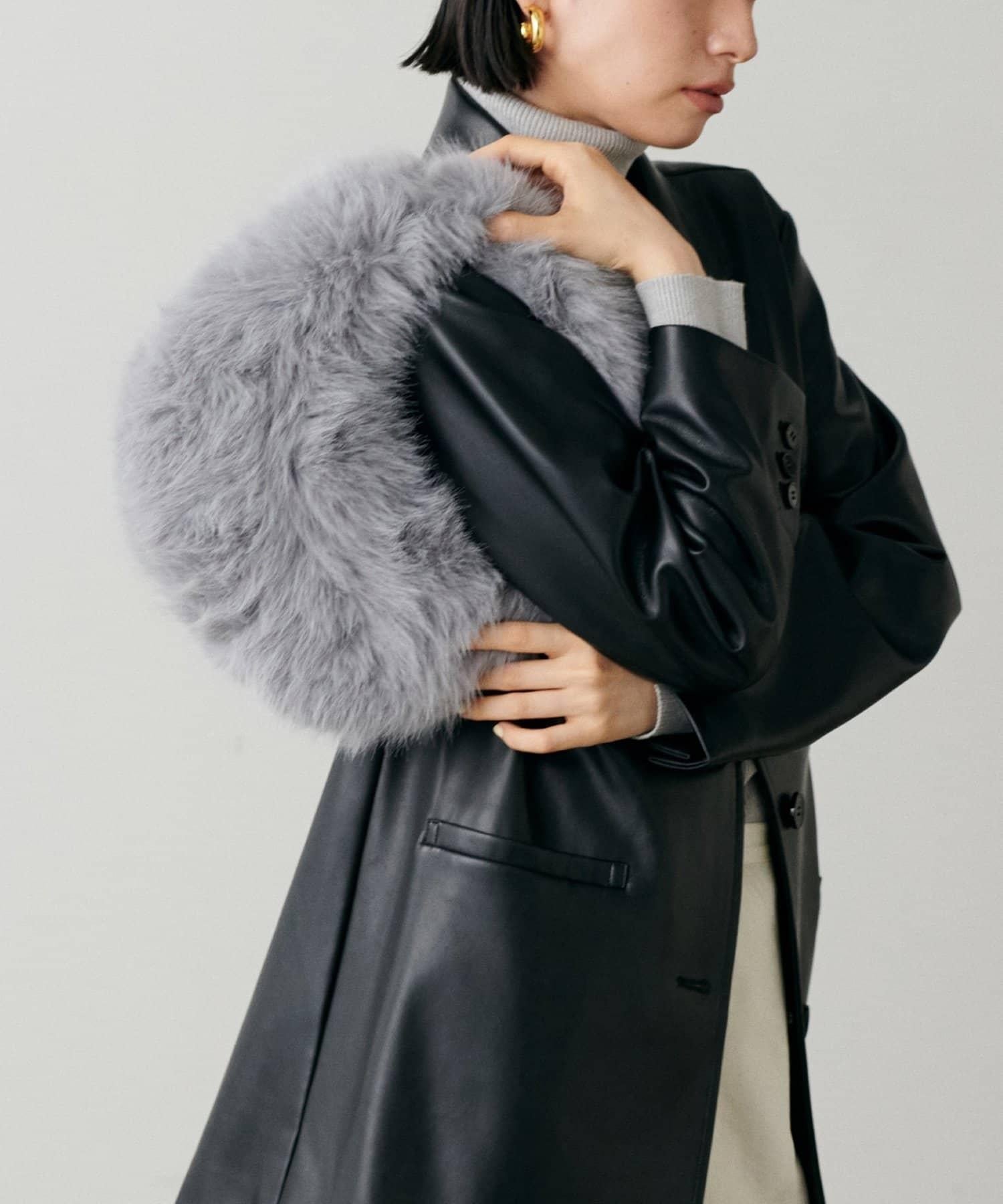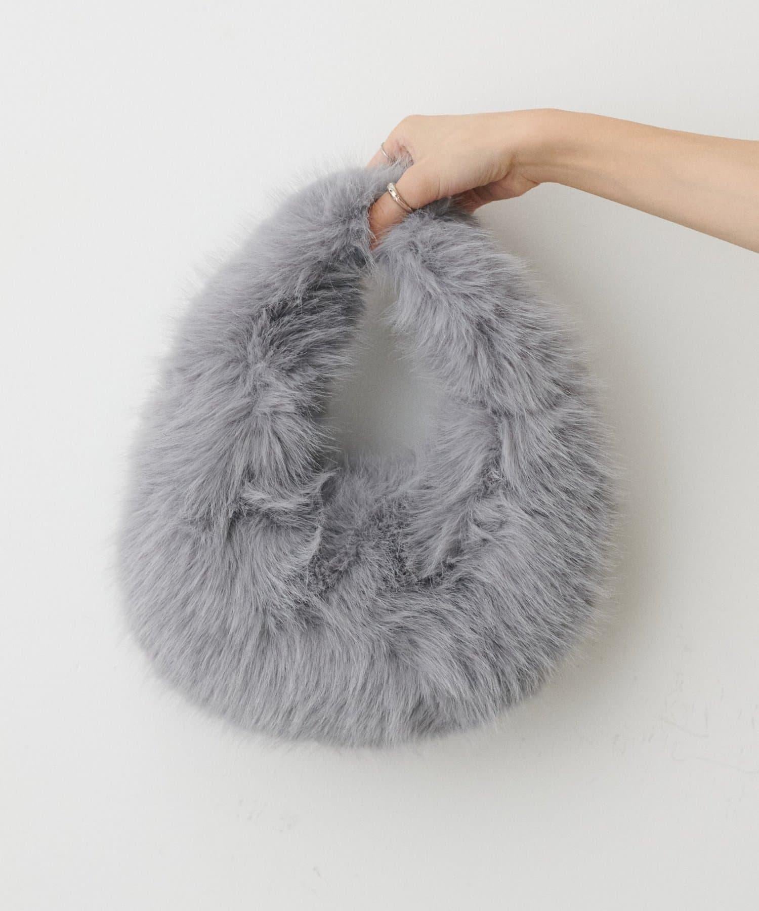 季節性的橢圓形手袋完全由柔軟的人造皮草製成。