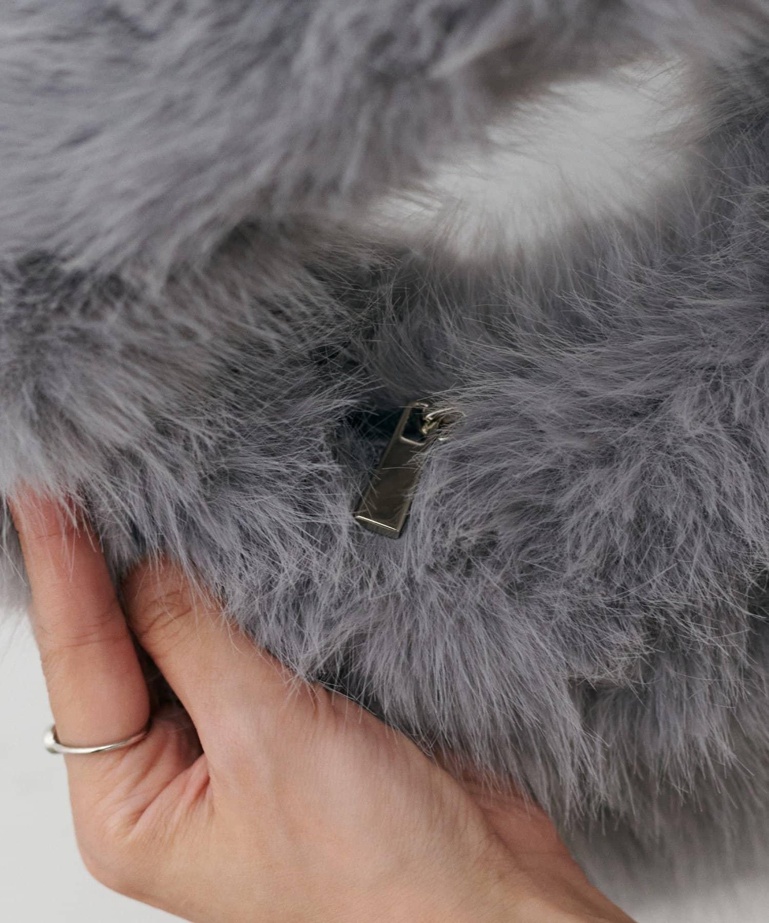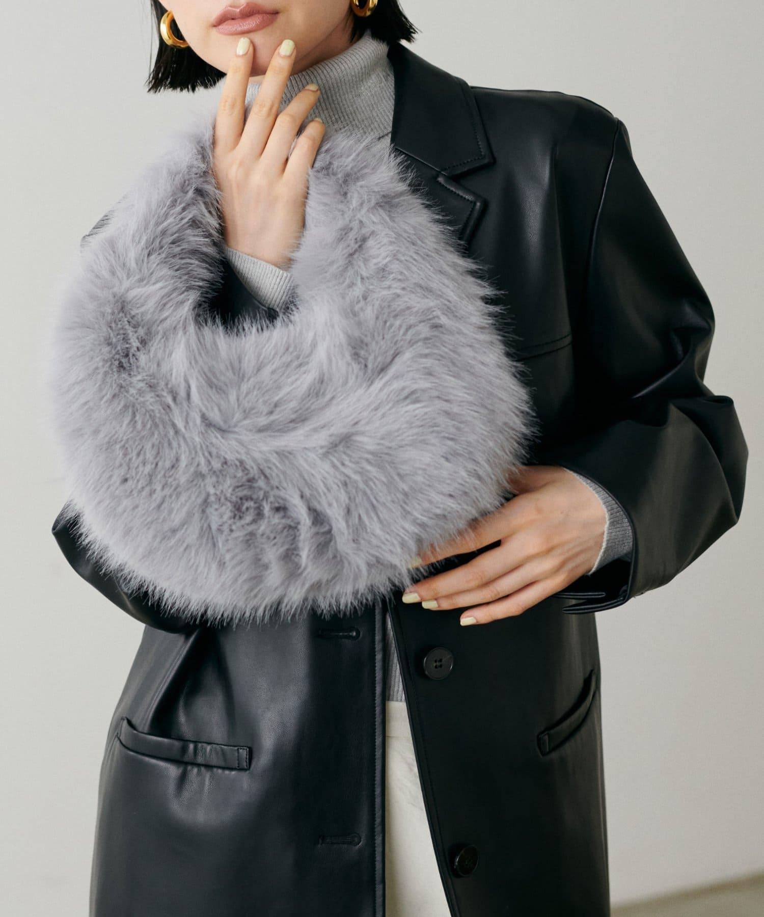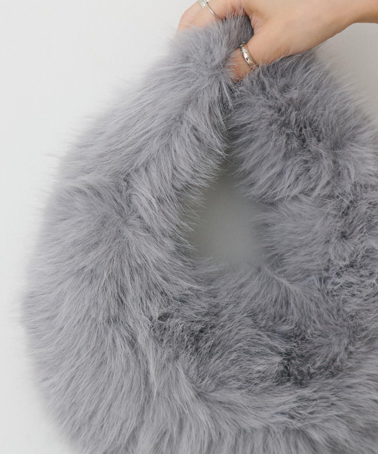 季節性的橢圓形手袋完全由柔軟的人造皮草製成。