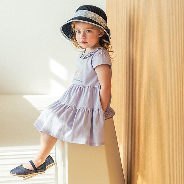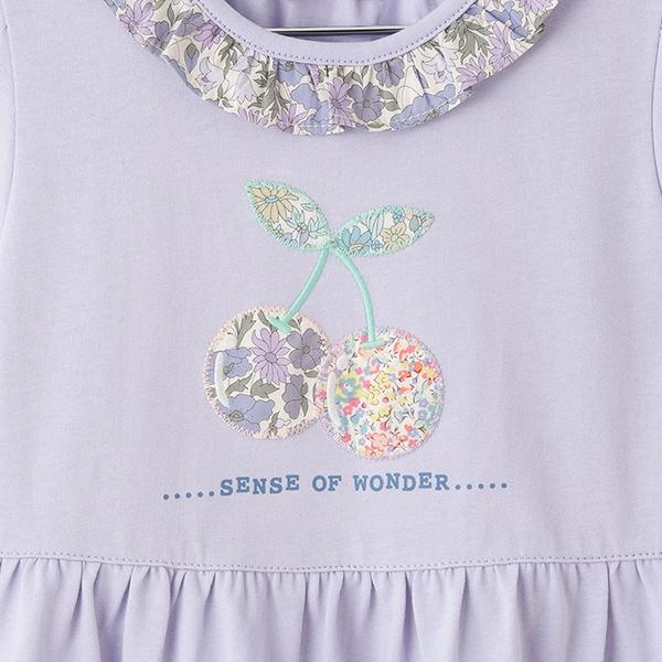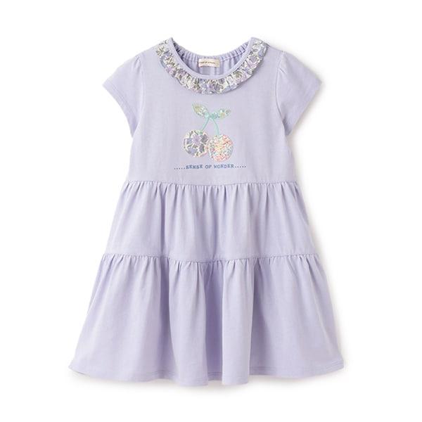 衣領上的荷葉邊採用了相同的面料,設計休閒又不失華麗。