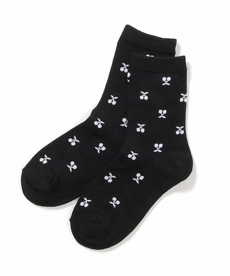 櫻桃心形花朵圖案中筒襪