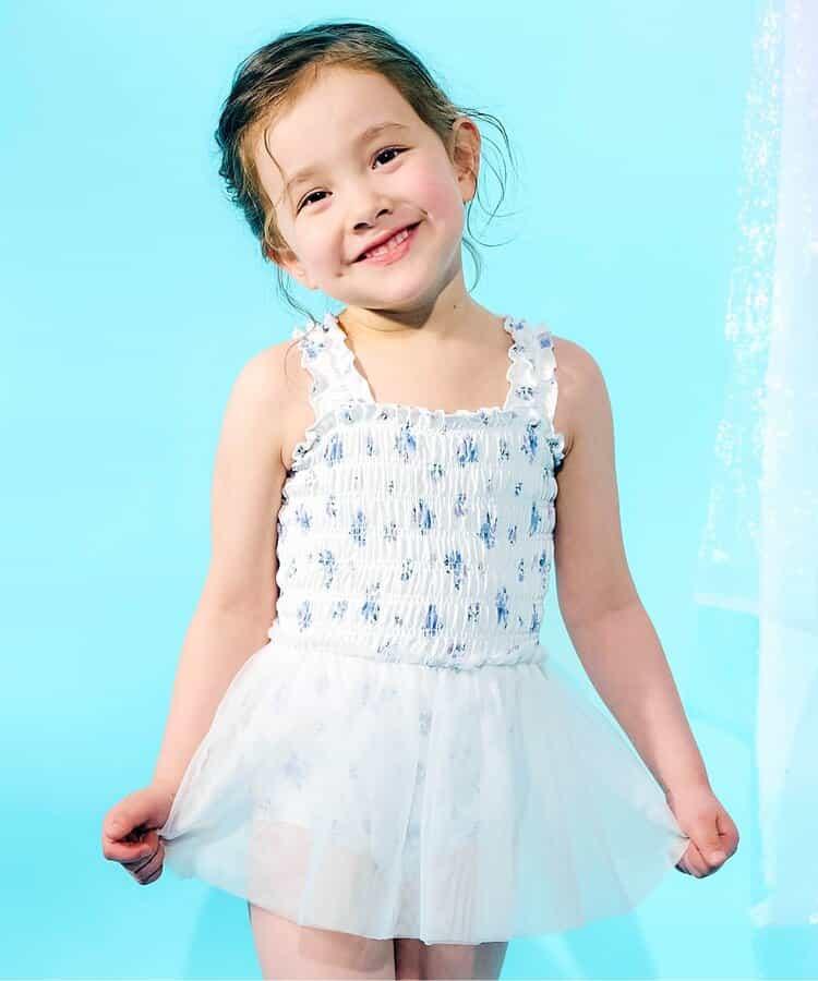 櫻桃花朵圖案蕾絲連衣裙嬰兒泳裝
