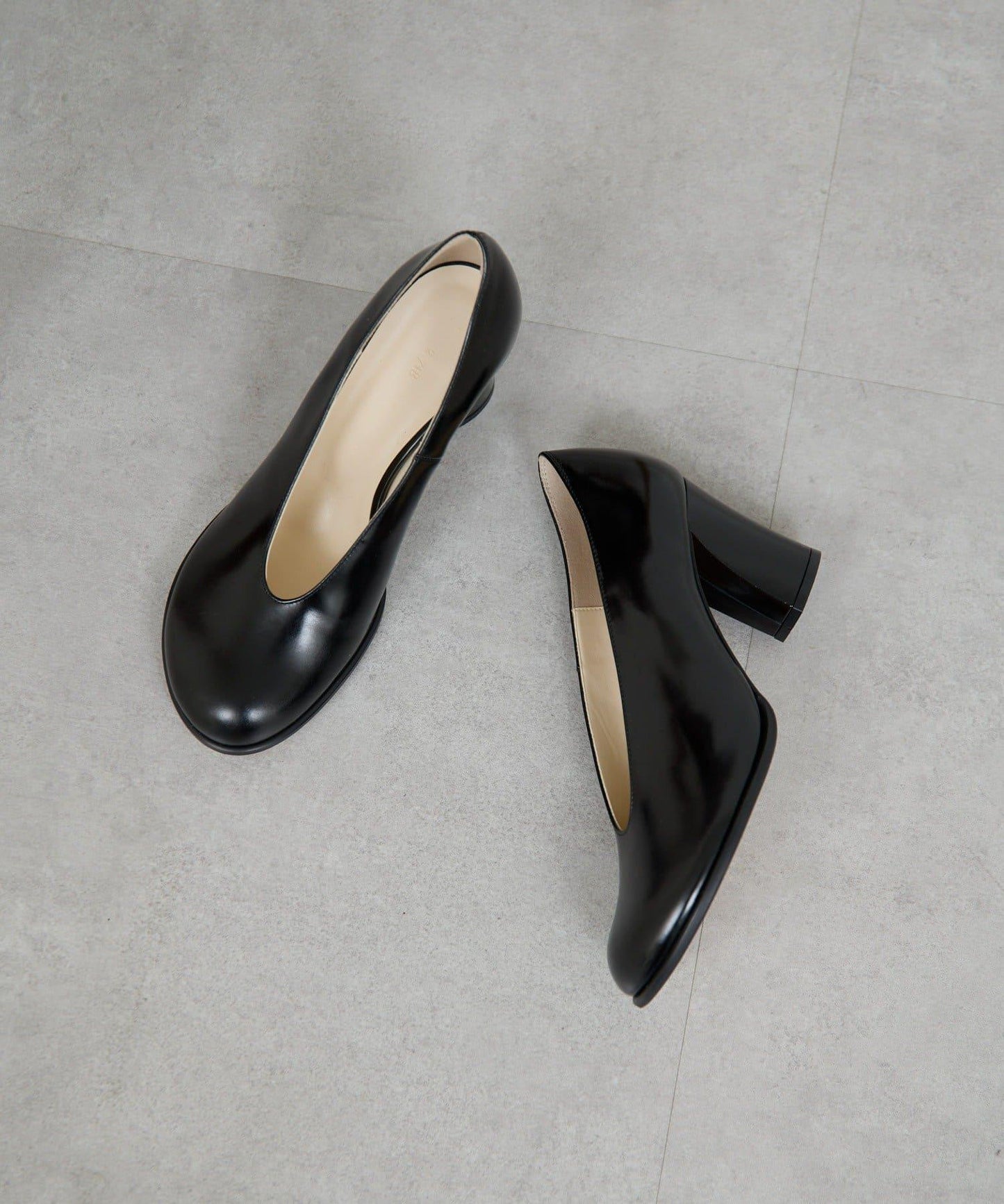 這款高跟鞋的鞋腿線條流暢簡潔,鞋頭帶有鬆緊帶。