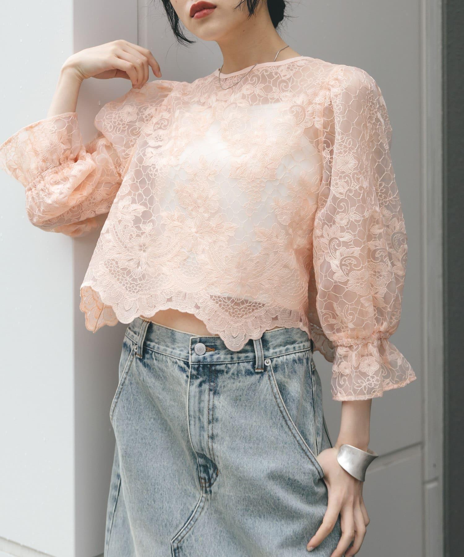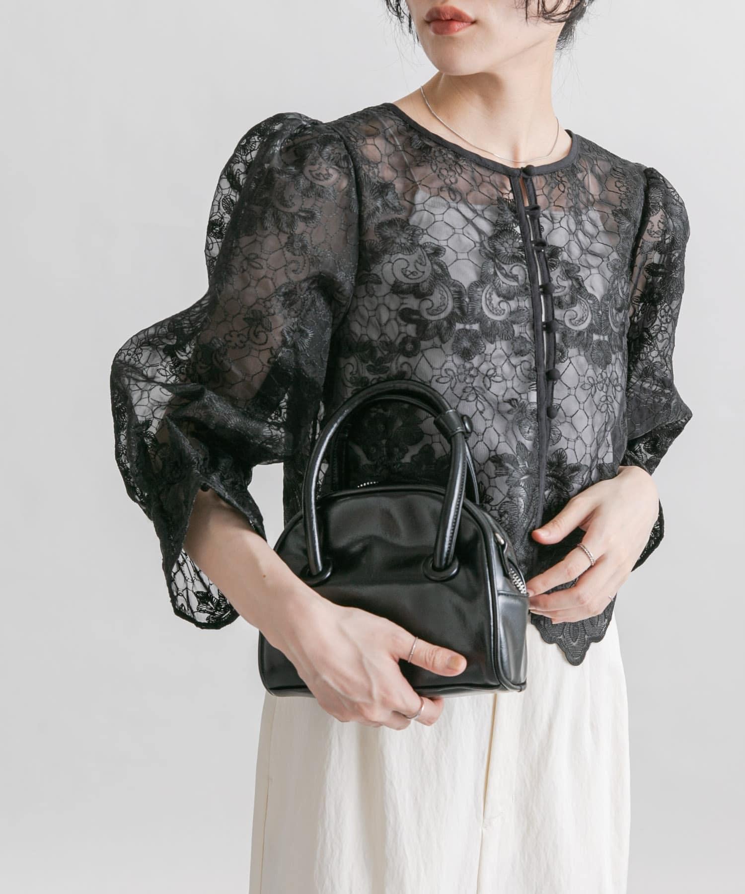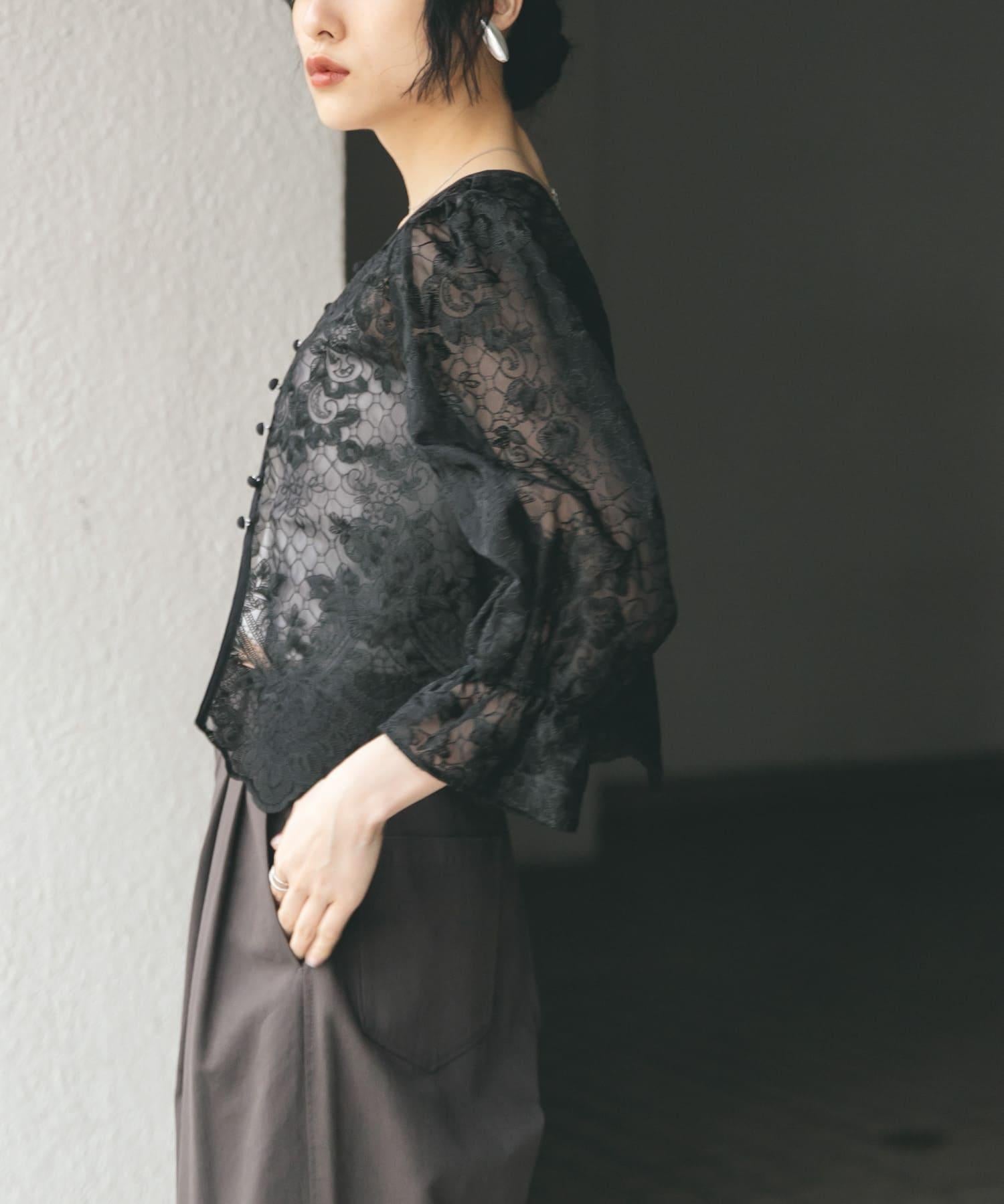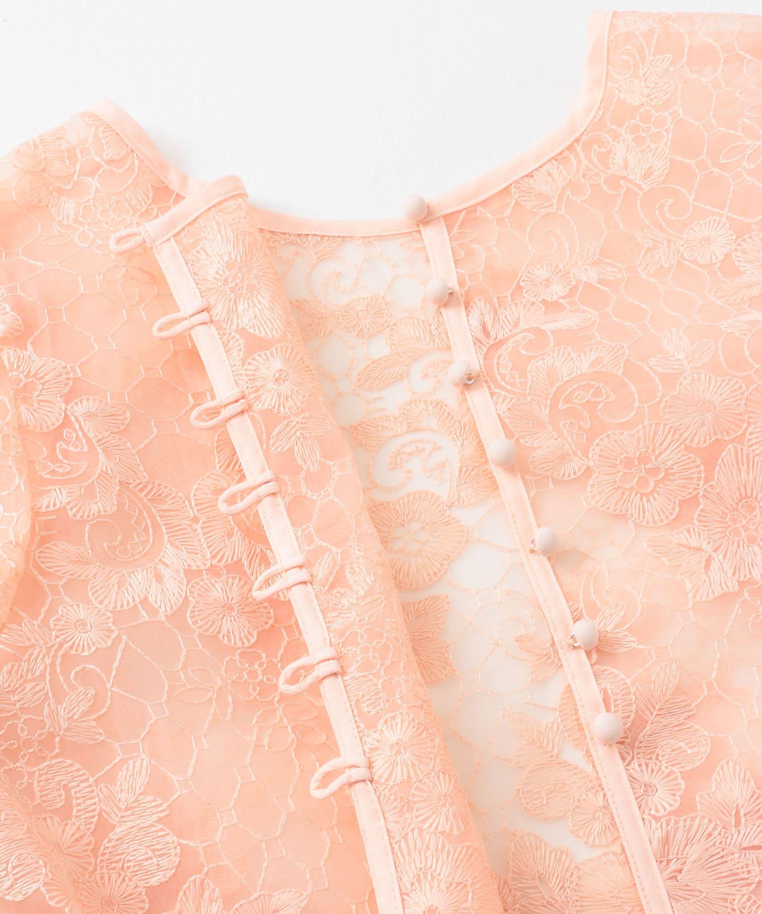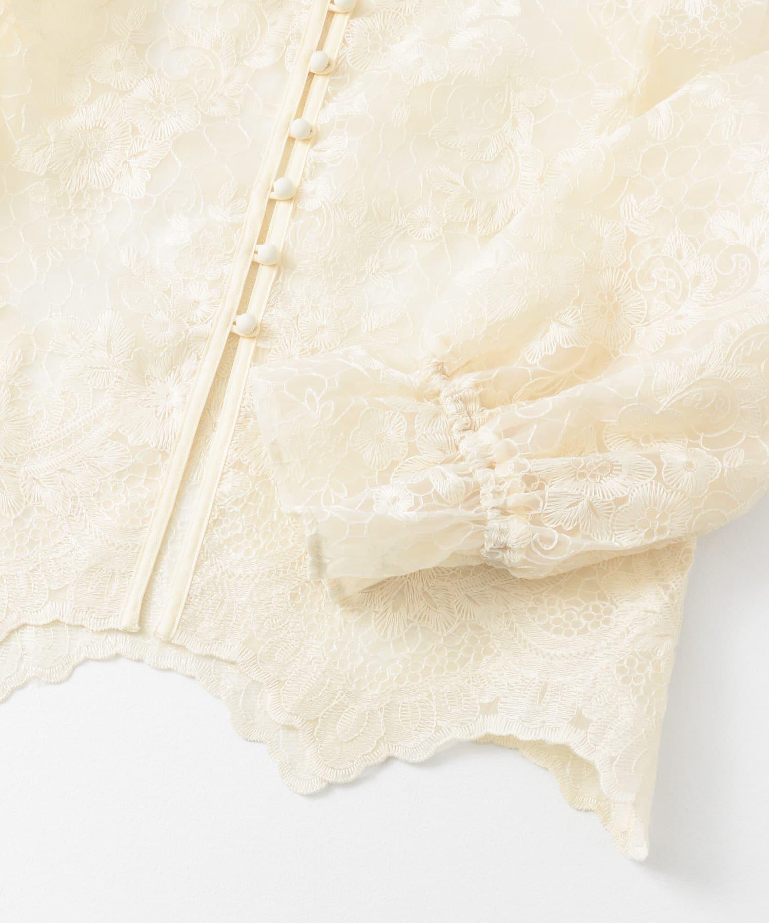 這款上衣由歐根紗製成,繡有精緻的刺繡,更顯女性柔美。下襬採用扇形設計,更顯女性柔美。小巧的尺寸和紐扣臺設置在腰線處,通過使其看起來像下襬開衩,也實現了風格的提升。它可前後雙向穿著,因此可根據搭配的單品進行穿脫。