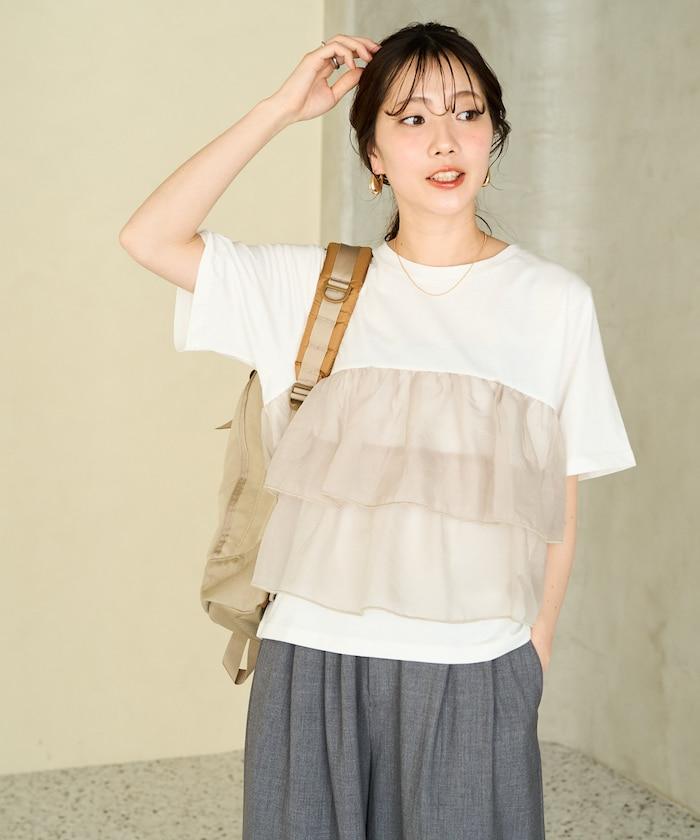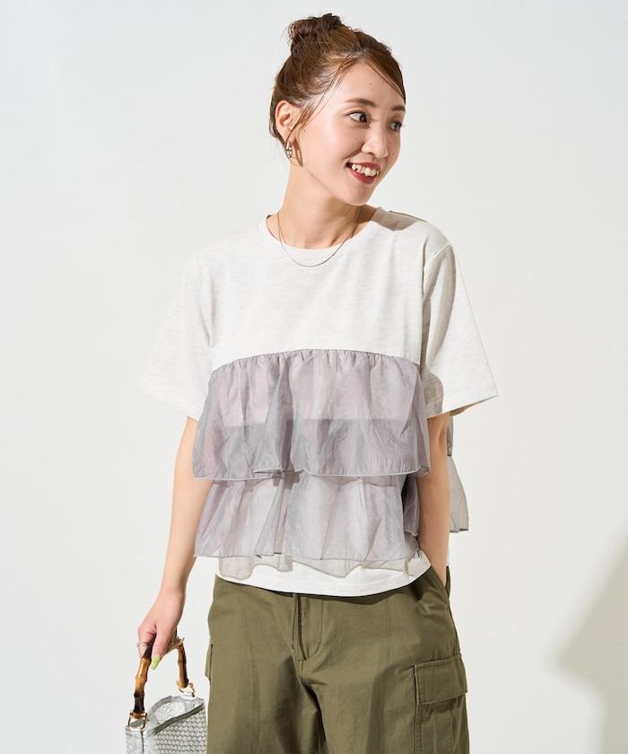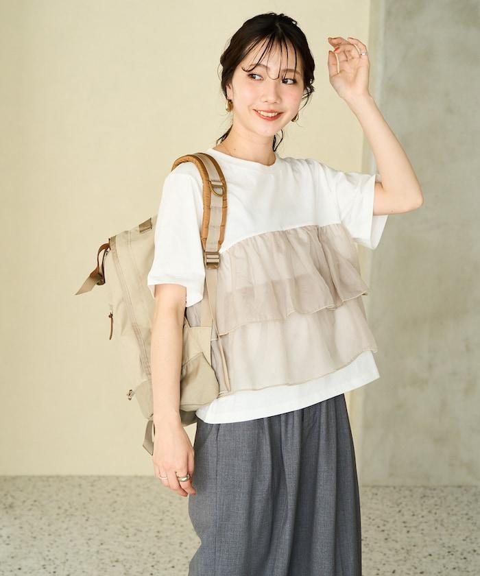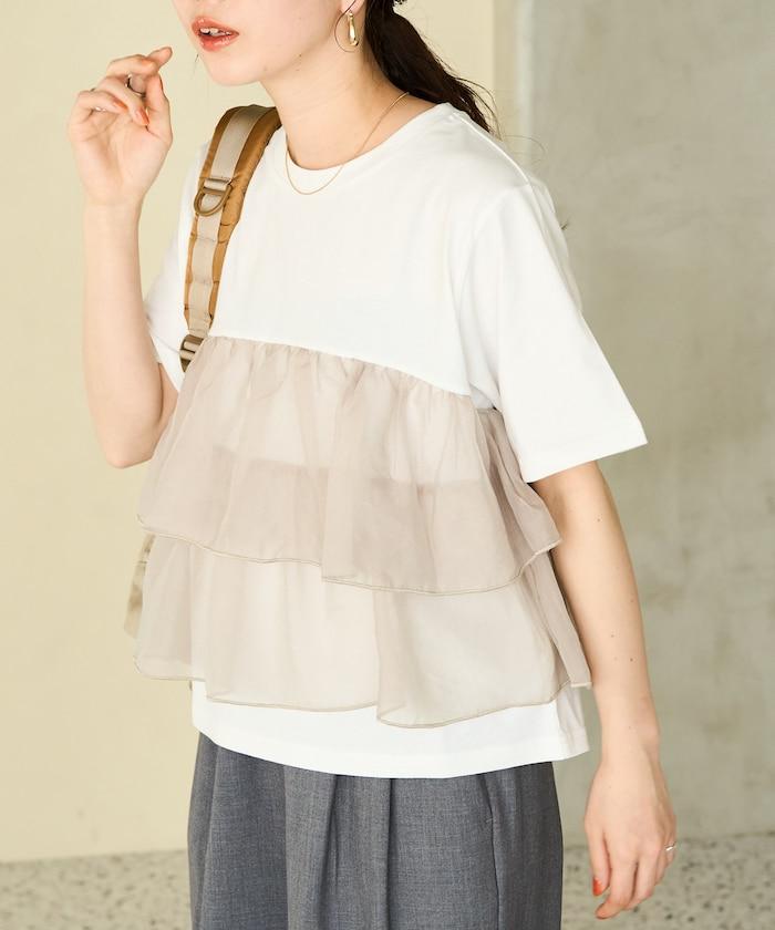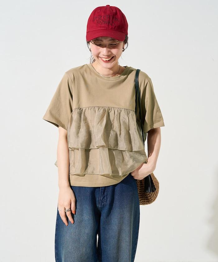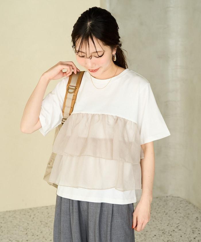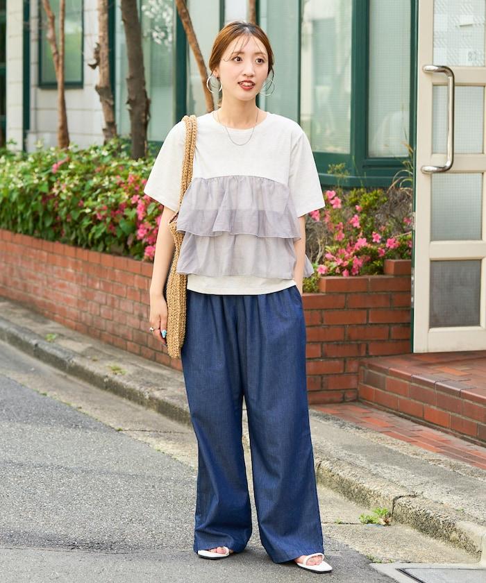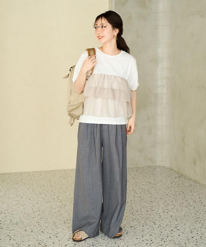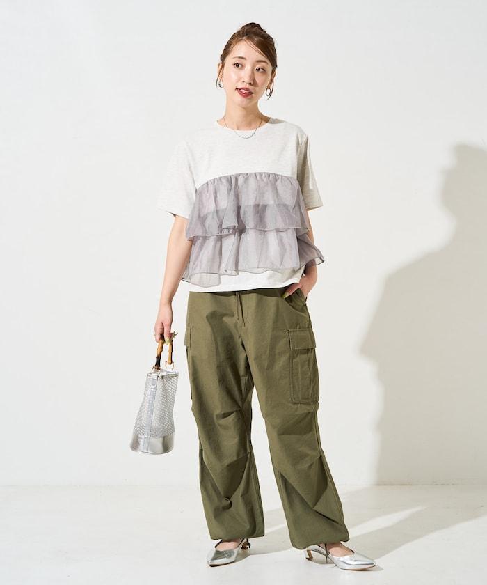搭配緊身短裙等淑女裝打底,與薄紗相得益彰,營造出美麗的休閒印象。
